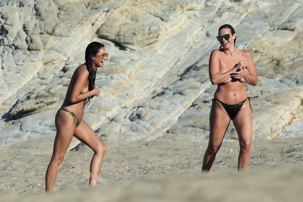 Shay Mitchell a été aperçue seins nus sur la plage à Mykonos, Grèce, le 07/03/2017. Shay Mitchell est une actrice, mannequin canadienne. Âge : 30 ans.