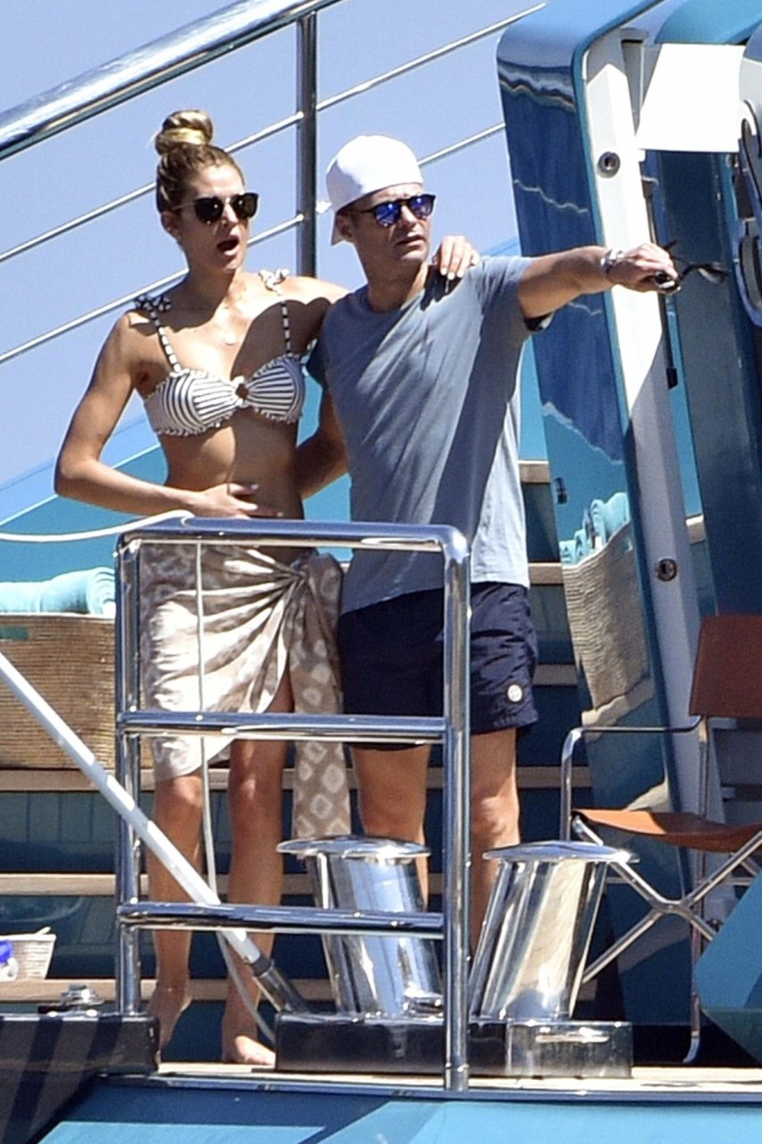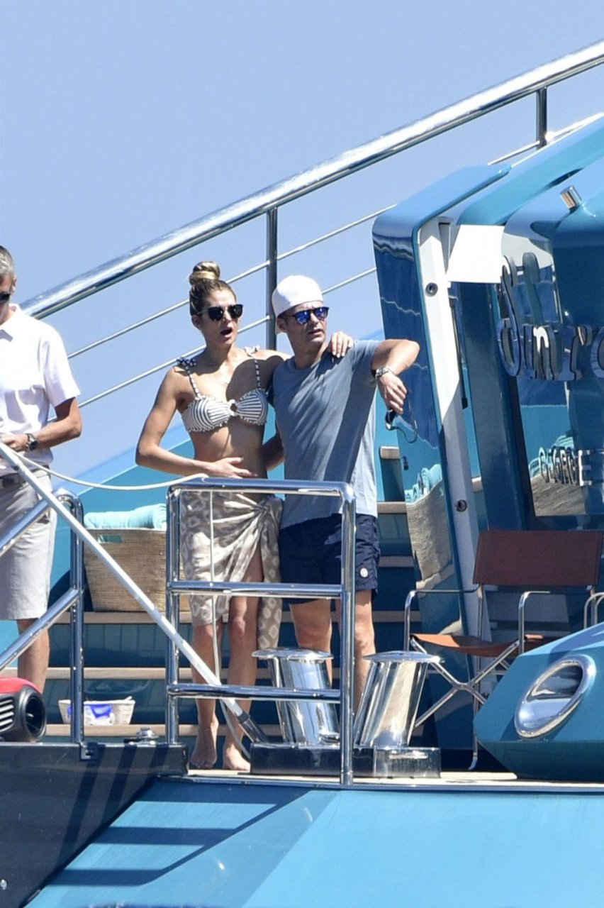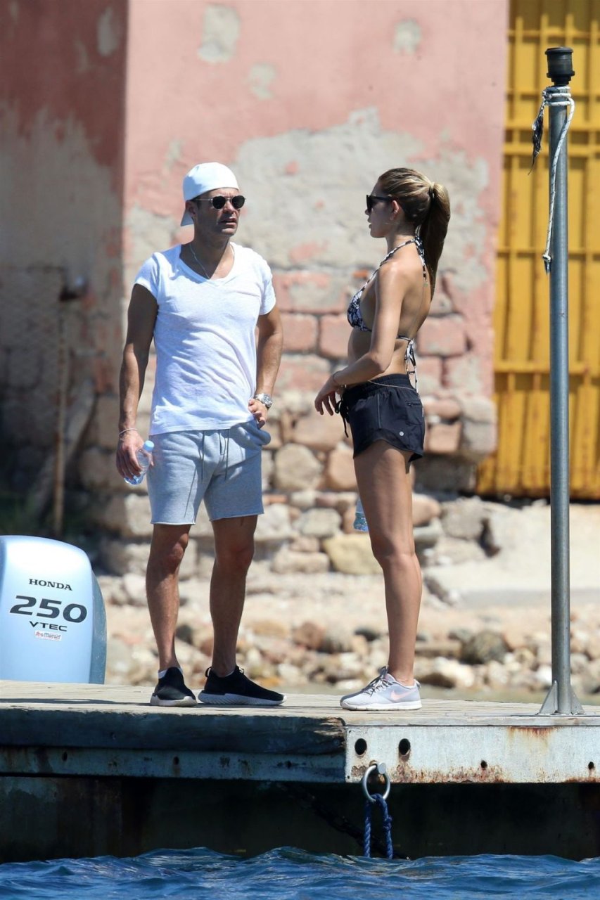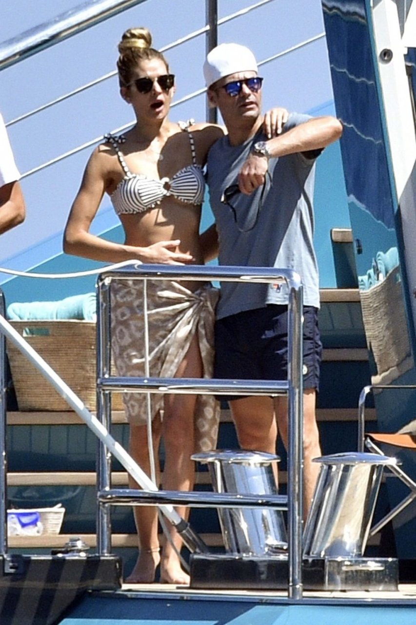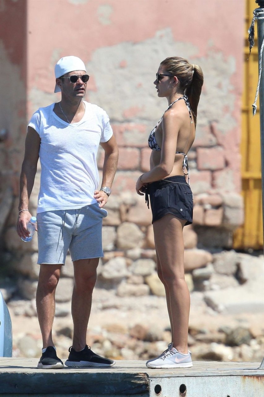 Ryan Seacrest et sa petite amie Shayna Taylor sont photographiés en train de profiter de leurs vacances d’été à Positano, en Italie, avec des amis, le 21/08/2019. Le couple s’est séparé plus tôt cette année après trois ans ensemble et il semble qu’ils aient repris là où ils s’étaient arrêtés.