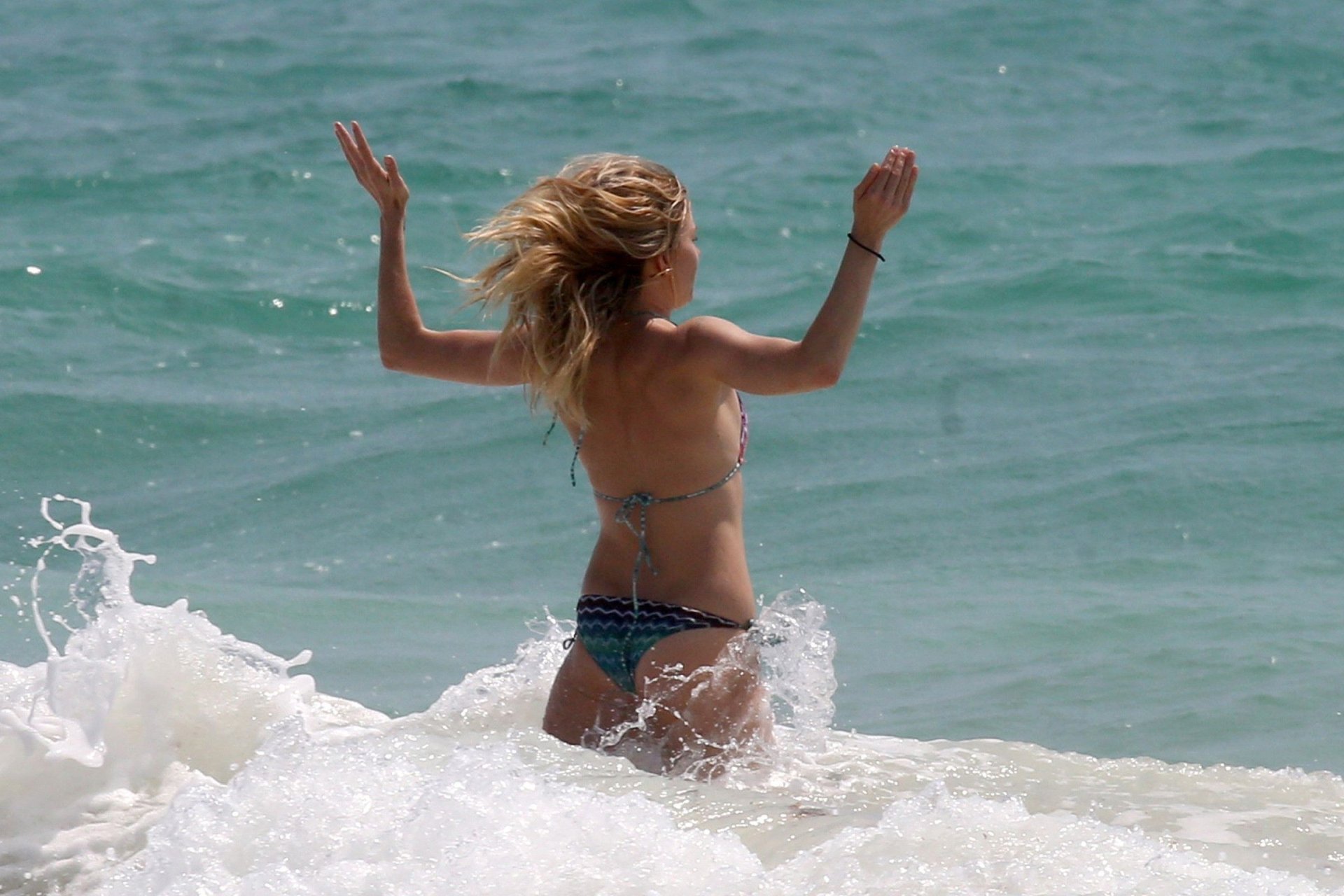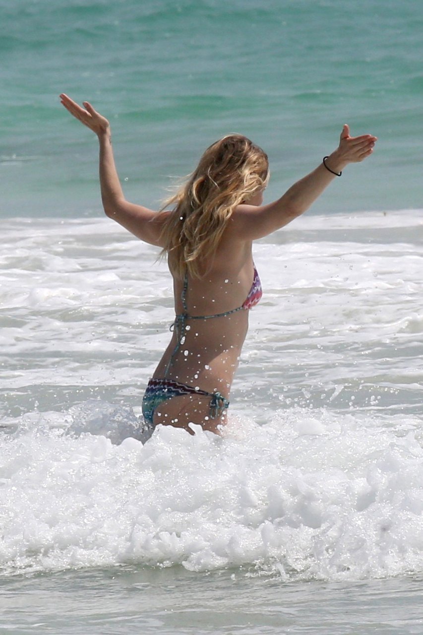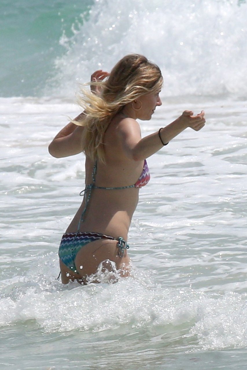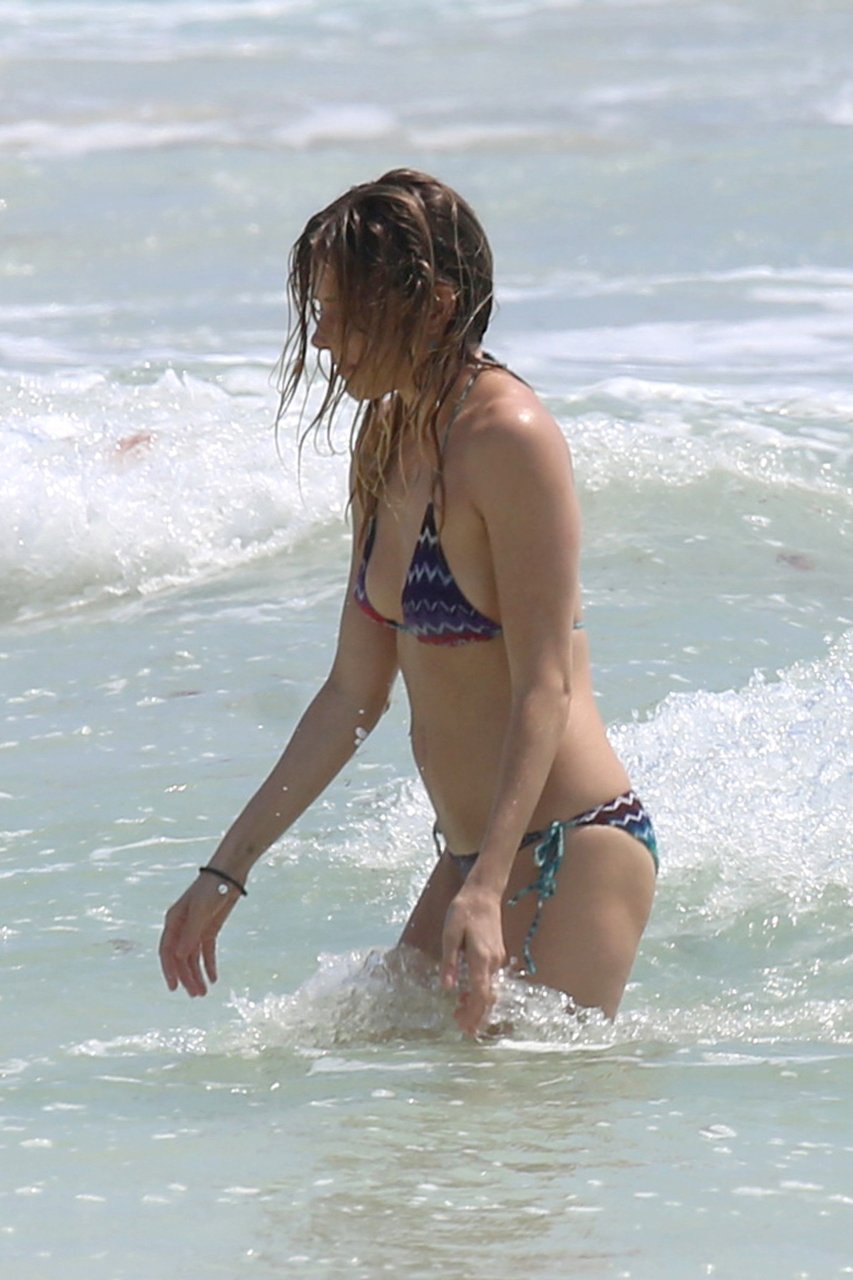 Sienna Miller porte un bikini coloré à la plage de Cancun, 05/04/2017. Sienna Miller est une actrice anglaise (High-Rise (2015)), mannequin et créatrice. Âge : 35 ans (née le 28 décembre 1981).