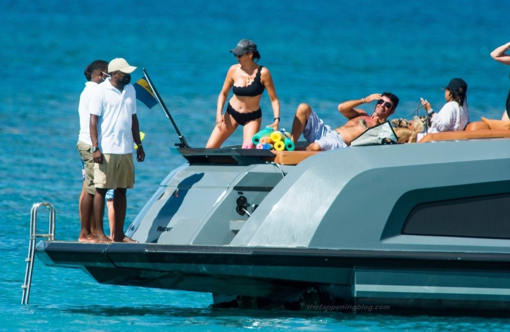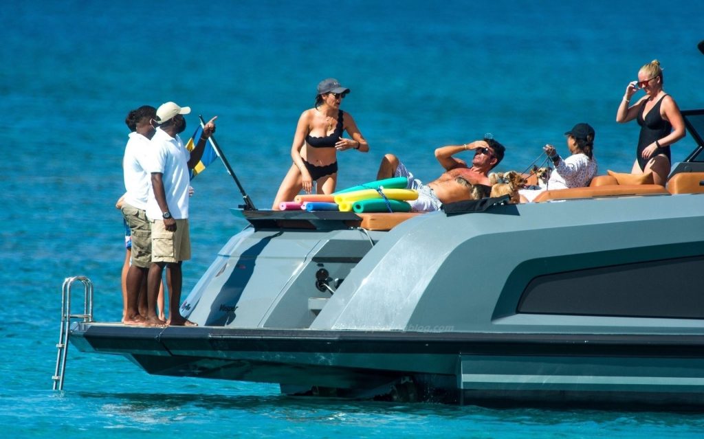 Le magnat de la musique Simon Cowell, qui est en phase de récupération, quatre mois après s’être cassé le dos dans un horrible accident, a été aperçu en train de se détendre avec sa partenaire Lauren Silverman et la famille sur son bateau à la paroisse de St. Lucy à la Barbade, le 20/12/2020.