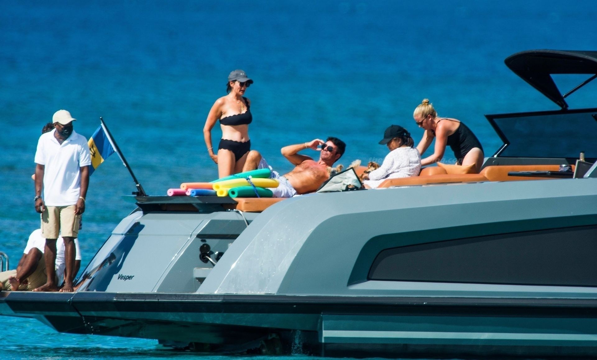 Le magnat de la musique Simon Cowell, qui est en phase de récupération, quatre mois après s’être cassé le dos dans un horrible accident, a été aperçu en train de se détendre avec sa partenaire Lauren Silverman et la famille sur son bateau à la paroisse de St. Lucy à la Barbade, le 20/12/2020.