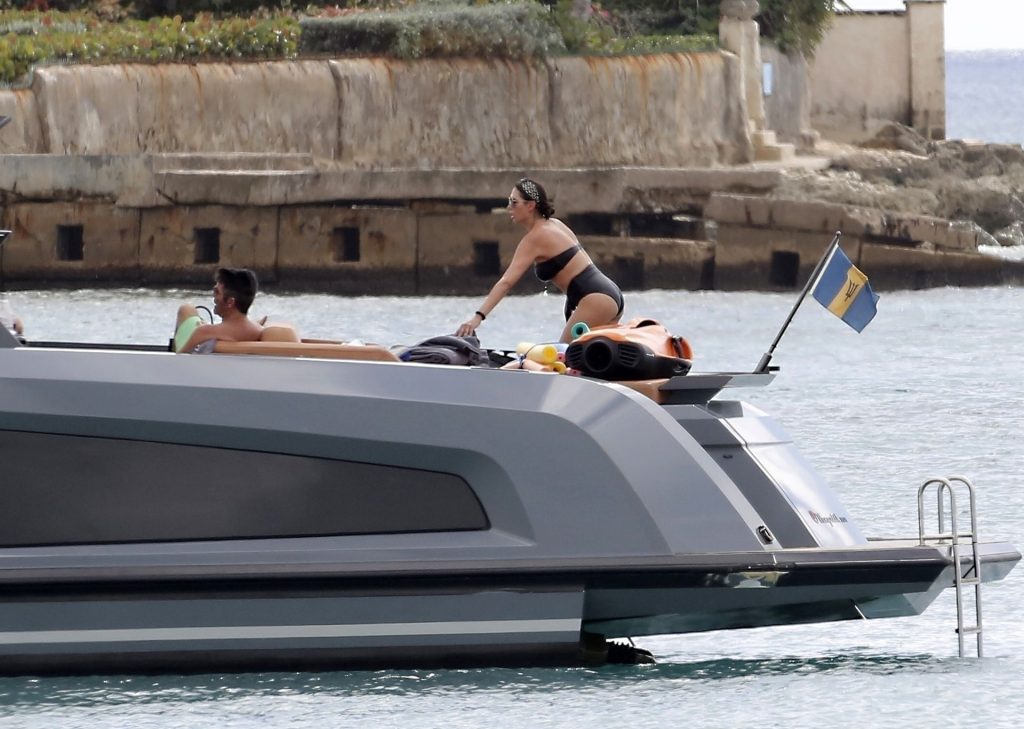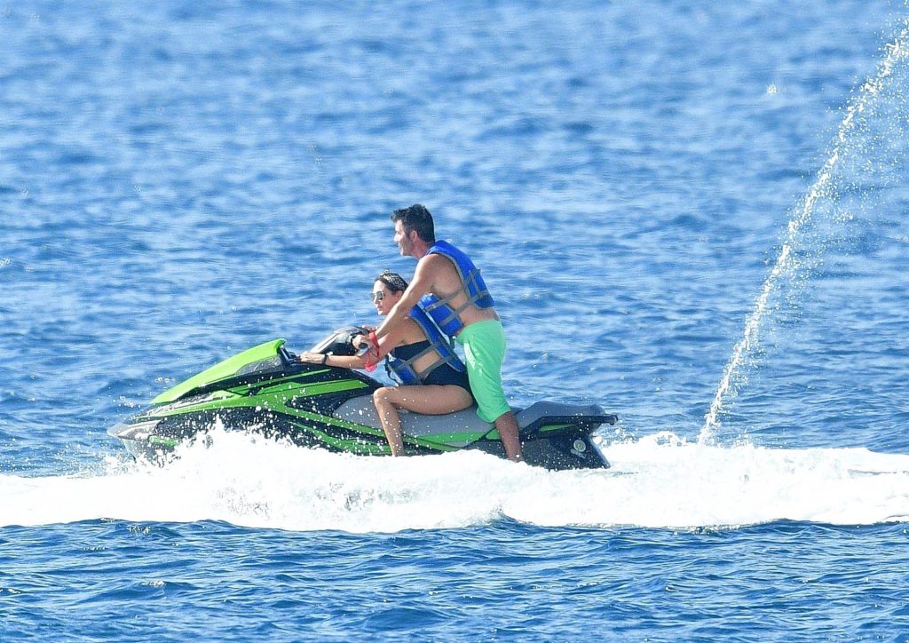 Simon, qui est en phase de récupération, seulement quatre mois après s’être cassé le dos, est torse nu avec son short vert tandis que Lauren porte son bikini noir alors que le couple prend la mer sur leur bateau. Simon a enfilé son masque de plongée et s’est détendu avec Lauren en dégustant quelques boissons et en tirant quelques expressions faciales amusantes pendant le voyage.