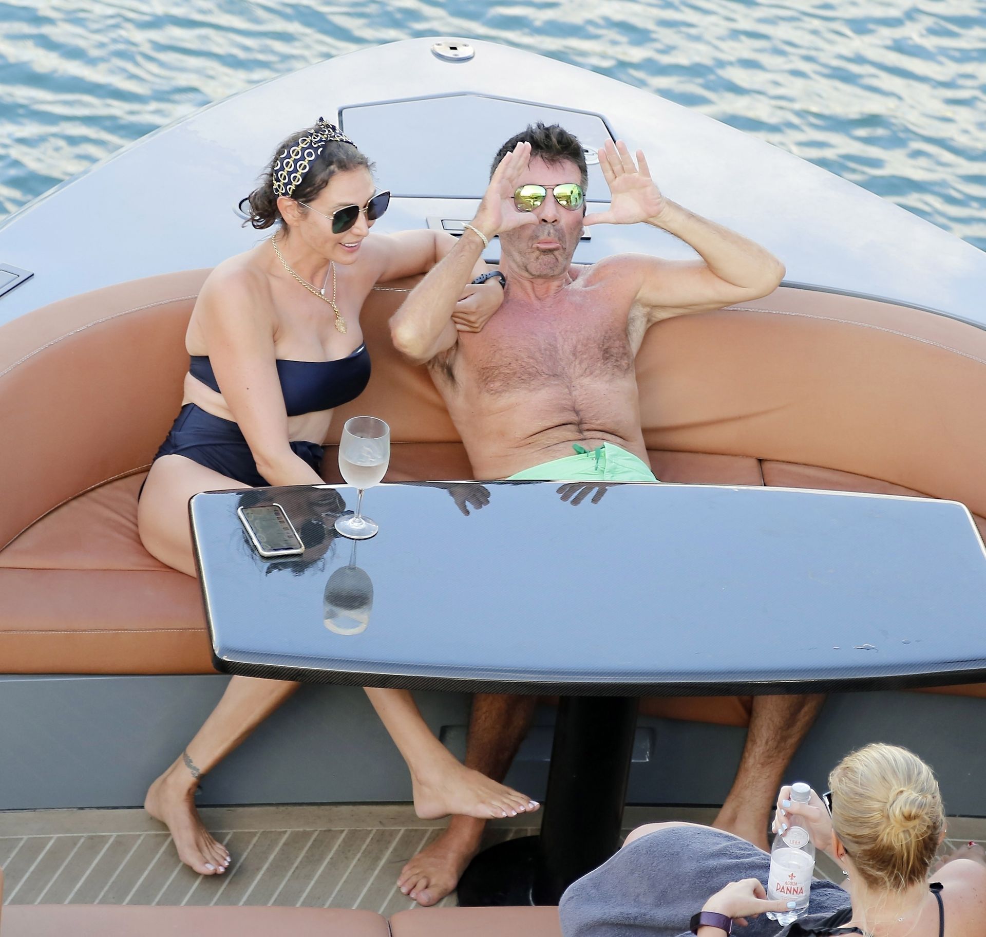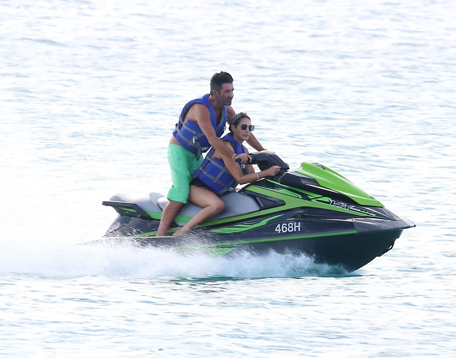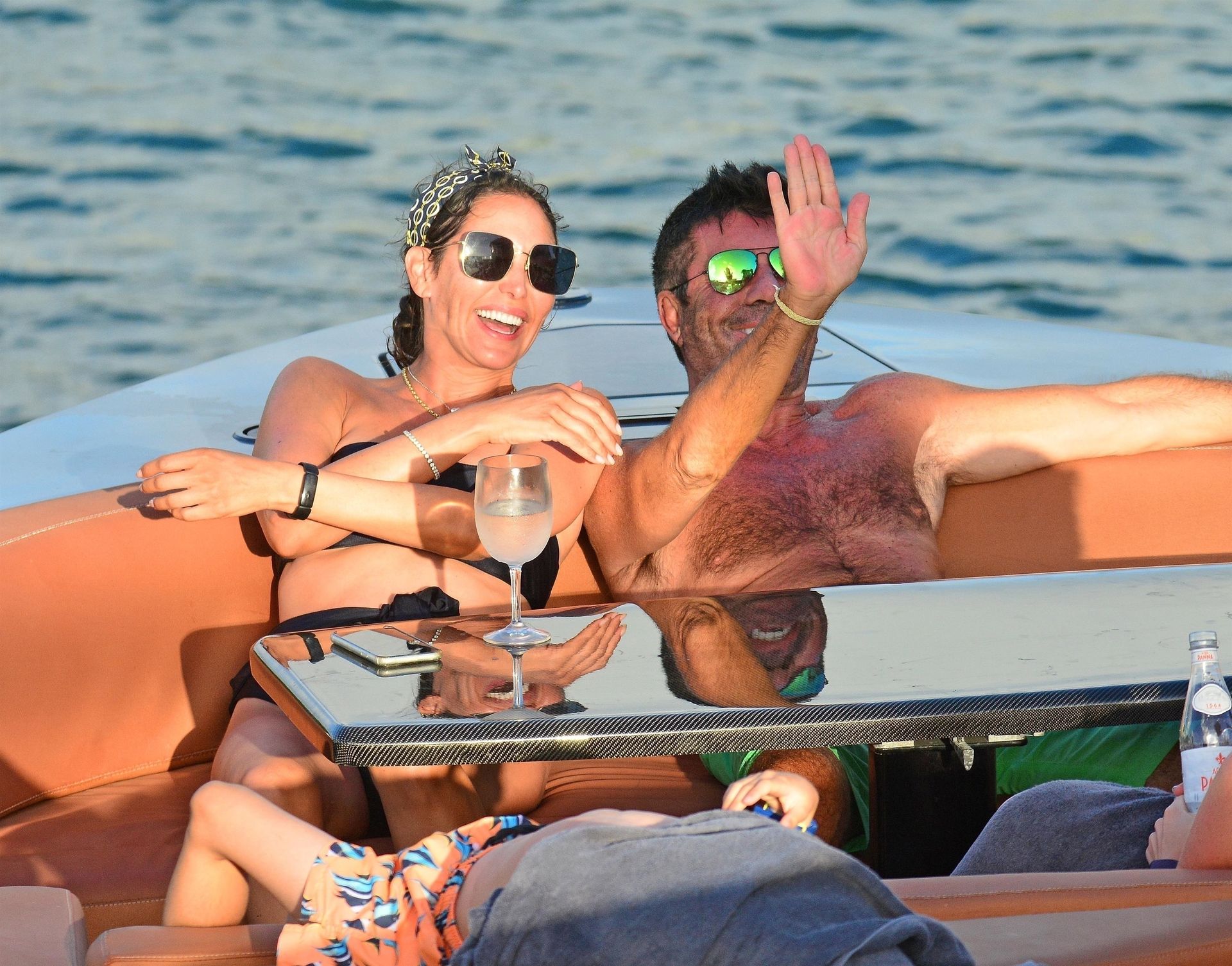 Simon, qui est en phase de récupération, seulement quatre mois après s’être cassé le dos, est torse nu avec son short vert tandis que Lauren porte son bikini noir alors que le couple prend la mer sur leur bateau. Simon a enfilé son masque de plongée et s’est détendu avec Lauren en dégustant quelques boissons et en tirant quelques expressions faciales amusantes pendant le voyage.