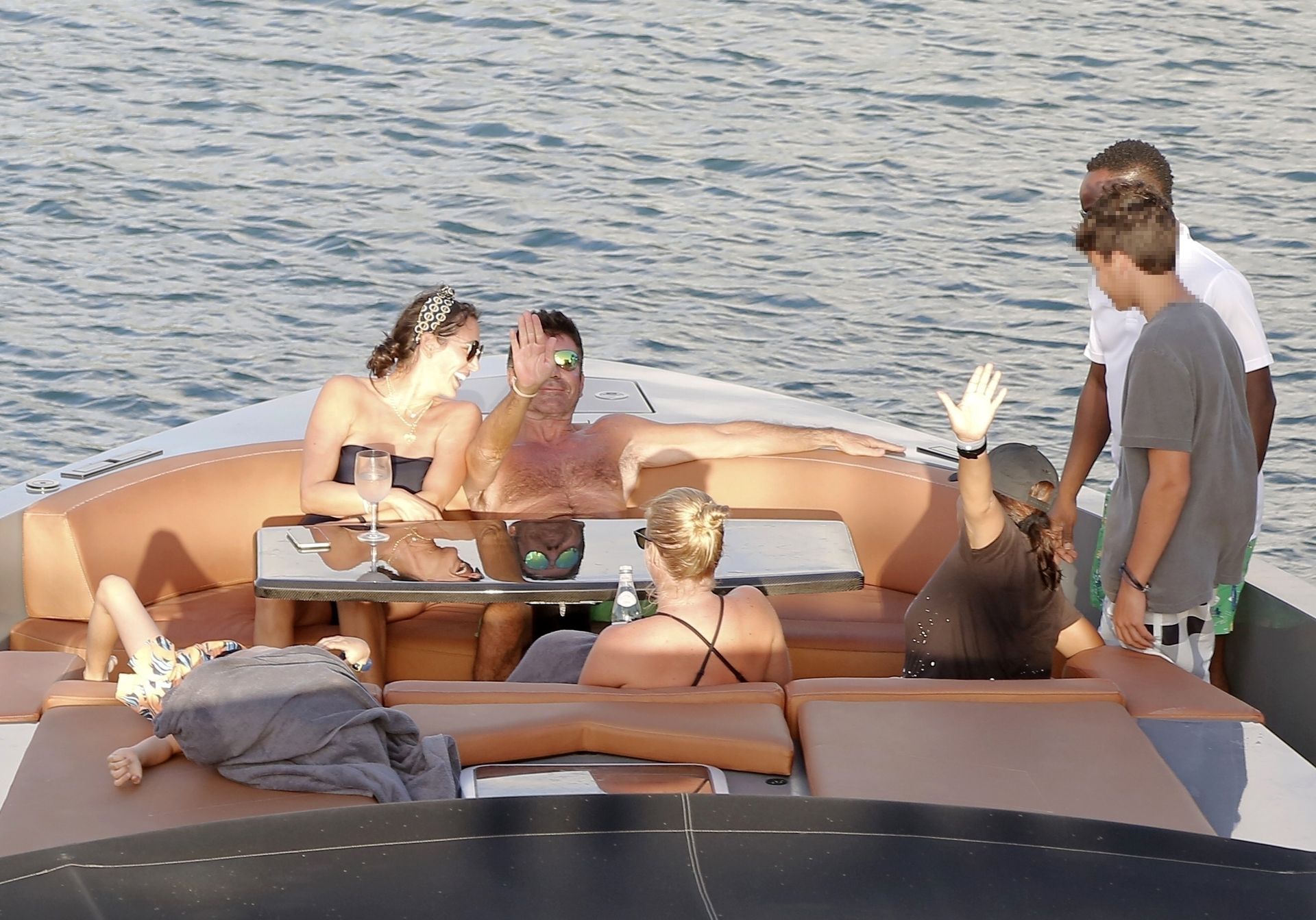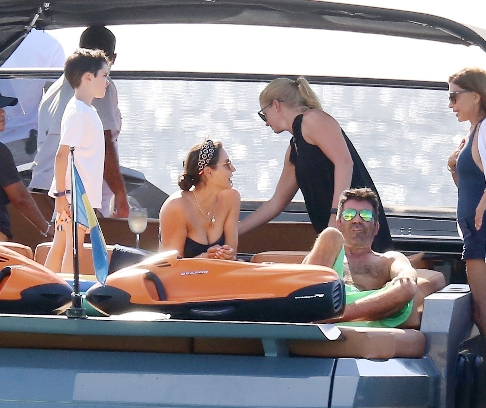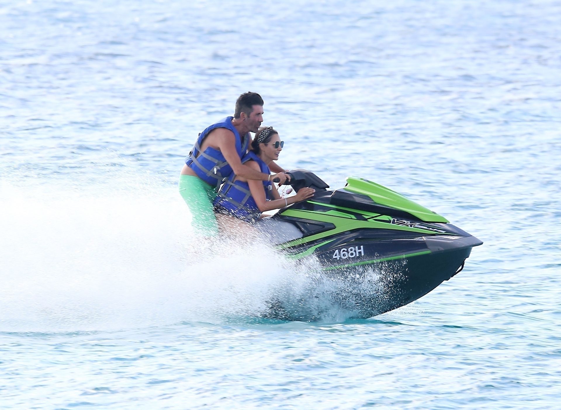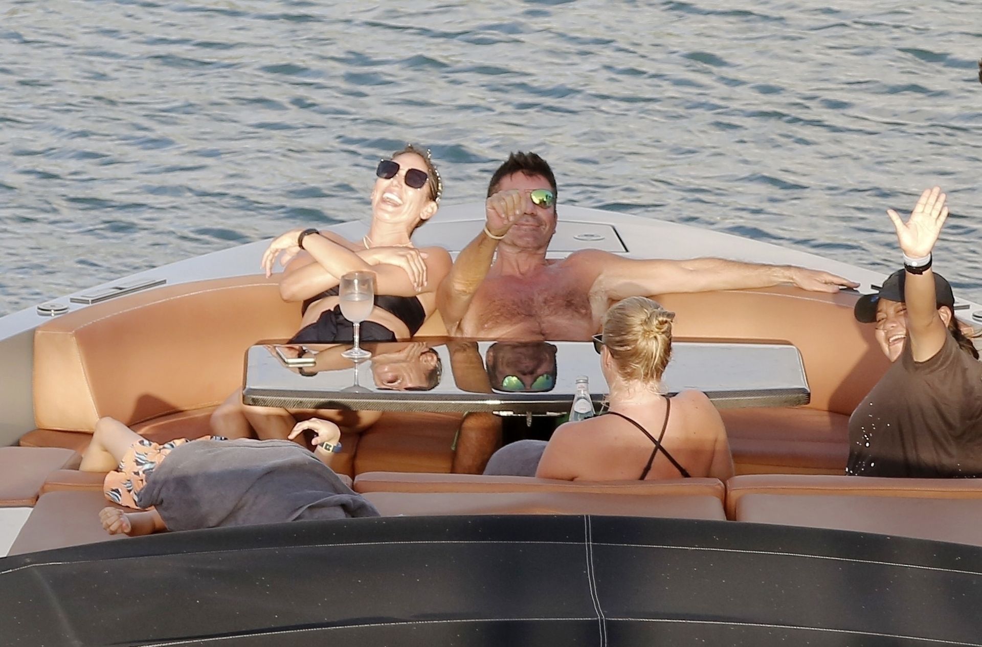 Simon, qui est en phase de récupération, seulement quatre mois après s’être cassé le dos, est torse nu avec son short vert tandis que Lauren porte son bikini noir alors que le couple prend la mer sur leur bateau. Simon a enfilé son masque de plongée et s’est détendu avec Lauren en dégustant quelques boissons et en tirant quelques expressions faciales amusantes pendant le voyage.