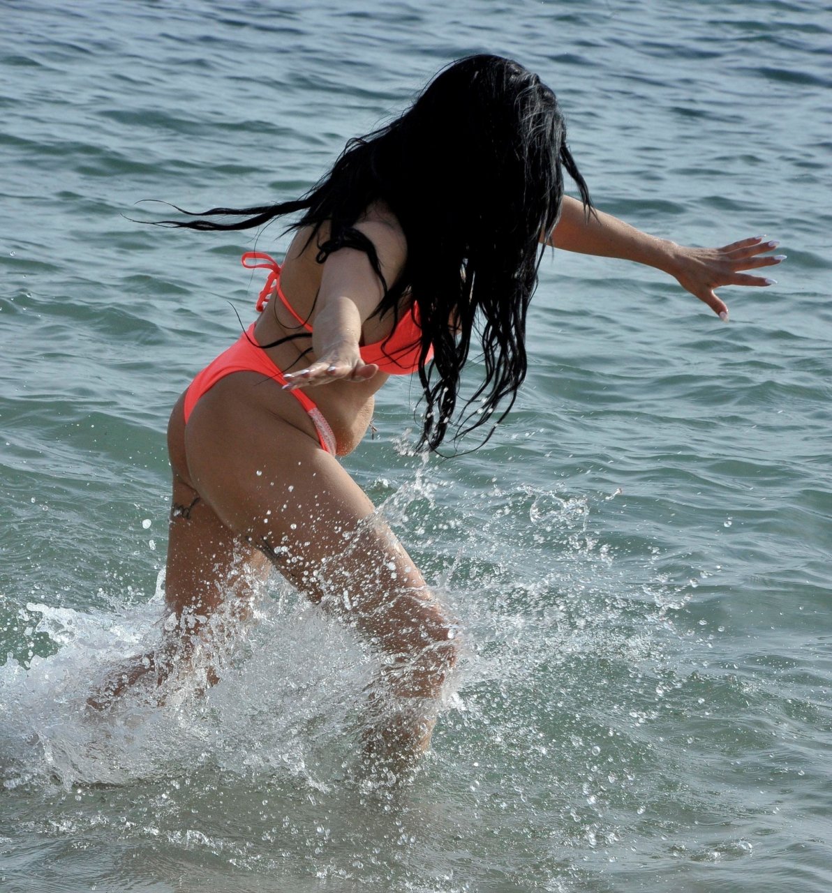 Candidate de Big Brother et chanteuse, Simone Reed photographiée lors d’une escapade en Espagne après avoir subi plus de 30 000 £ de chirurgie esthétique, 15/04/2018. La brune a posé en nouveau bikini pour les paparazzis.