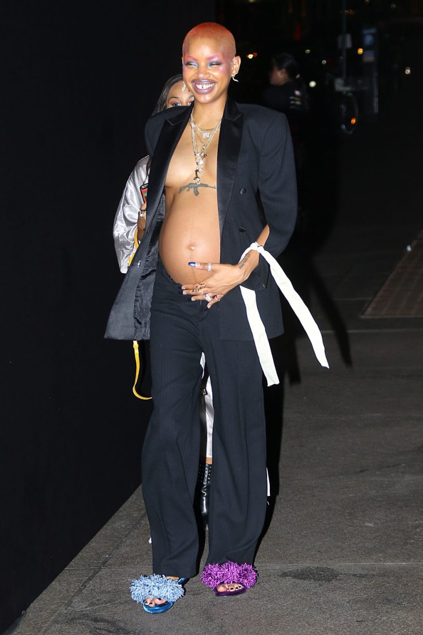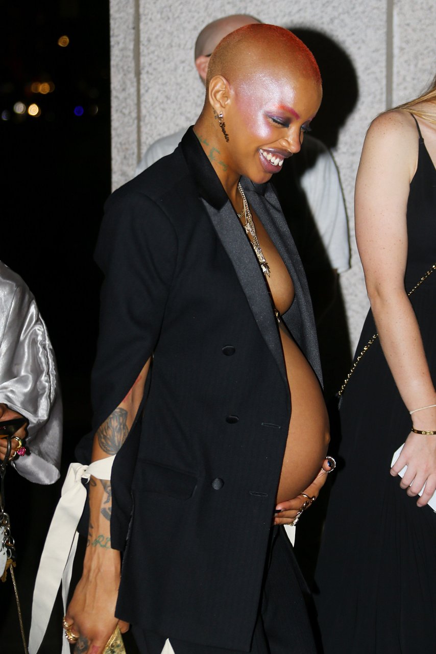 Slick Woods enceinte sans soutien-gorge assiste à la fête de lancement de la NYFW organisée par E! Entertainment, ELLE et IMG, tenue au Seagram Building à New York, le 05/09/2018. Slick Woods (Simone Thompson) est un mannequin américain de 22 ans.