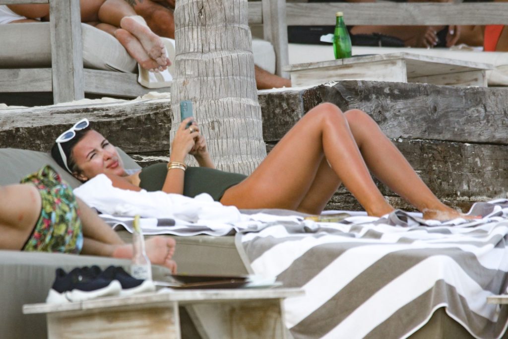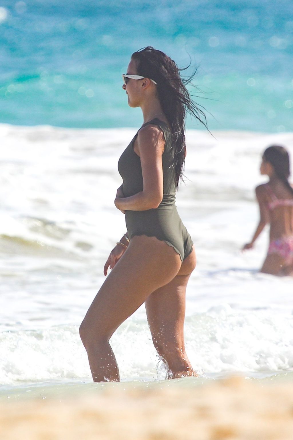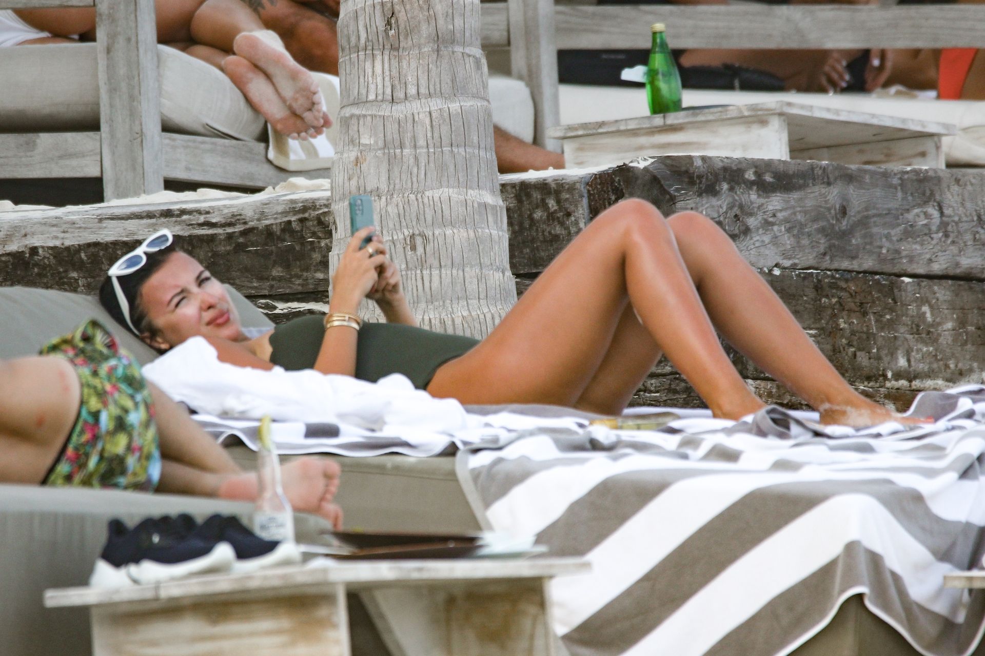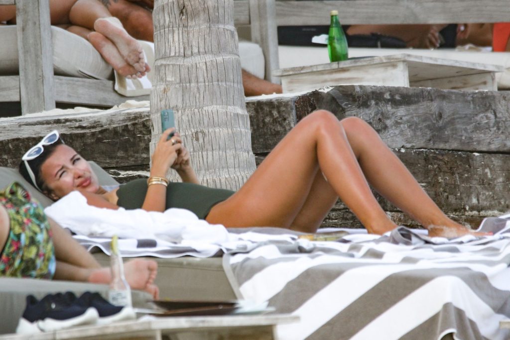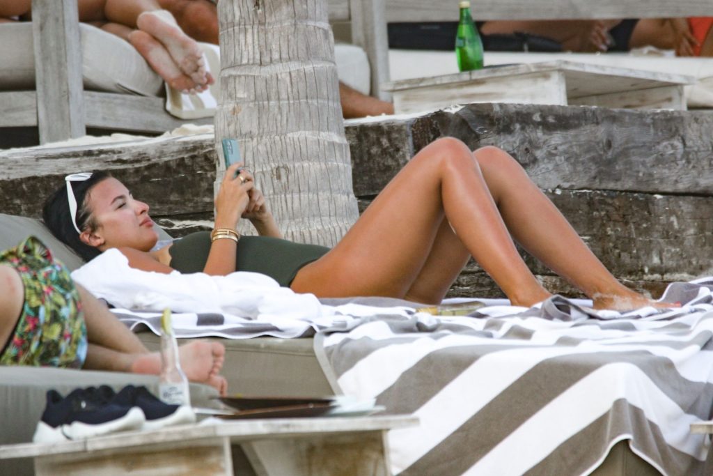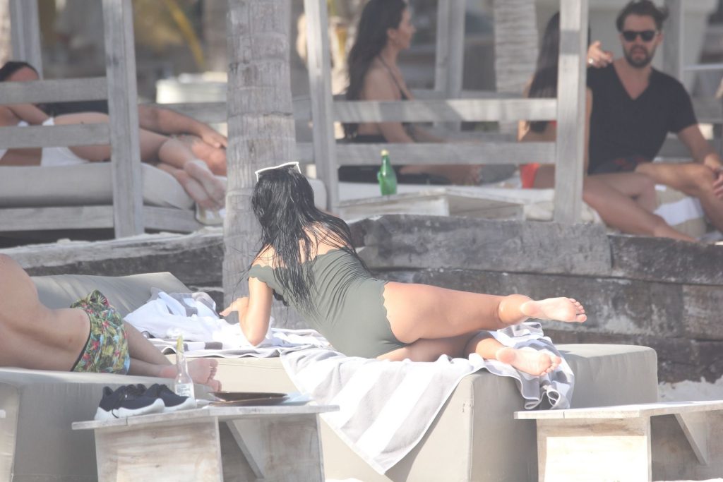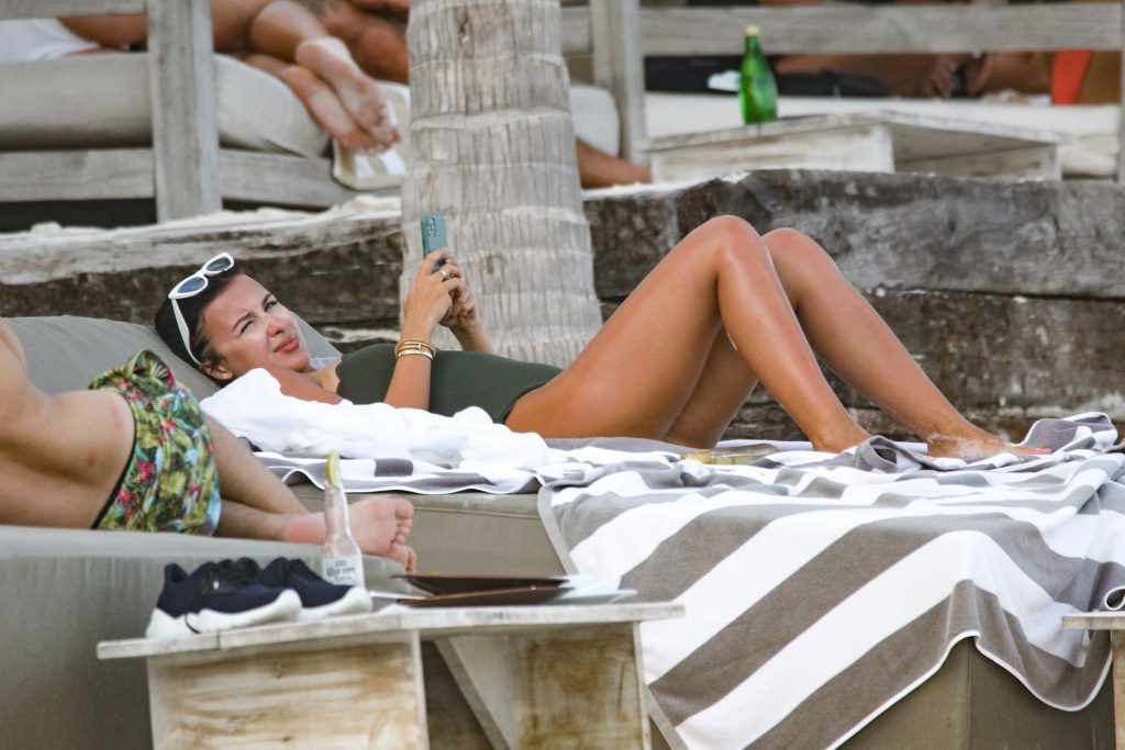 Sexy Miss Russie 2015 Sofia Nikitchuk enfile un bikini sexy pour une journée à la plage à Tulum (2020). Le mannequin entre timidement dans l’eau et laisse les vagues s’écraser sur elle.