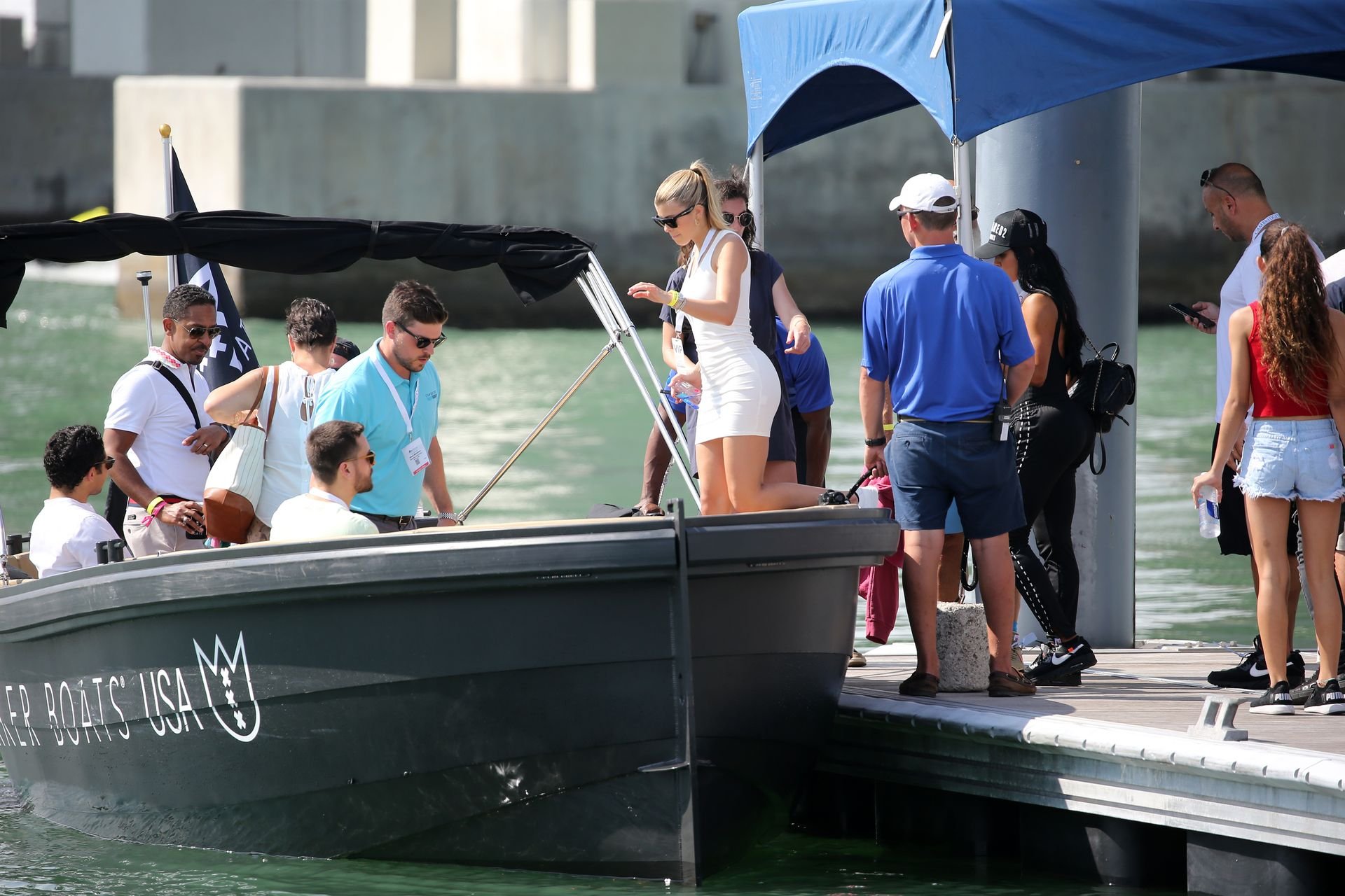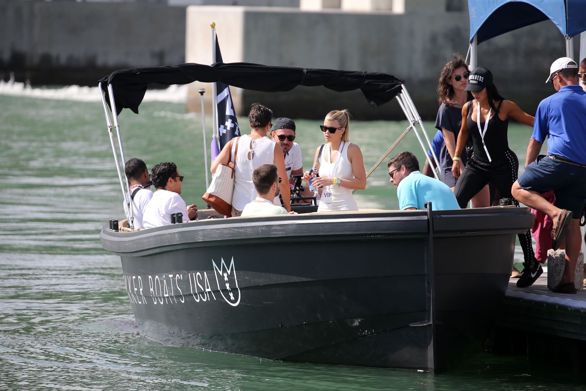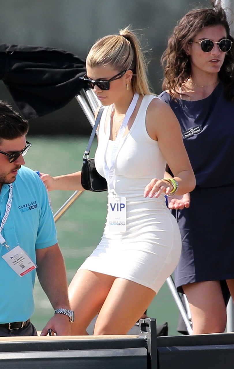 Sofia Richie (20 ans) met en valeur ses courbes dans une minirobe moulante alors qu’elle et son compagnon Scott Disick assistent à un show VIP de super yachts à Miami, le 17/02/2019.