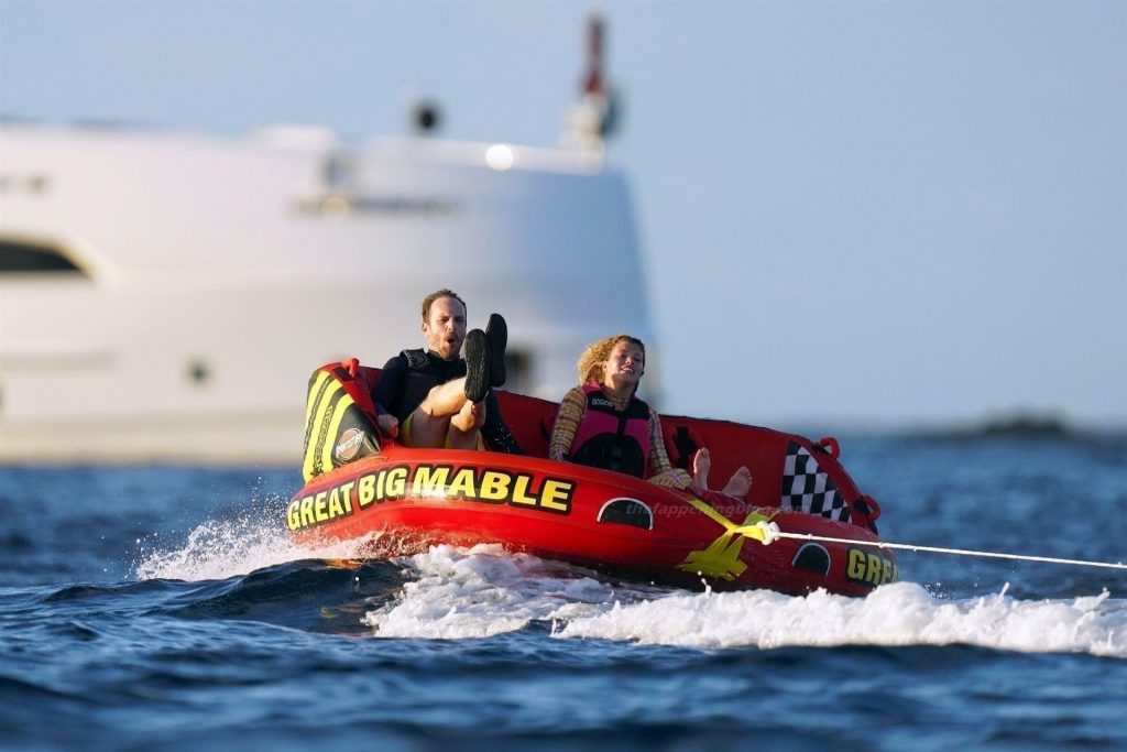 Lors de leur deuxième jour sur cette île idyllique des Caraïbes, le groupe a passé une journée bien remplie avec quelques activités nautiques, dont une balade pleine de sensations fortes sur le grand gonflable Great Big Mable.