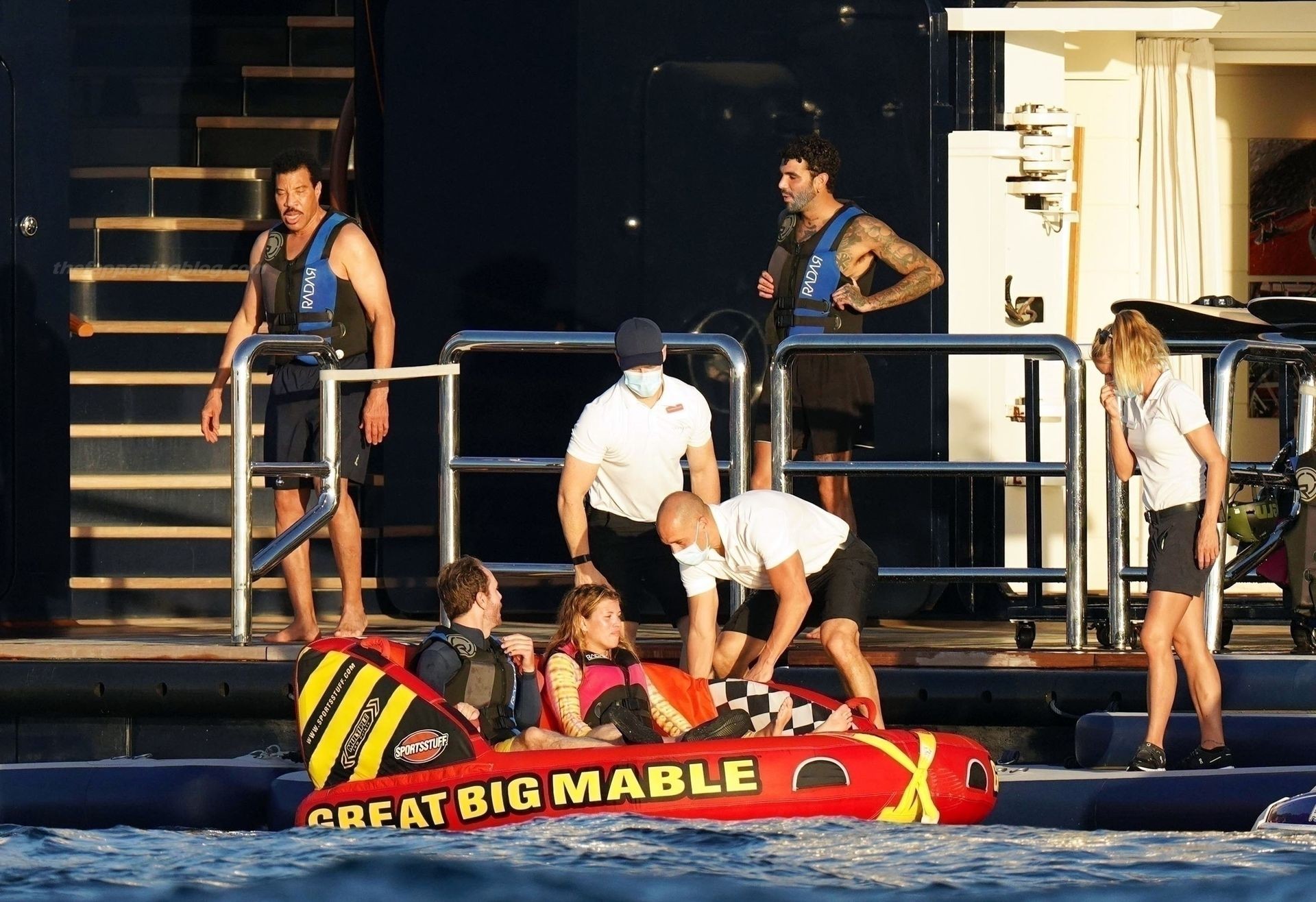 C’est du plaisir au soleil pour le duo père et fille Sofia Richie et Lionel Richie lors de leurs vacances bien remplies sous le soleil de St Barts avec Lily Collins et son fiancé, 21/12/2020.