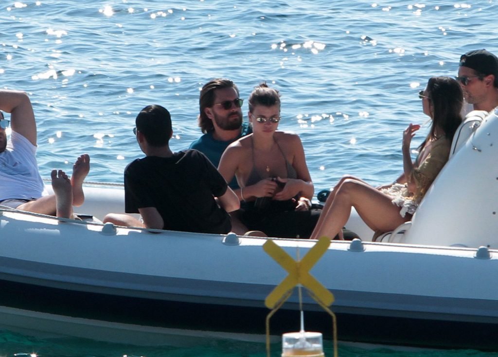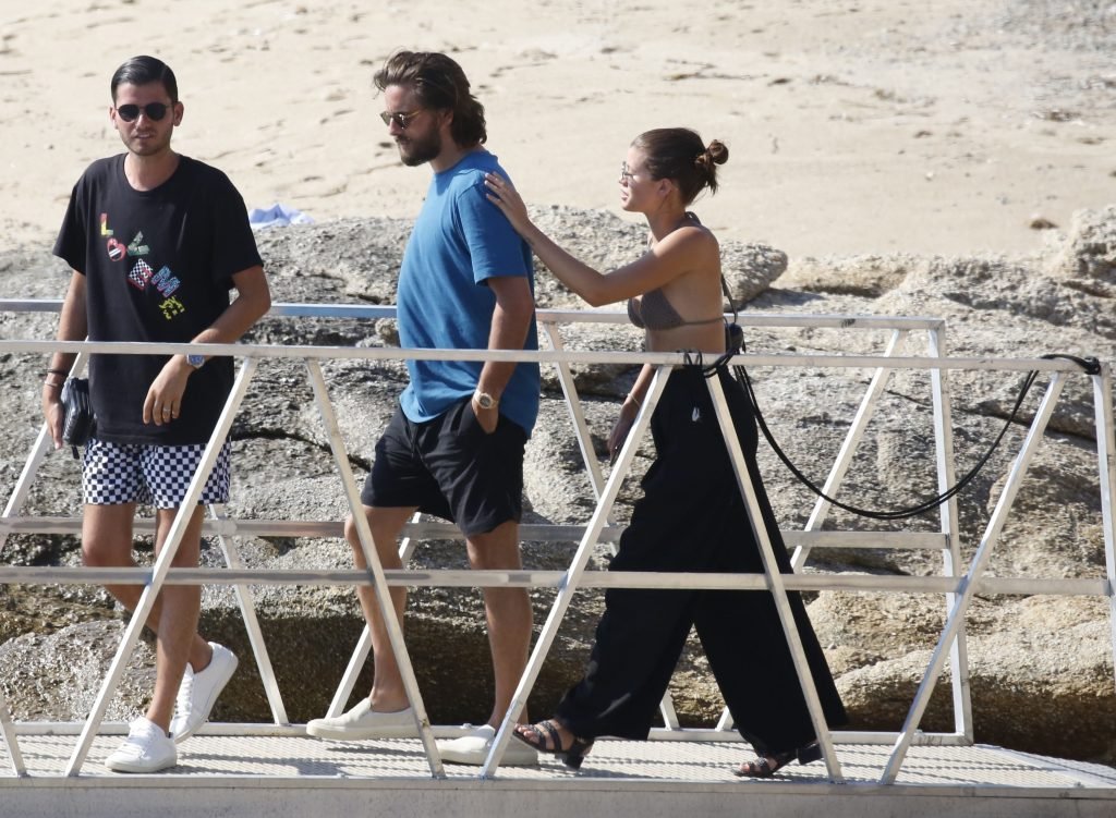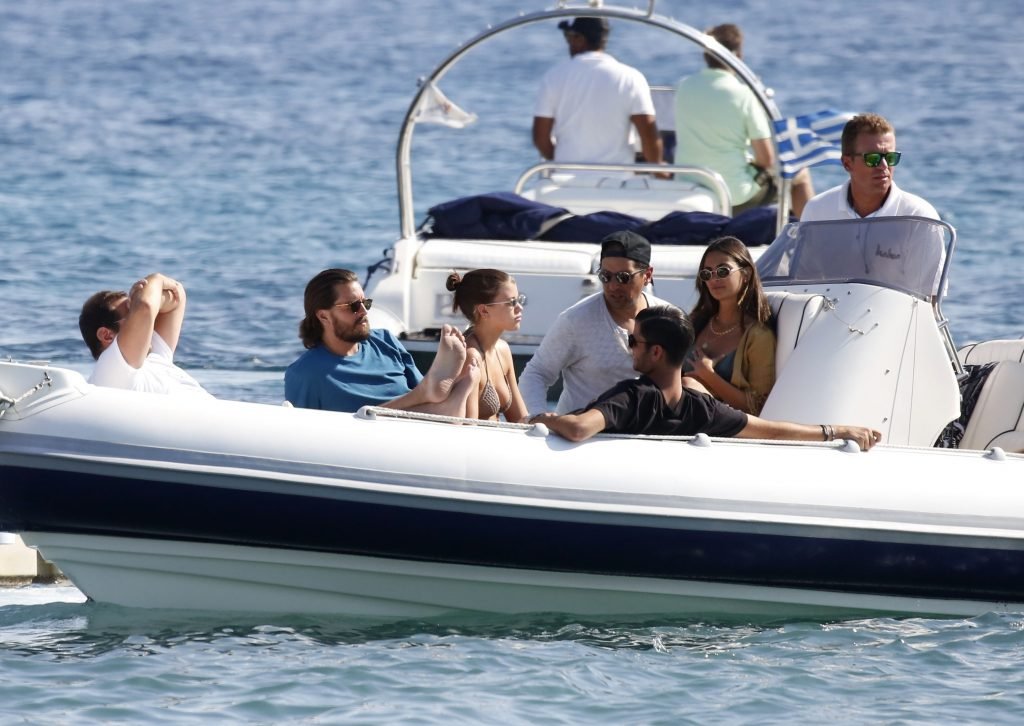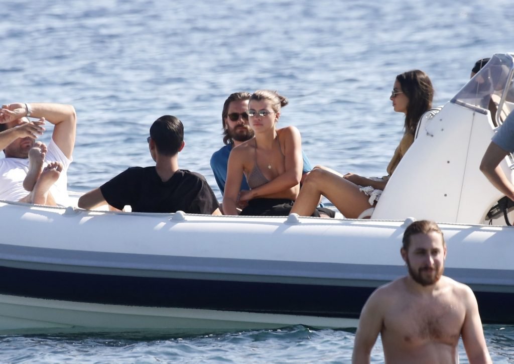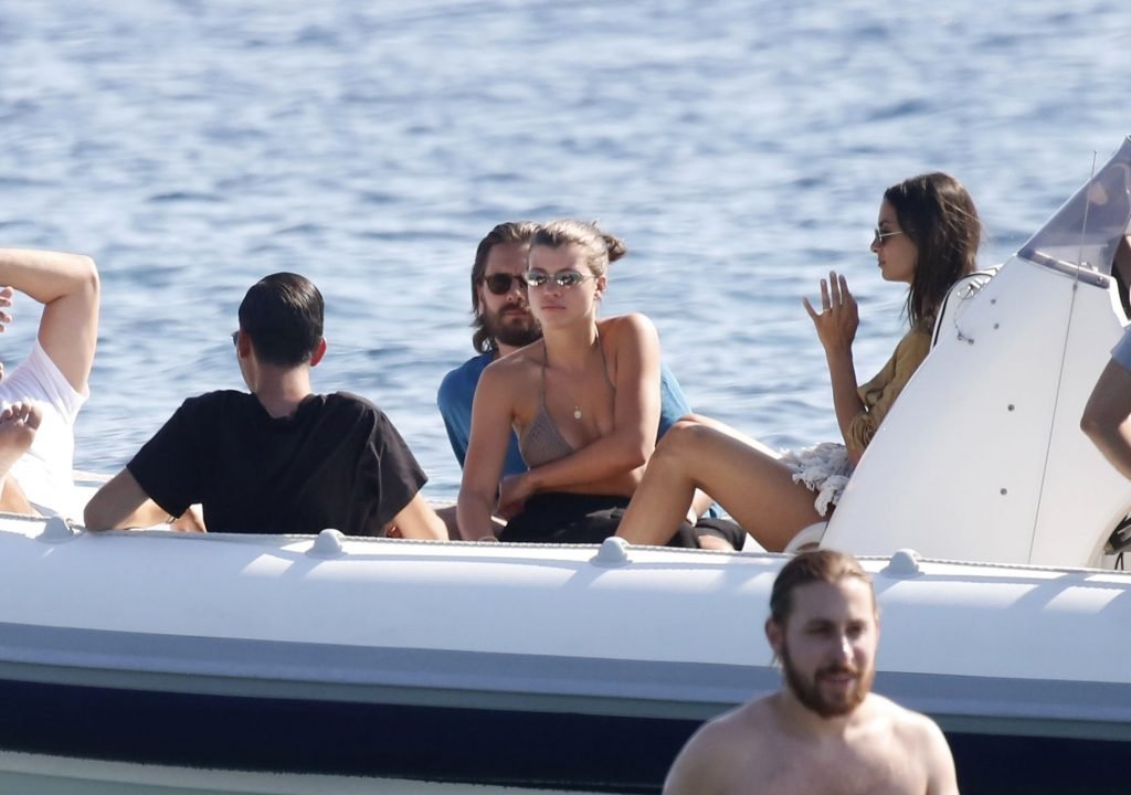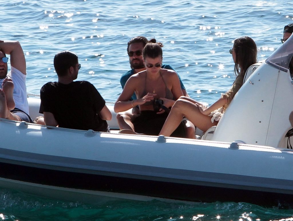 Sofia Richie, Scott Disick et leurs amis ont été aperçus sur un bateau rapide à l’île de Mykonos, Grèce, le 07/09/2018. Le mannequin de 19 ans portait un haut de bikini marron.