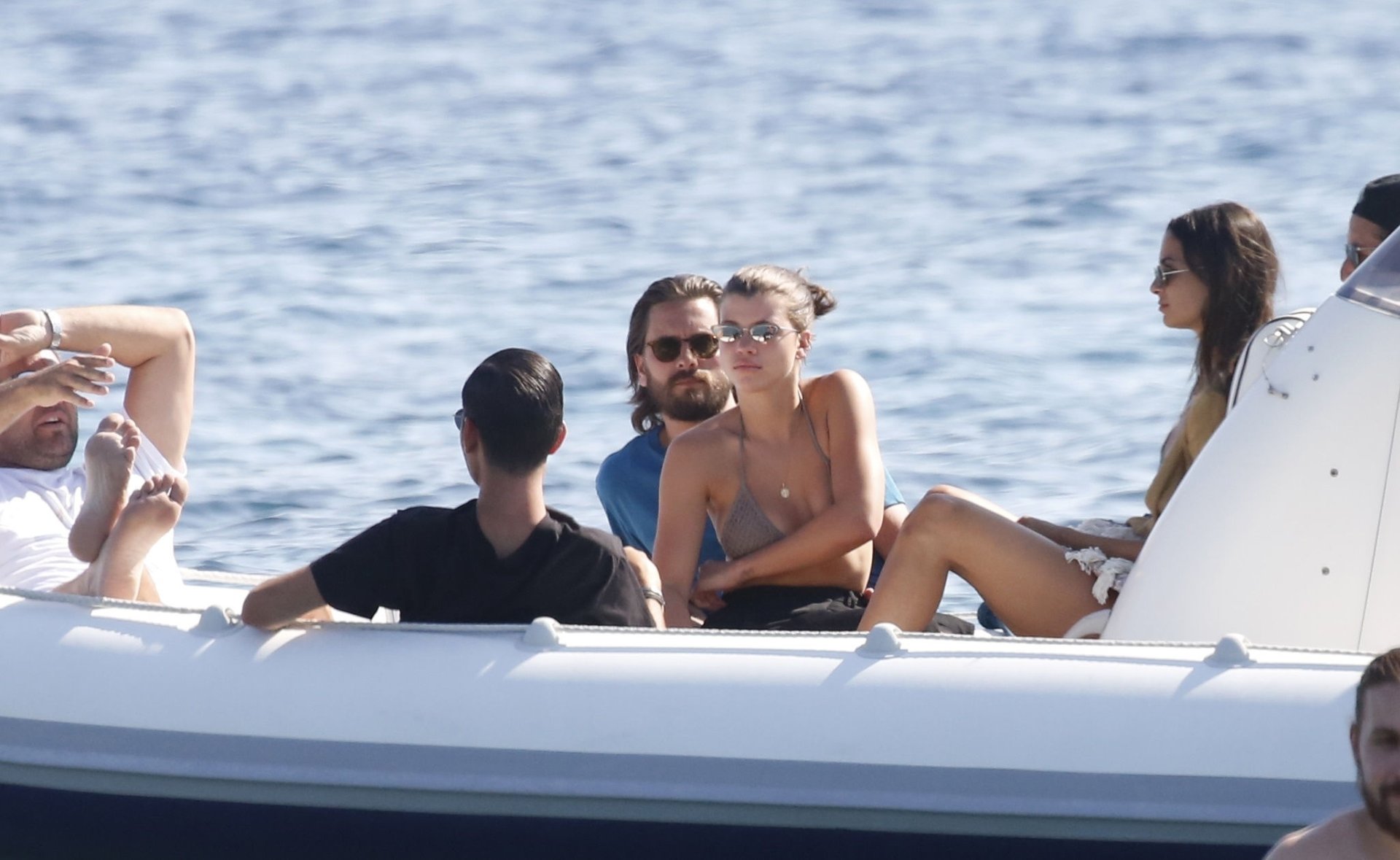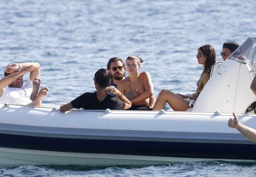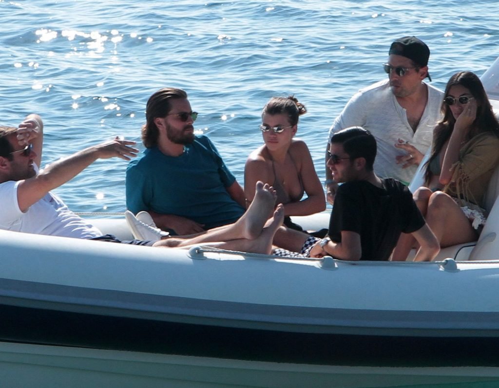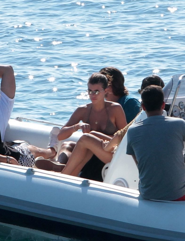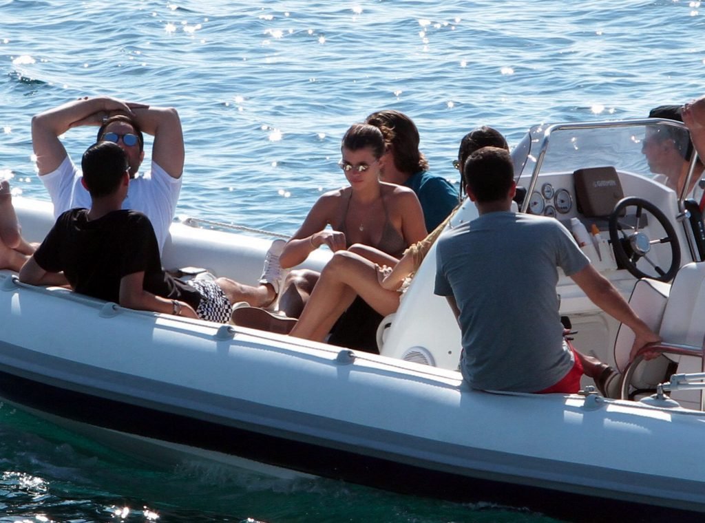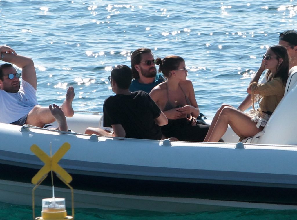 Sofia Richie, Scott Disick et leurs amis ont été aperçus sur un bateau rapide à l’île de Mykonos, Grèce, le 07/09/2018. Le mannequin de 19 ans portait un haut de bikini marron.