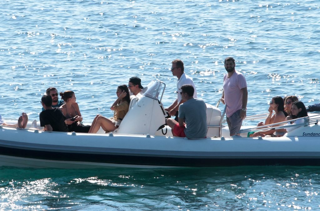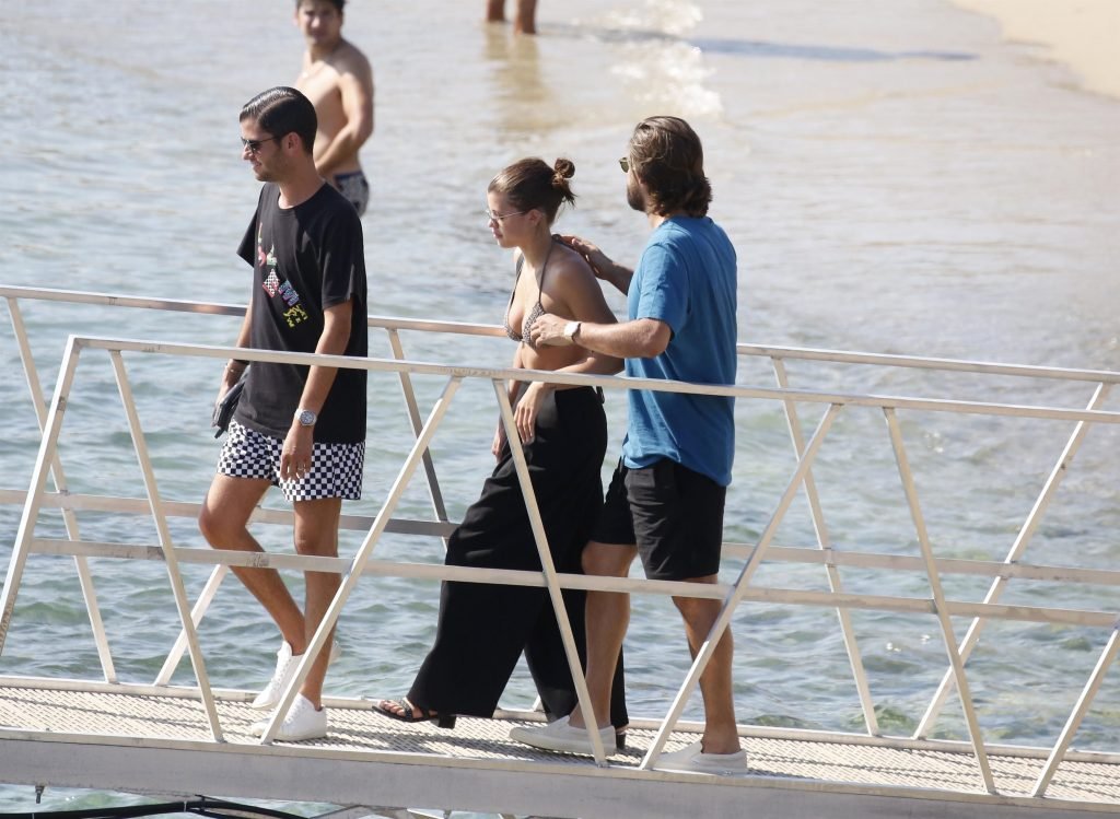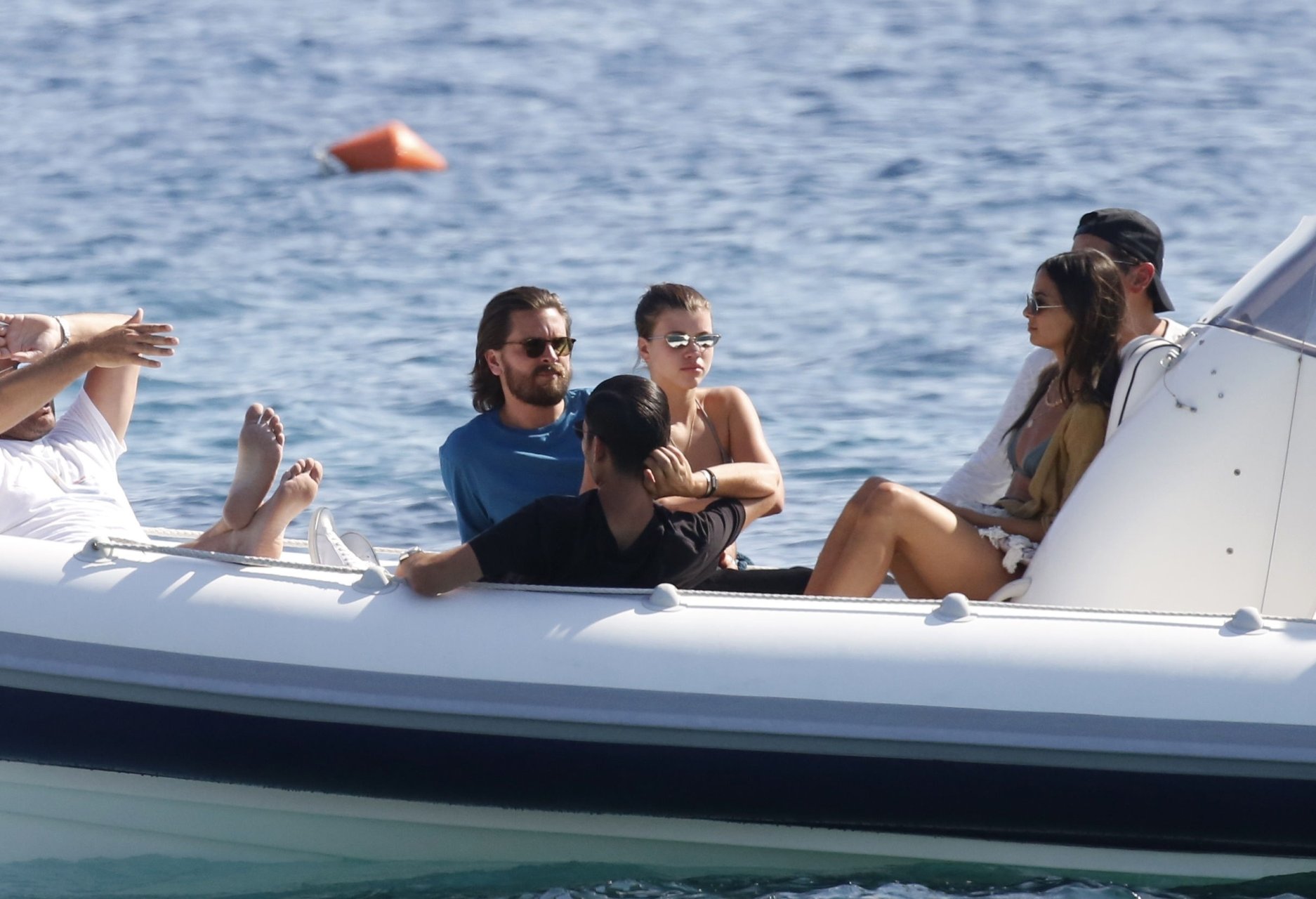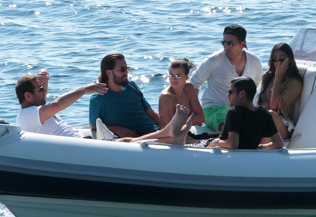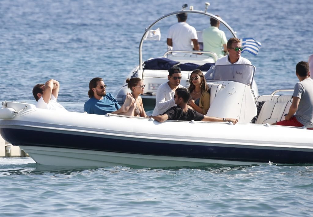 Sofia Richie, Scott Disick et leurs amis ont été aperçus sur un bateau rapide à l’île de Mykonos, Grèce, le 07/09/2018. Le mannequin de 19 ans portait un haut de bikini marron.