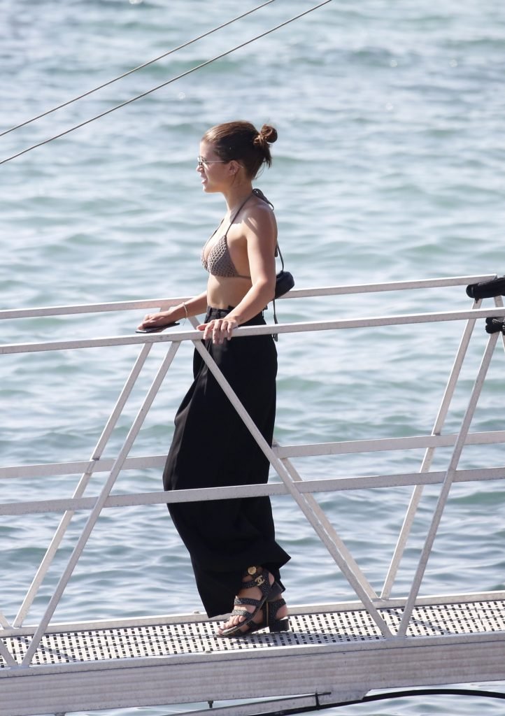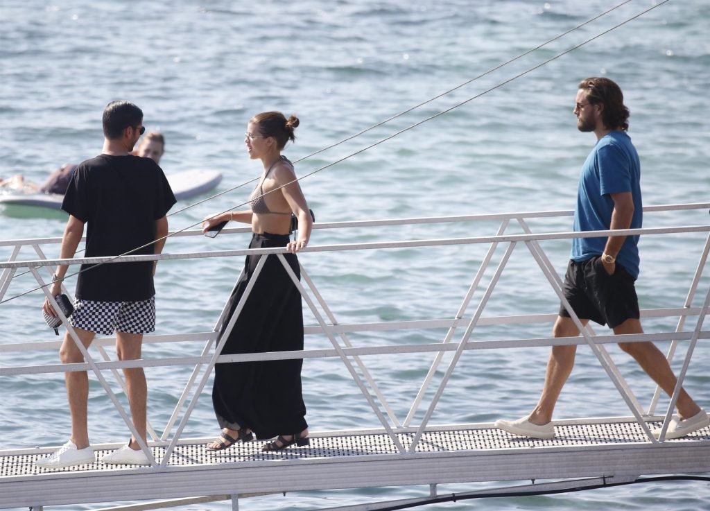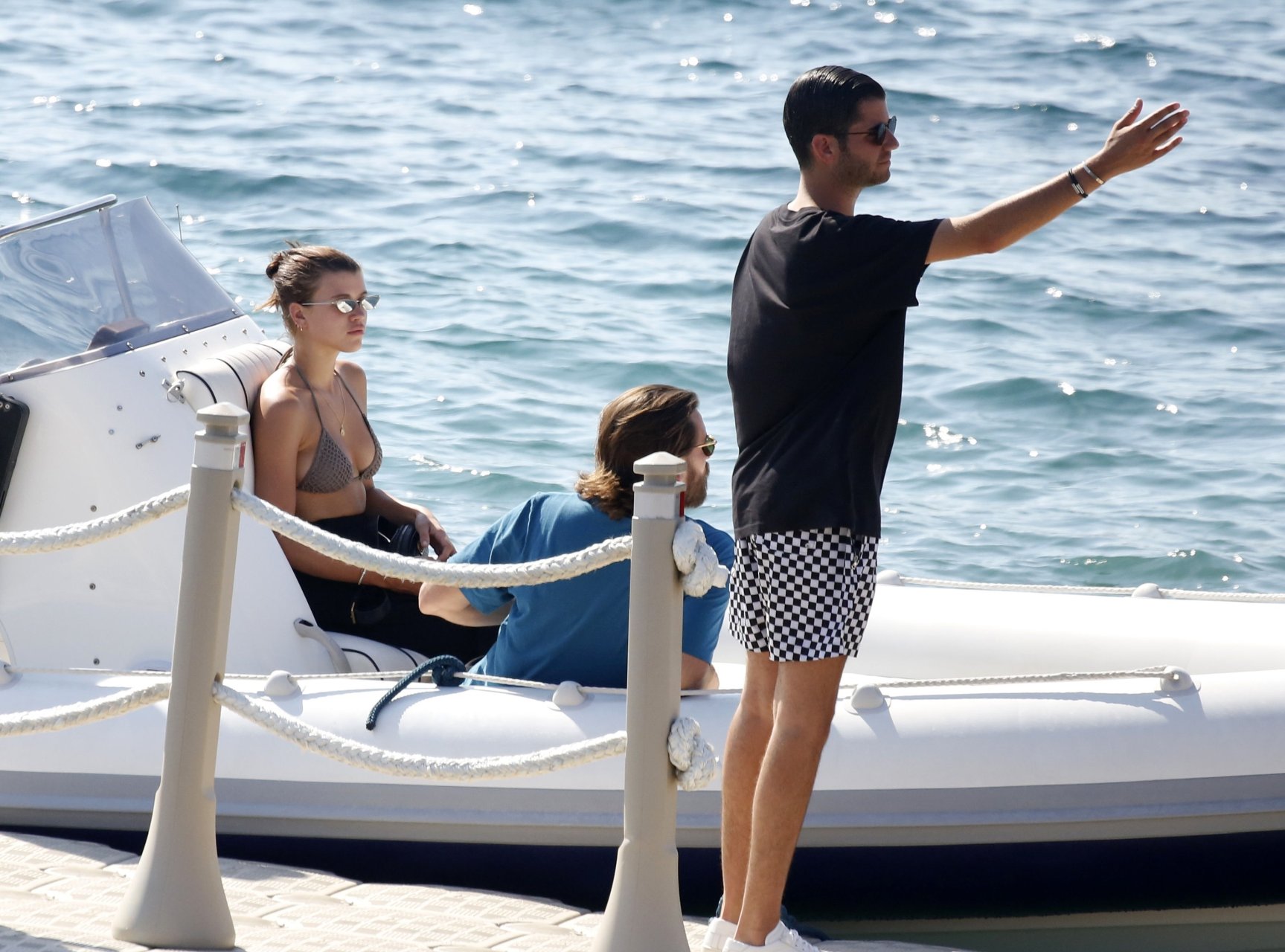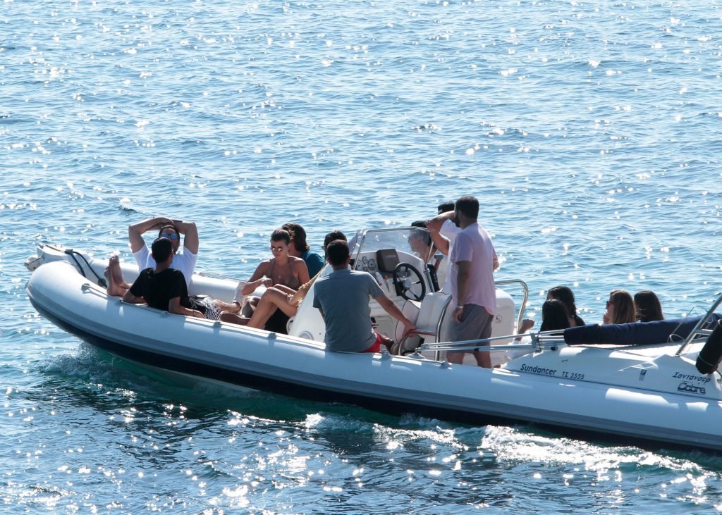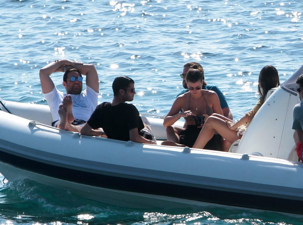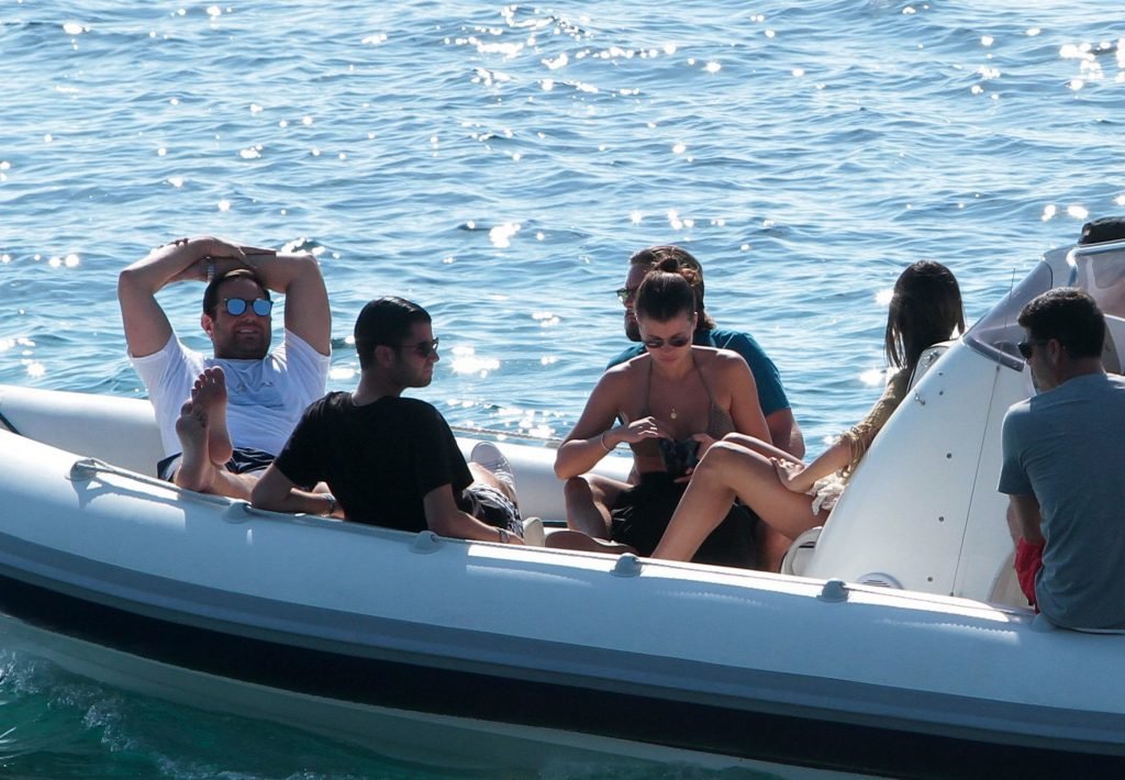 Sofia Richie, Scott Disick et leurs amis ont été aperçus sur un bateau rapide à l’île de Mykonos, Grèce, le 07/09/2018. Le mannequin de 19 ans portait un haut de bikini marron.