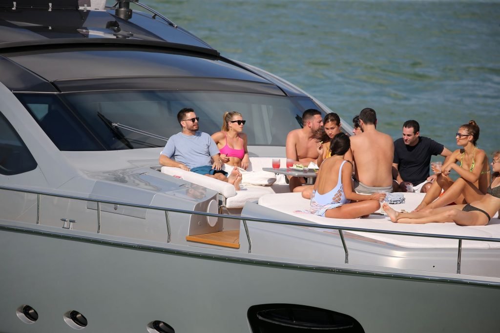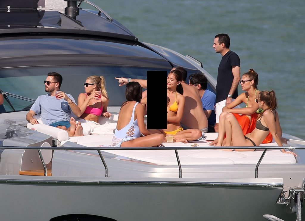 Le mannequin était rarement vu sans sa cigarette électronique Juul et son petit ami a été vu plus tard en train de fumer la sienne également. Le couple a passé la plupart de son temps ensemble sur le yacht tandis que quelques mannequins en bikini se prélassaient séparément.