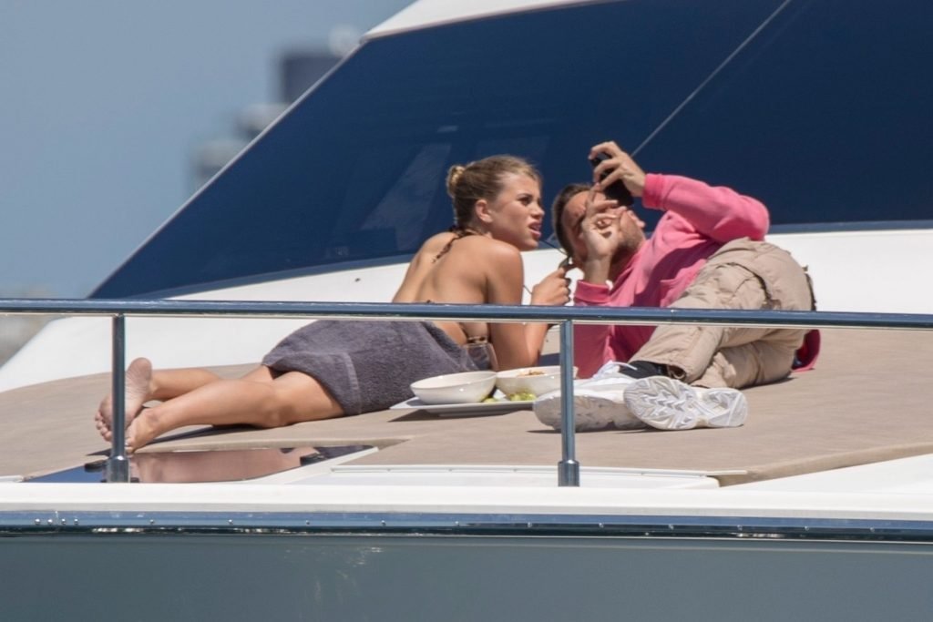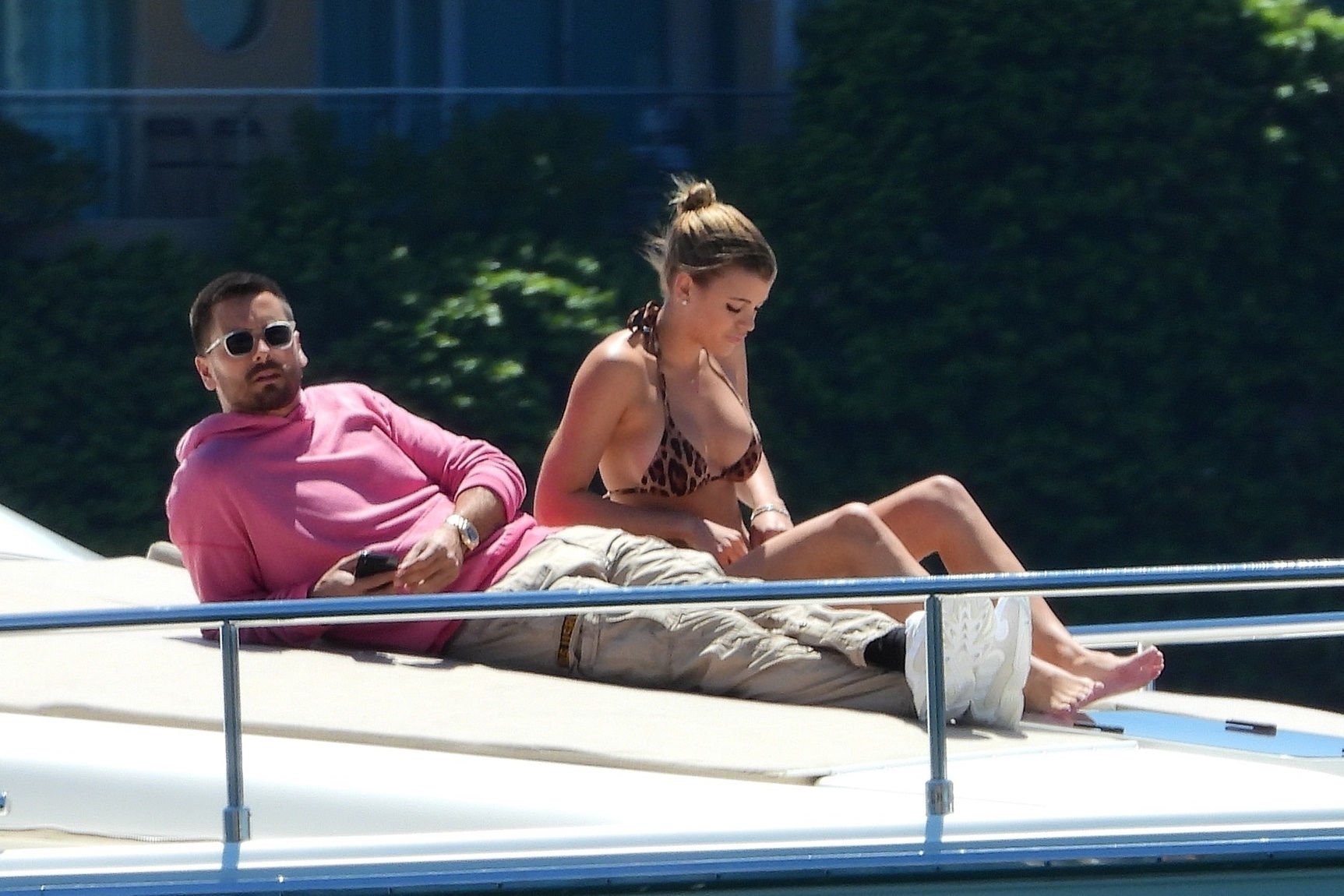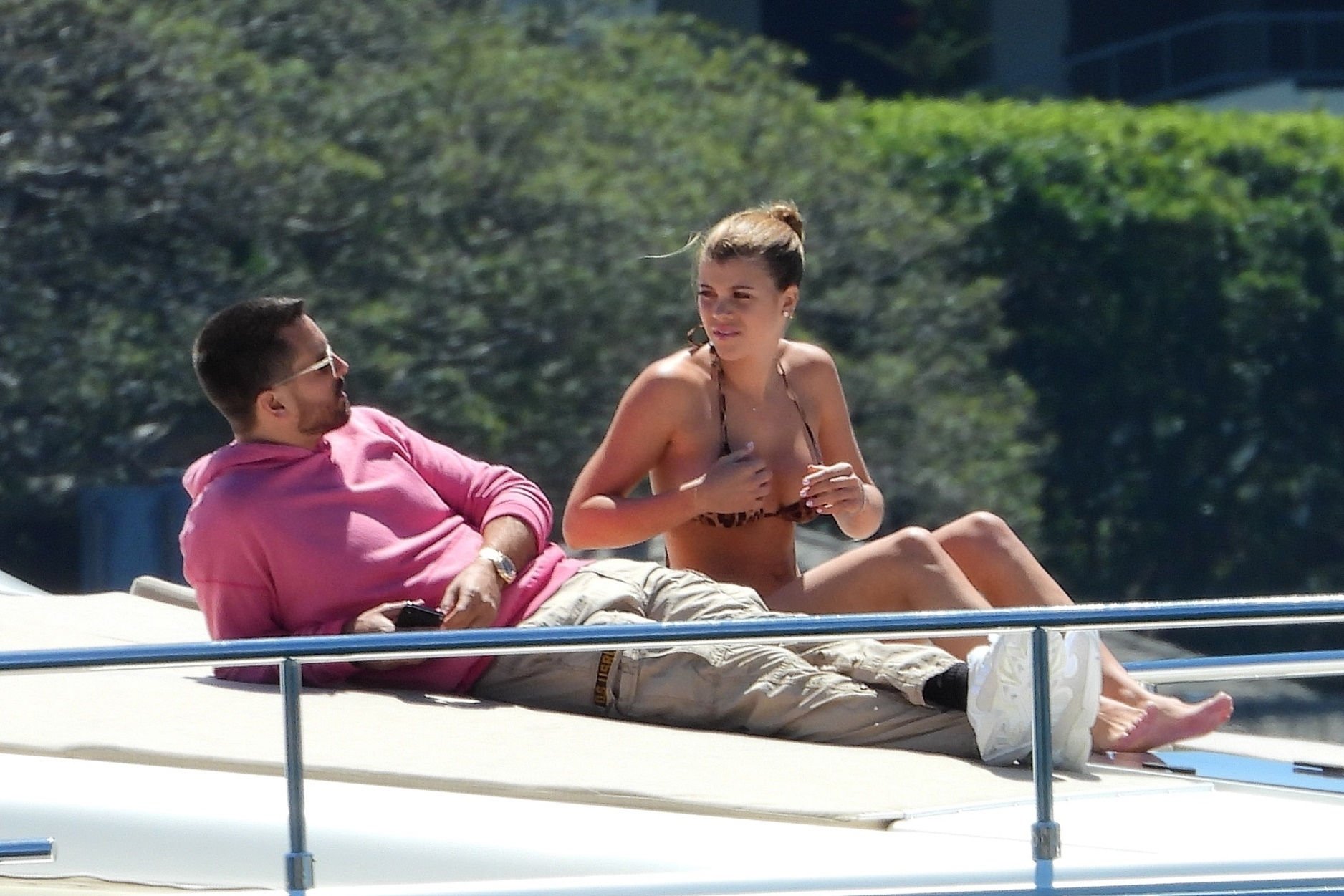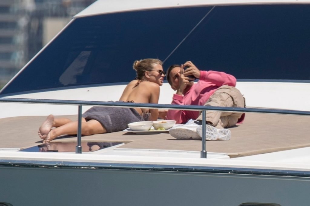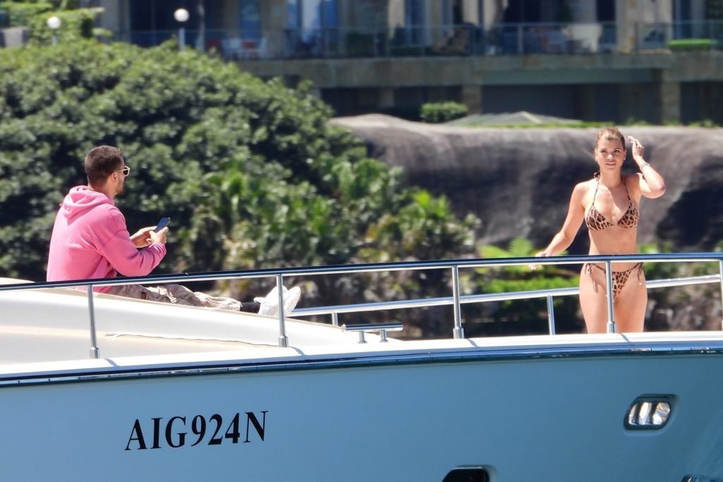 Le mannequin Sofia Richie a exhibé sa silhouette époustouflante en enfilant un minuscule bikini imprimé léopard pour profiter d’une croisière en yacht autour du port de Sydney avec son petit ami Scott Disick, le 30/10/2018. Scott et Sofia semblaient se disputer à la fin de la balade en bateau.