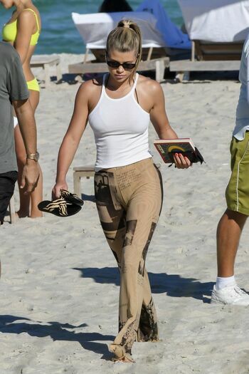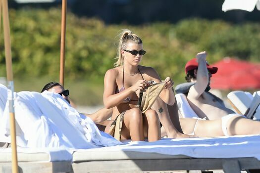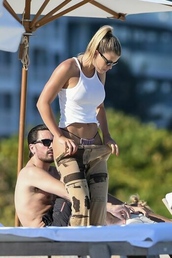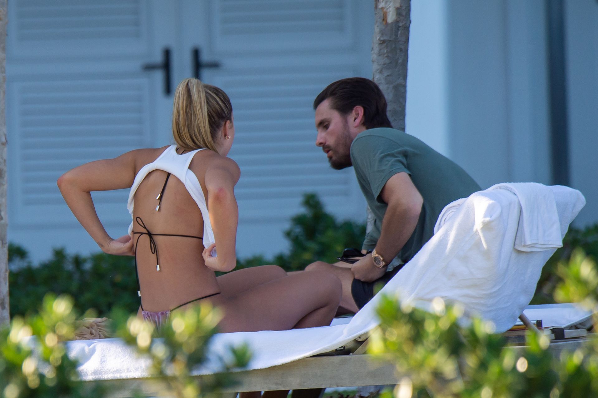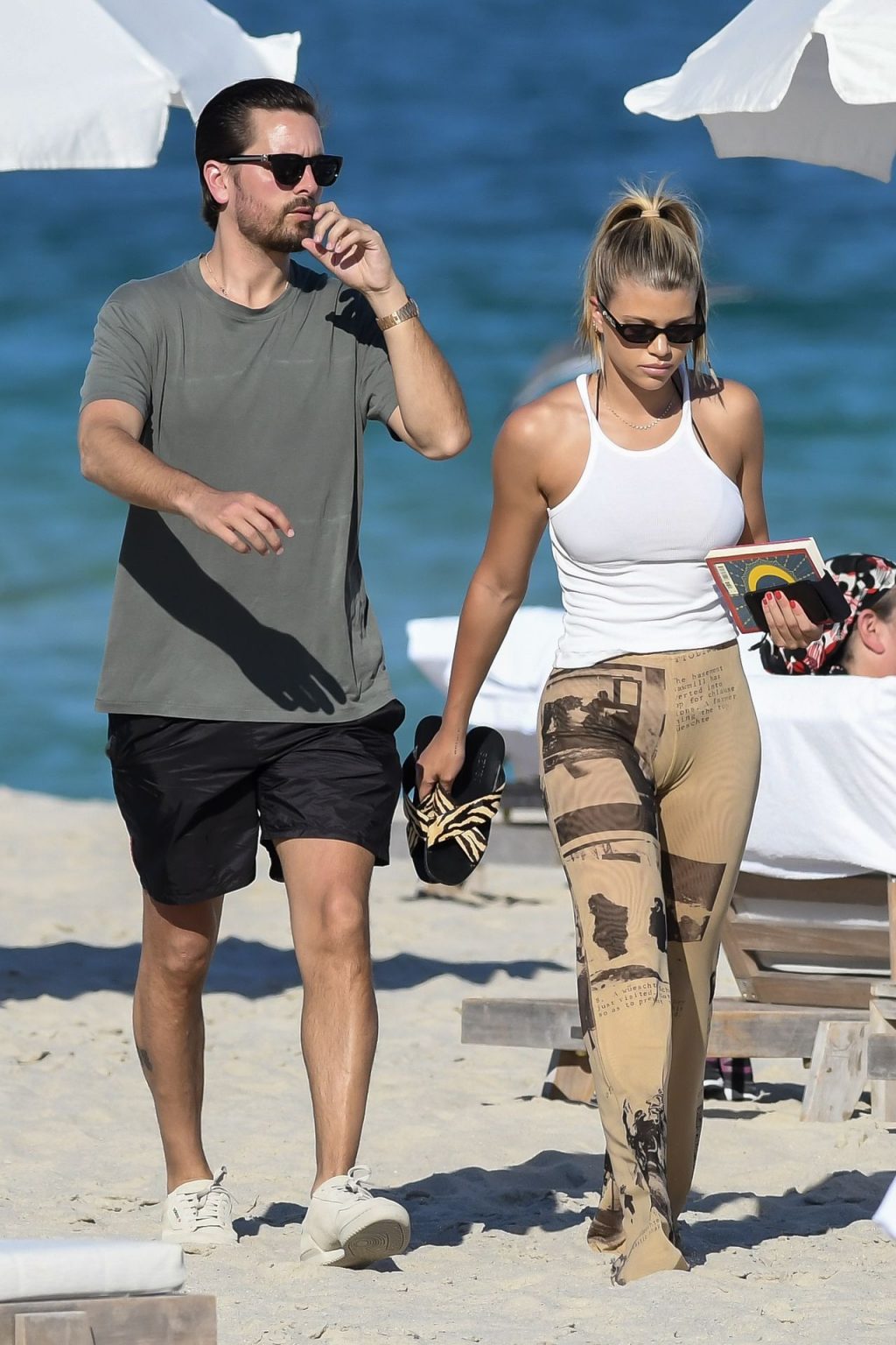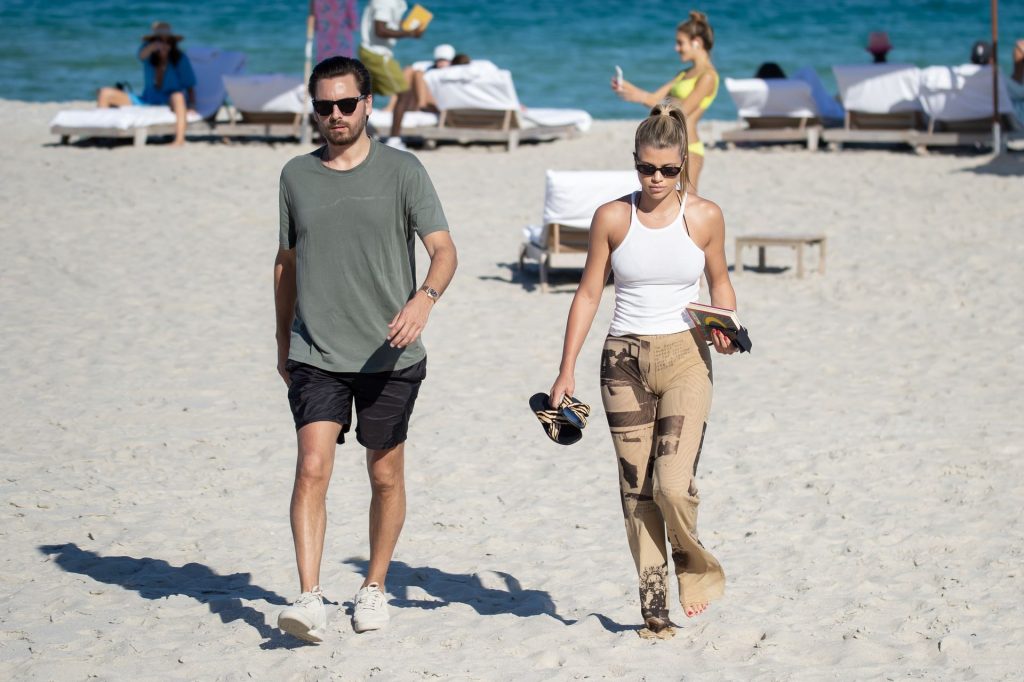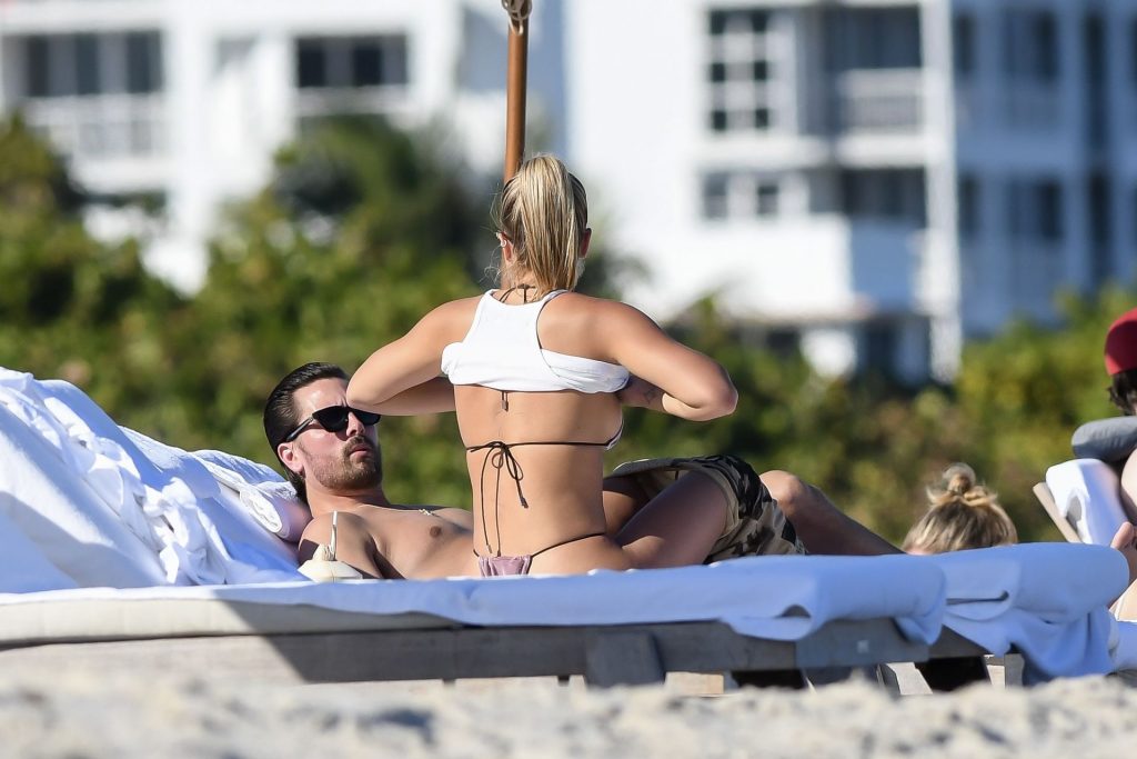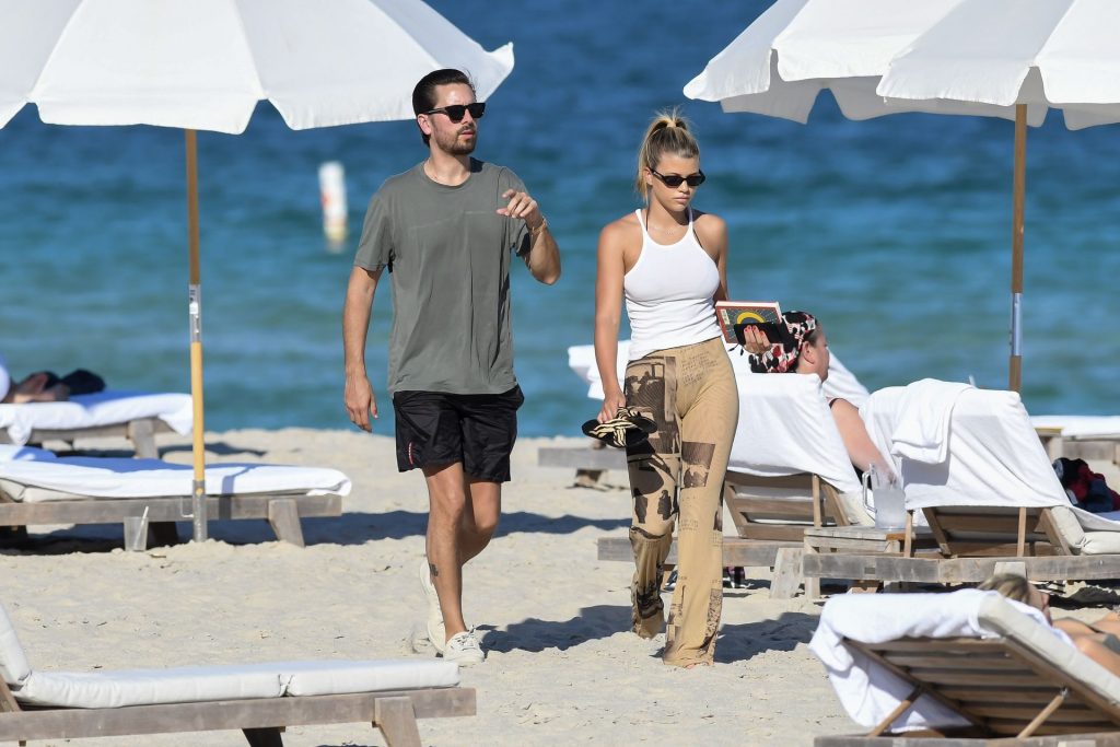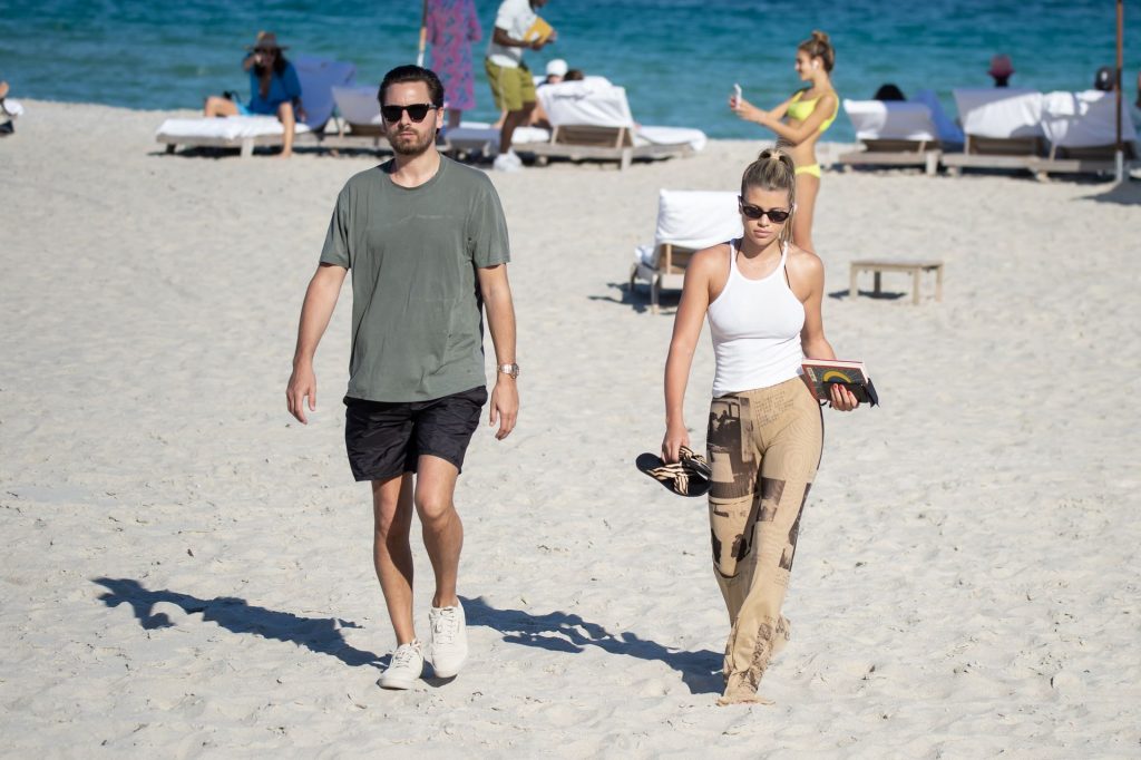 Le mannequin Sofia Richie et Scott Disick sont vus sur la plage à Miami lors de Thanksgiving, le 28/11/2019. En plus de son petit bikini, Sofia portait des lunettes de soleil Chanel.