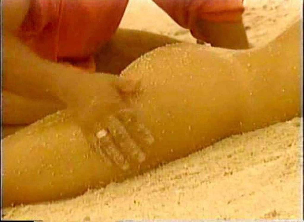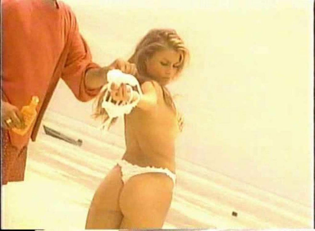 Here is a video from this photoshoot! First, we can see Sofia Vergara as she removes her robe and lying down topless and in skimpy bikini bottoms with her breasts in the sand, then seen entirely naked but still on her stomach, giving us a view at her ass as a guy applies sand and then while posing during a shooting for her 1998 Swimsuit Calendar.