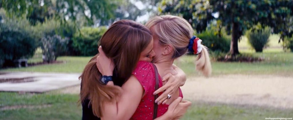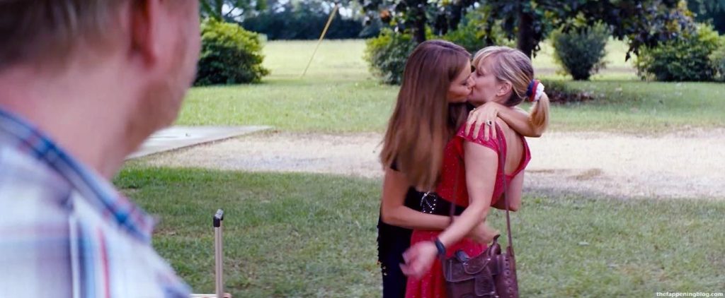 Alright, guys, so I think it’s now time for some lesbian action, wouldn’t you say so? So, guys, I will now show you a lesbian scene from a movie called ‘Hot Pursuit’. First, Sofia Vergara (the brunette on the left) grabbing Reese Witherspoon (the blonde on the right side of the screen) and lesbian kissing her before kissing her around her face and then tugging on her ponytail repeatedly till they start grabbing one other’s asses, all as a farmer observes and gets turned on as they try to divert him.
