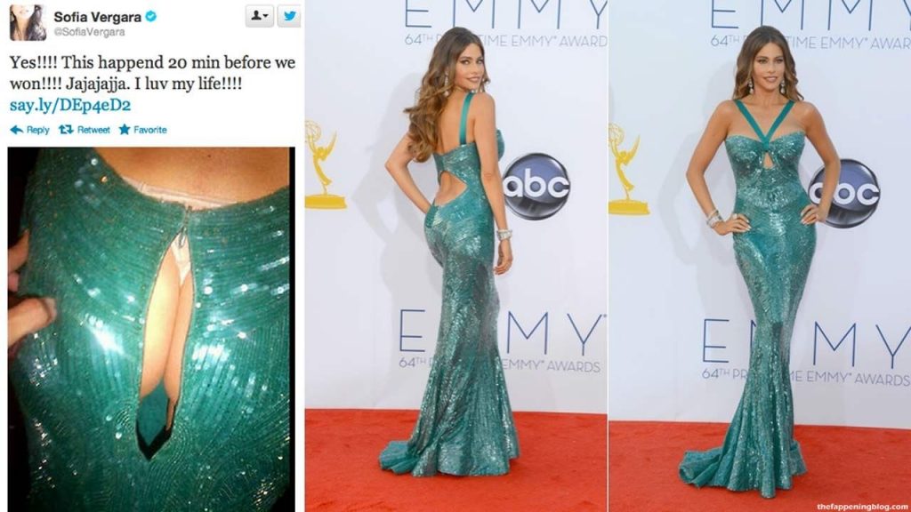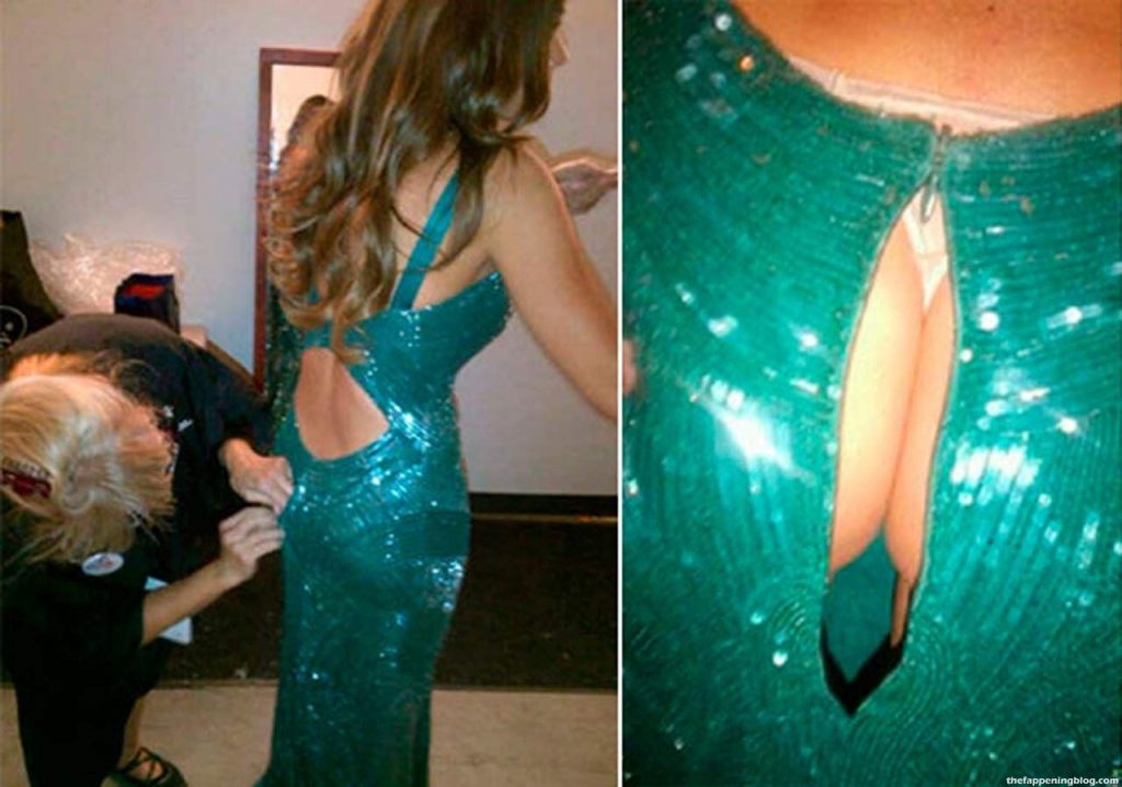 Colombian mamasita Sofia Vergara ass flash was one of the main headlines in 2012! Before the Emmys busty, Sofia had a wardrobe malfunction. Zipper on her sparkly gown failed, and her butt flashed! Her friend took a picture of this moment, and our dear Sofia shared it.