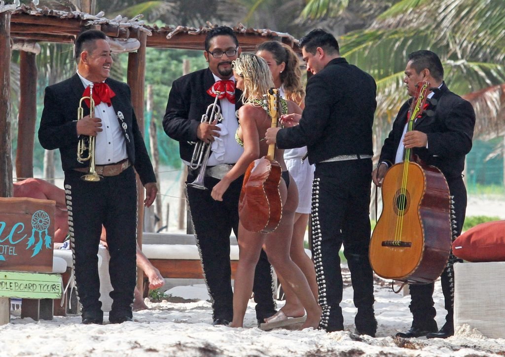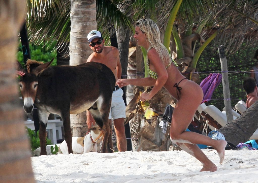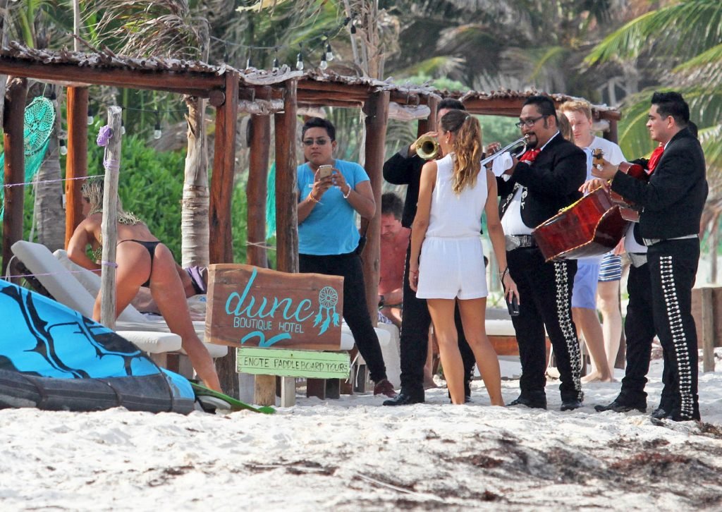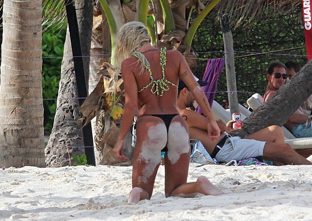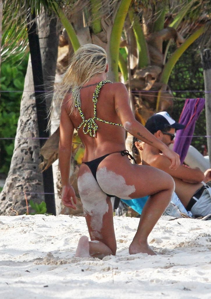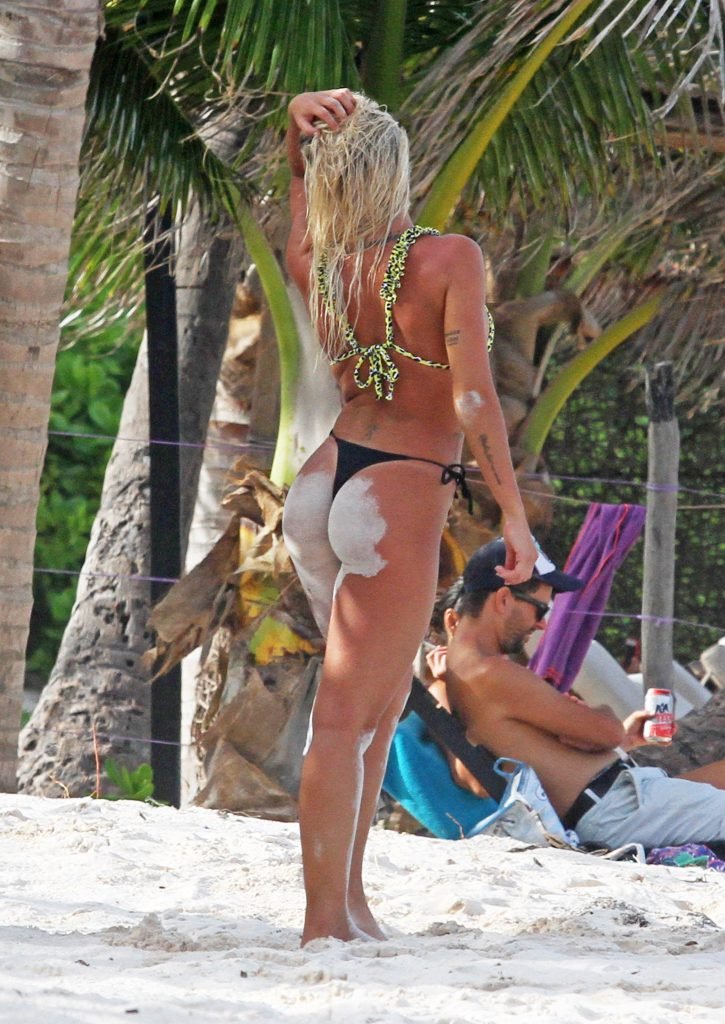 Solci Perez, la présentatrice météo argentine de 24 ans et star des réseaux sociaux, profite de moments en famille sur la plage à Tulum, Mexico, Mexique, 27/06/2018.