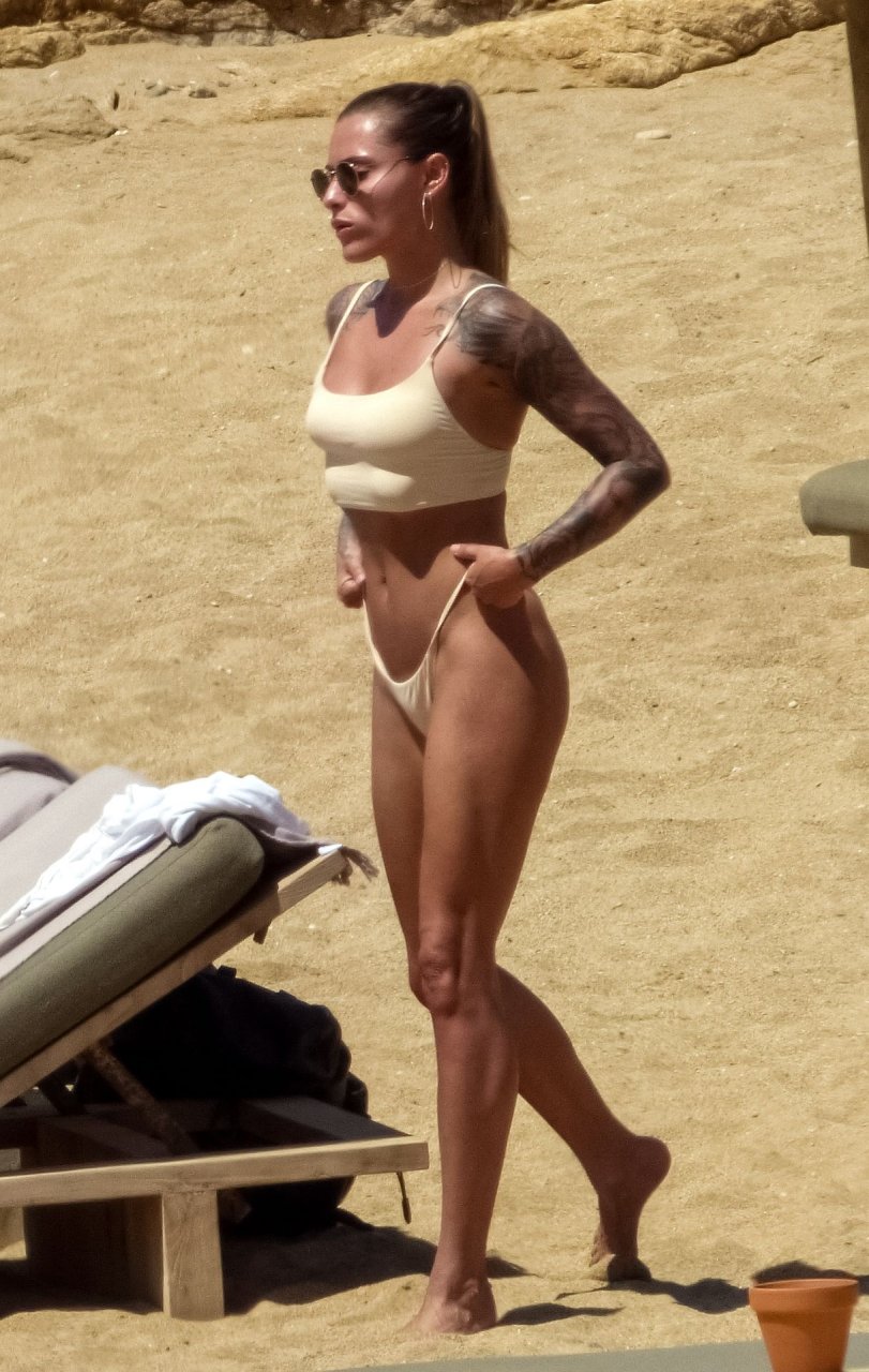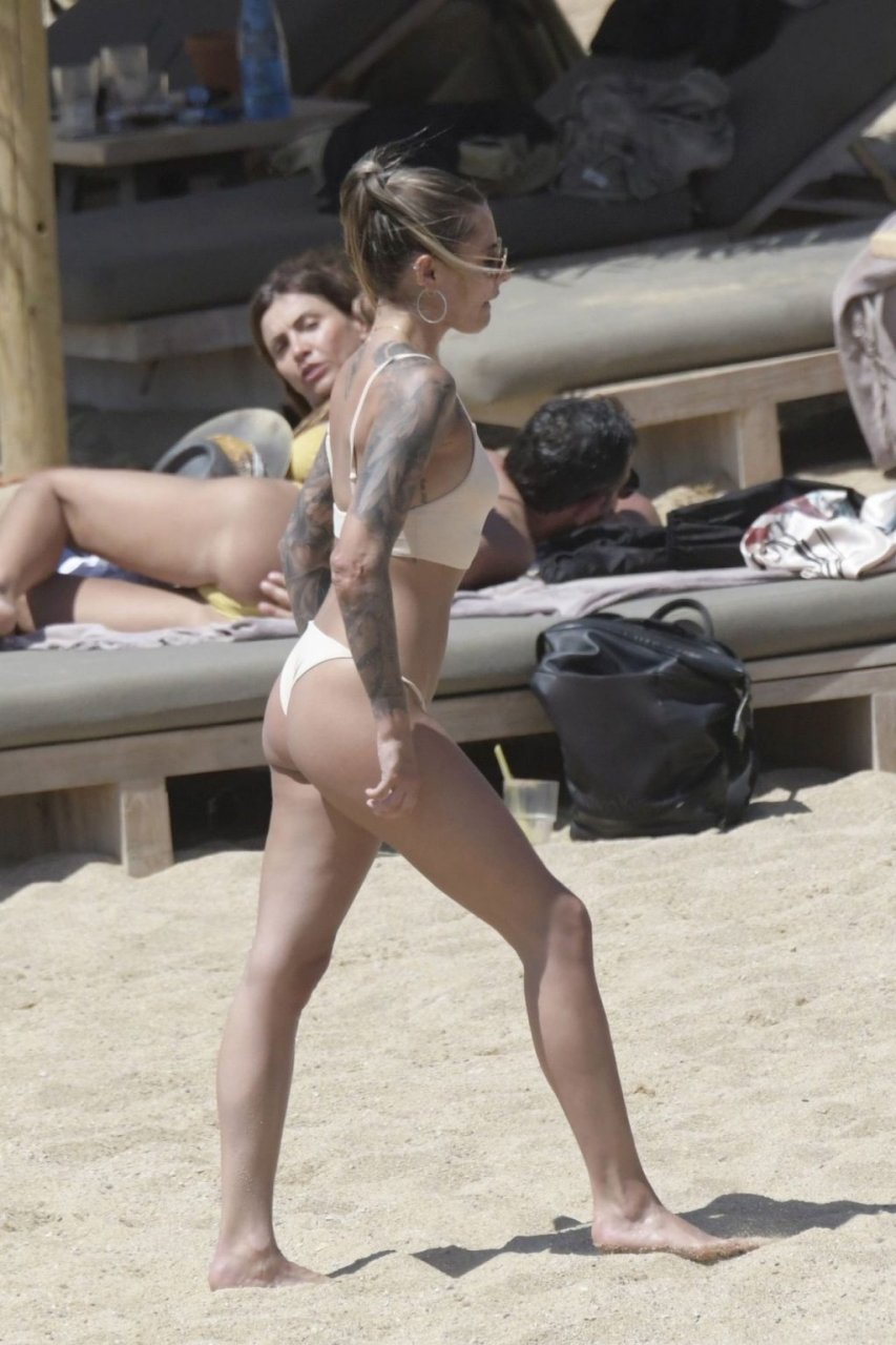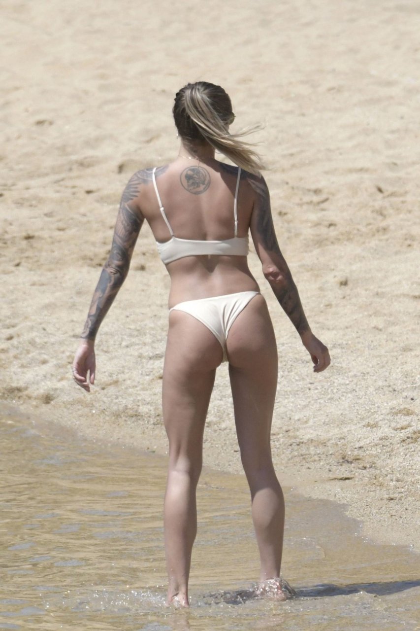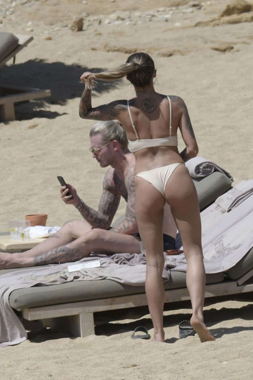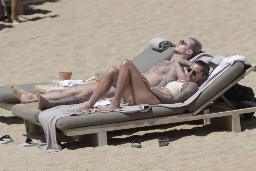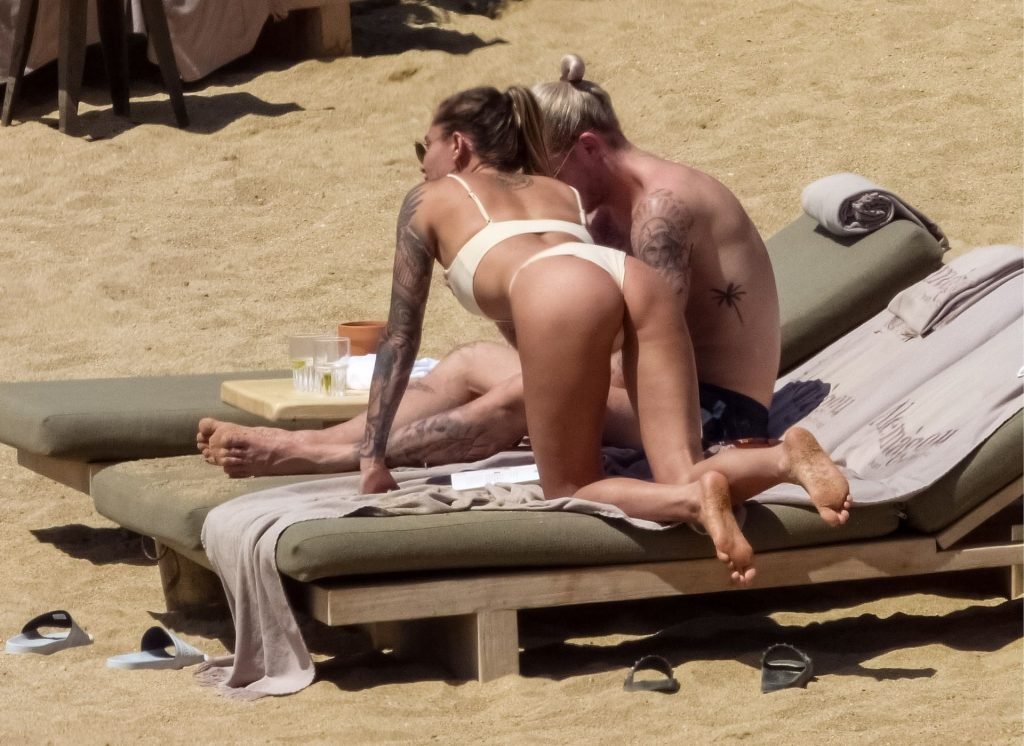Le footballeur allemand Loris Karius et la personnalité allemande Sophia Thomalla ont été vus ensemble sur la plage de l’île de Mykonos, Grèce, le 02/06/2019.