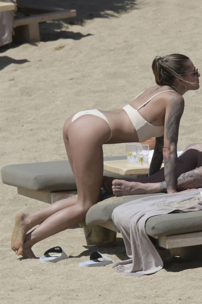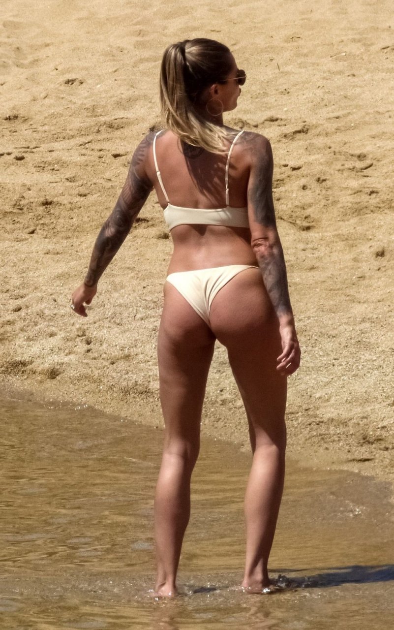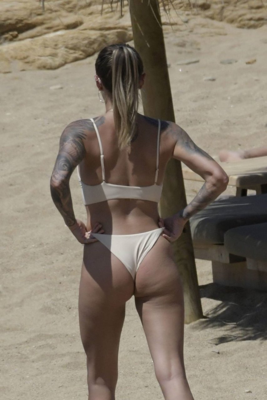 Elle n'a pas de fesses, c'est pourquoi elle doit sans cesse remonter le bas de son bikini