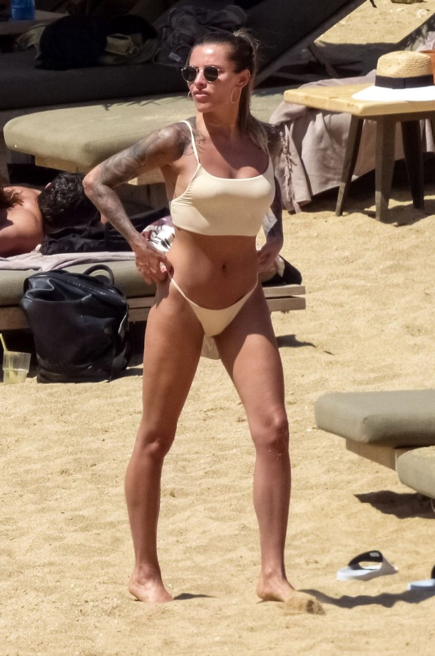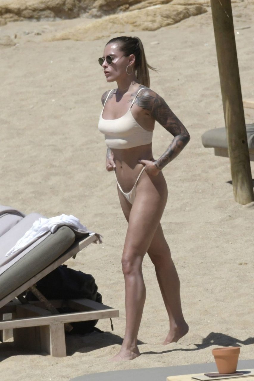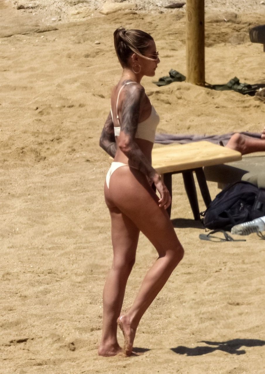 Elle n'a pas de fesses, c'est pourquoi elle doit sans cesse remonter le bas de son bikini