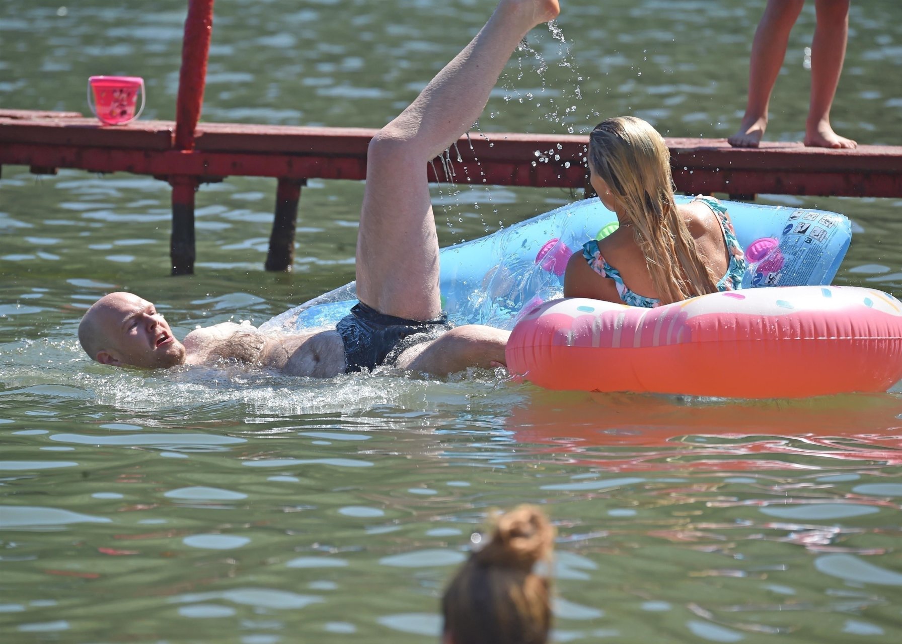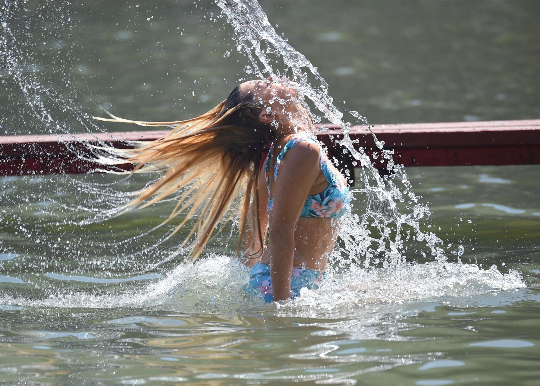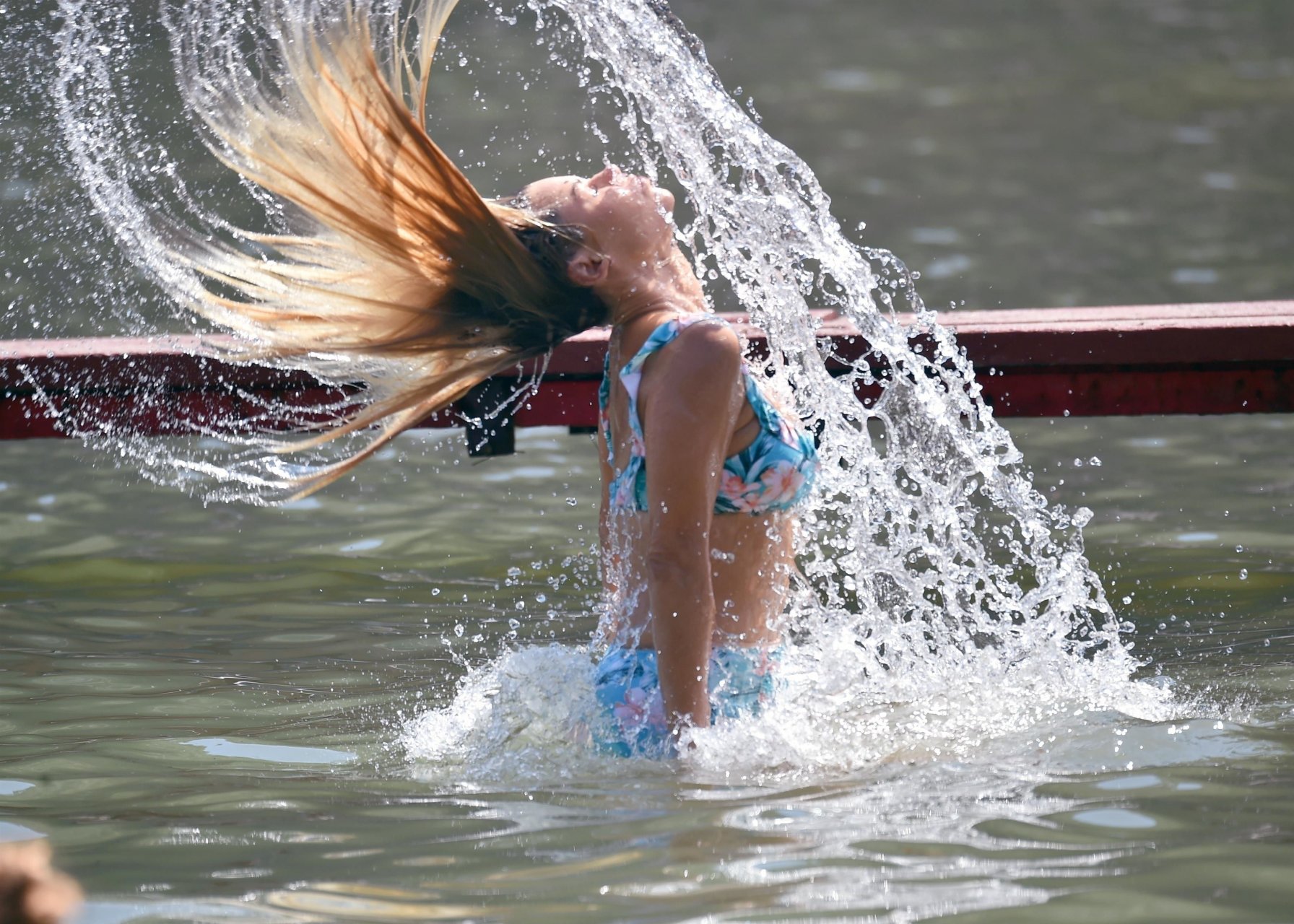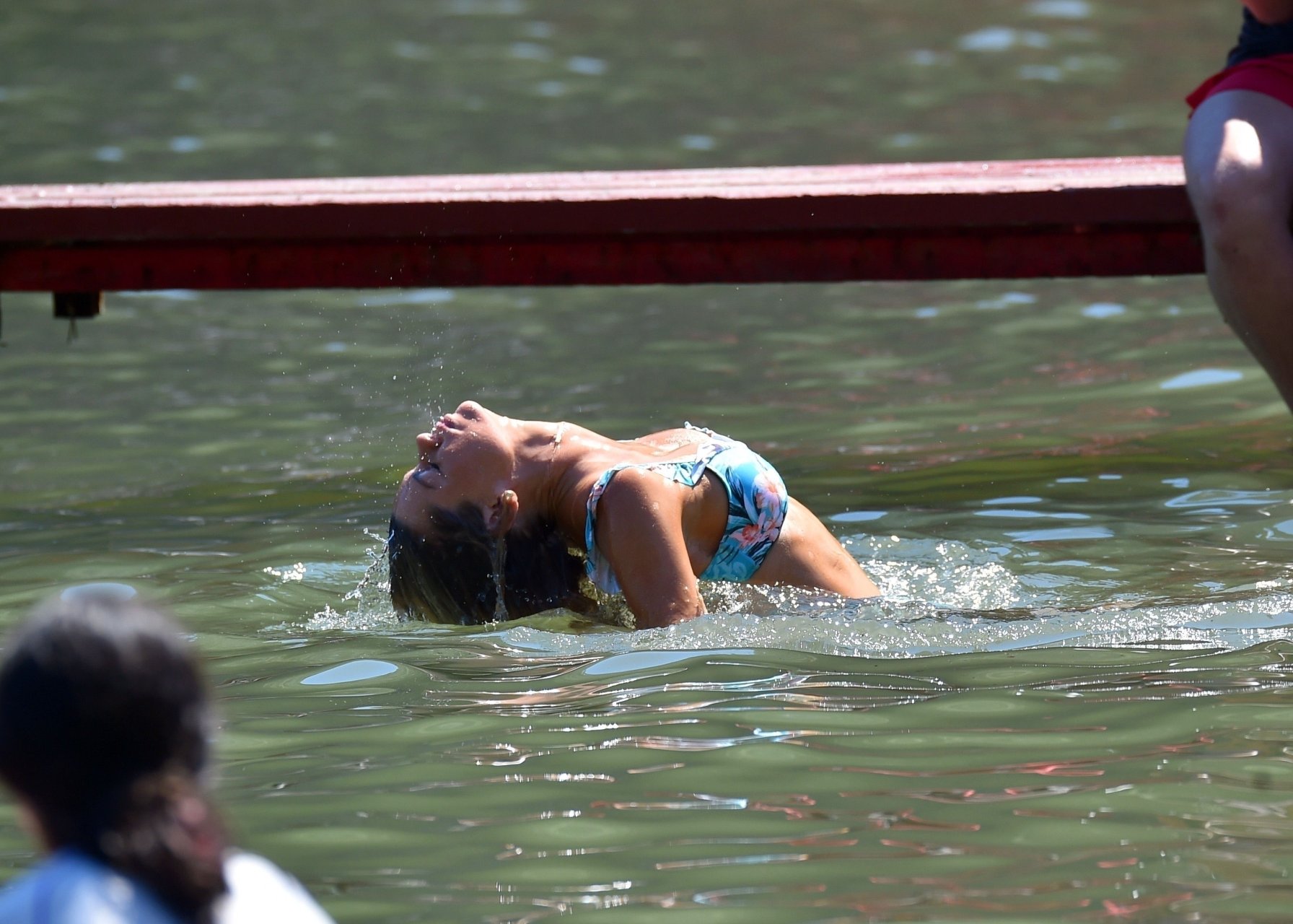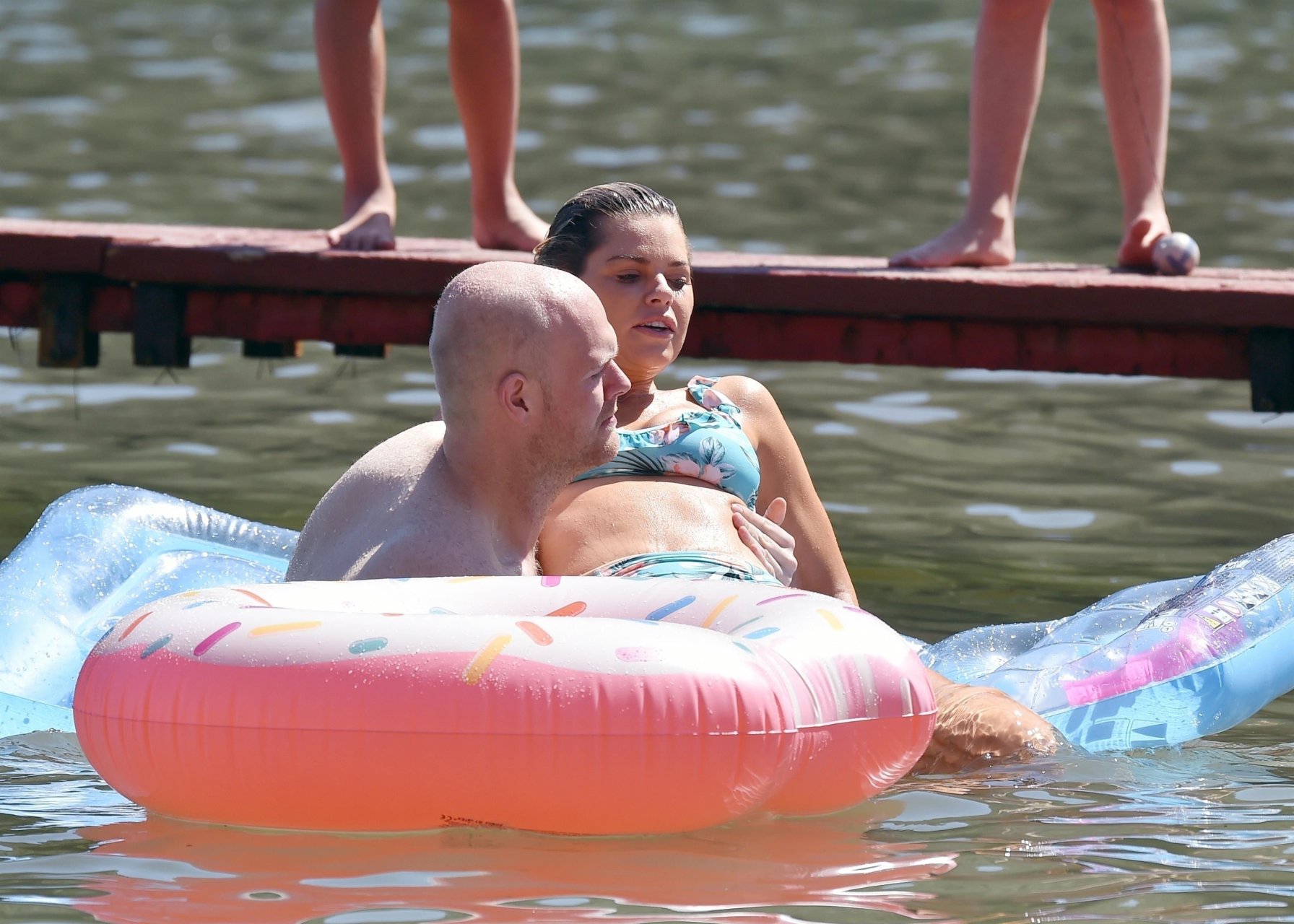 Sophie Monk a été photographiée avec un look cool dans un bikini bleu taille haute lors du tournage d’une émission de télévision avec Oscar Gordon sur la plage de Portofino, le 14/07/2018.