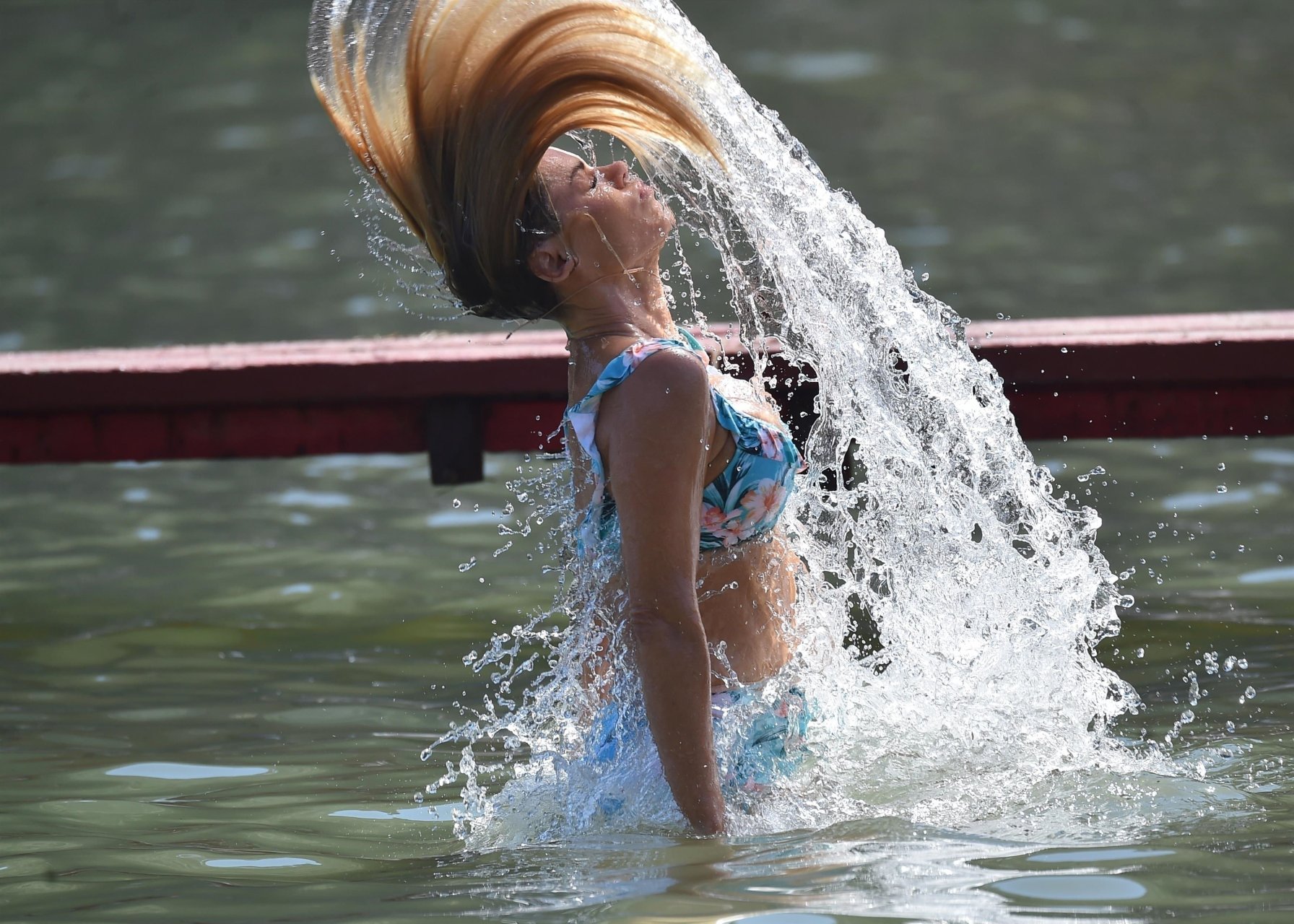 L'âge ne lui a pas fait de cadeau... en plus ce maillot de bain ridicule de grand-mère... secouant la tête.