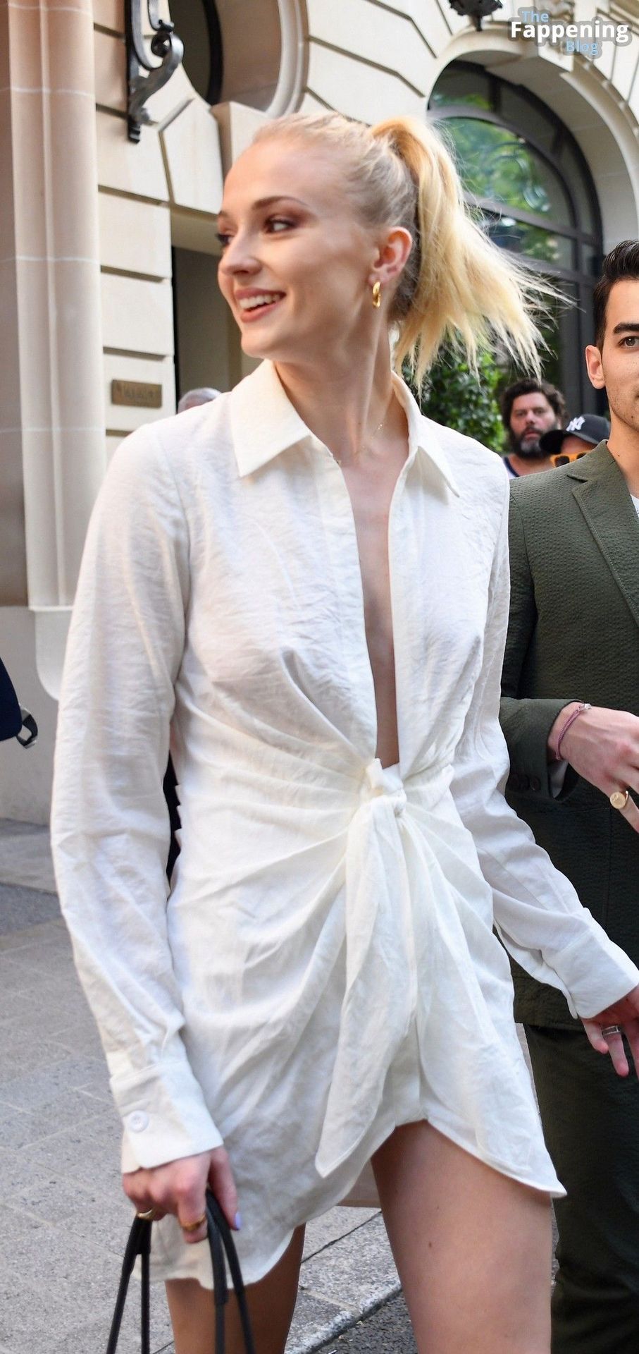 Sophie Turner a été aperçue avec Joe Jonas à Paris le 24 juin 2019, portant une robe audacieuse sans lingerie. La célébrité arborait une robe courte légère qui ressemblait plus à une longue chemise d’homme déboutonnée, et elle ne portait aucun sous-vêtement. Impossible de manquer sa poitrine, clairement visible à travers les vêtements !
