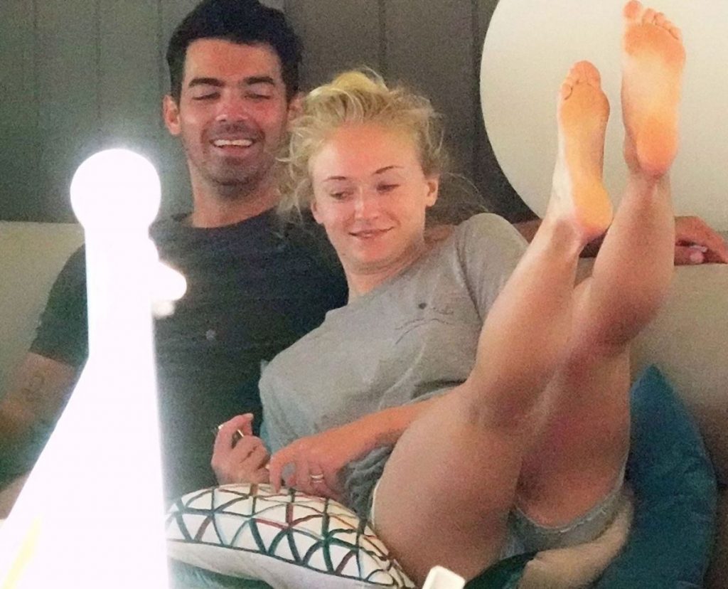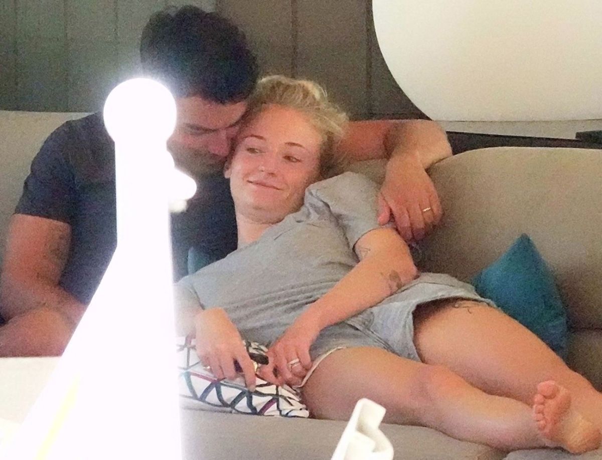 Woah! It looks like the newly married couple couldn’t keep their hands off each other for a long time! No wonder the couple got pregnant so fast! Well, here are a few paparazzi shots showing Sophie Turner and her husband, Joe Jonas! The couple was cuddling on a sofa when Sophie Turner suddenly turned around and started playing with Joe’s dick! Paparazzi needed to leave the scene because the photos would have been soo good, and he couldn’t sell them because it’s illegal to photograph that!