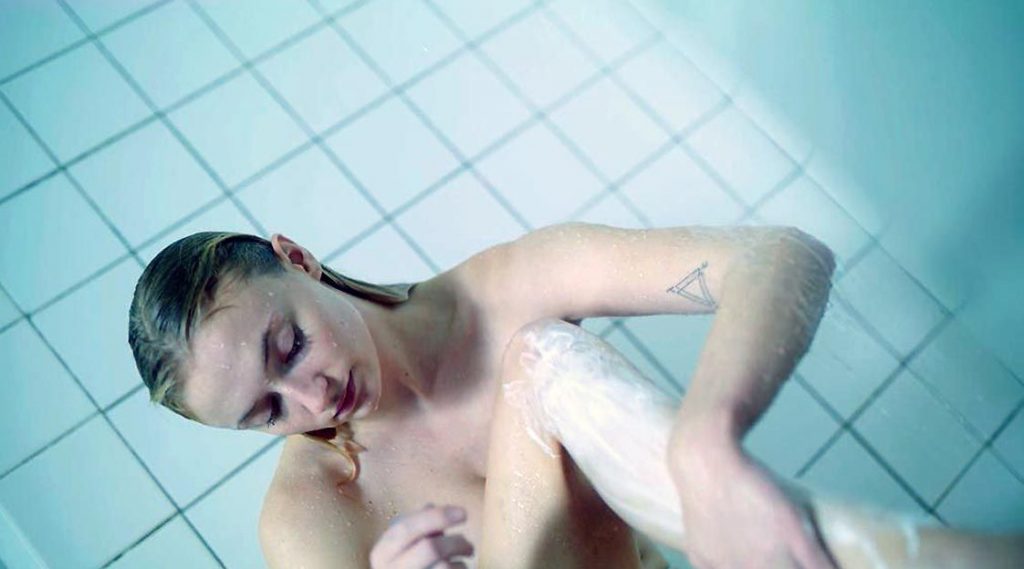 The last scene that I have to show you is from the ‘Survive’ series. Sophie Turner undresses and enters a tub nude, revealing some side cleavage and a side boob, before sitting on a bench to clean her thighs, nicking one of them.