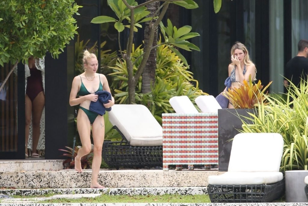Sophie Turner est vue en bikini vert tandis que Priyanka Chopra en tant qu’amies rejoignent les Jonas pour leur prochaine tournée, 08/03/2019.