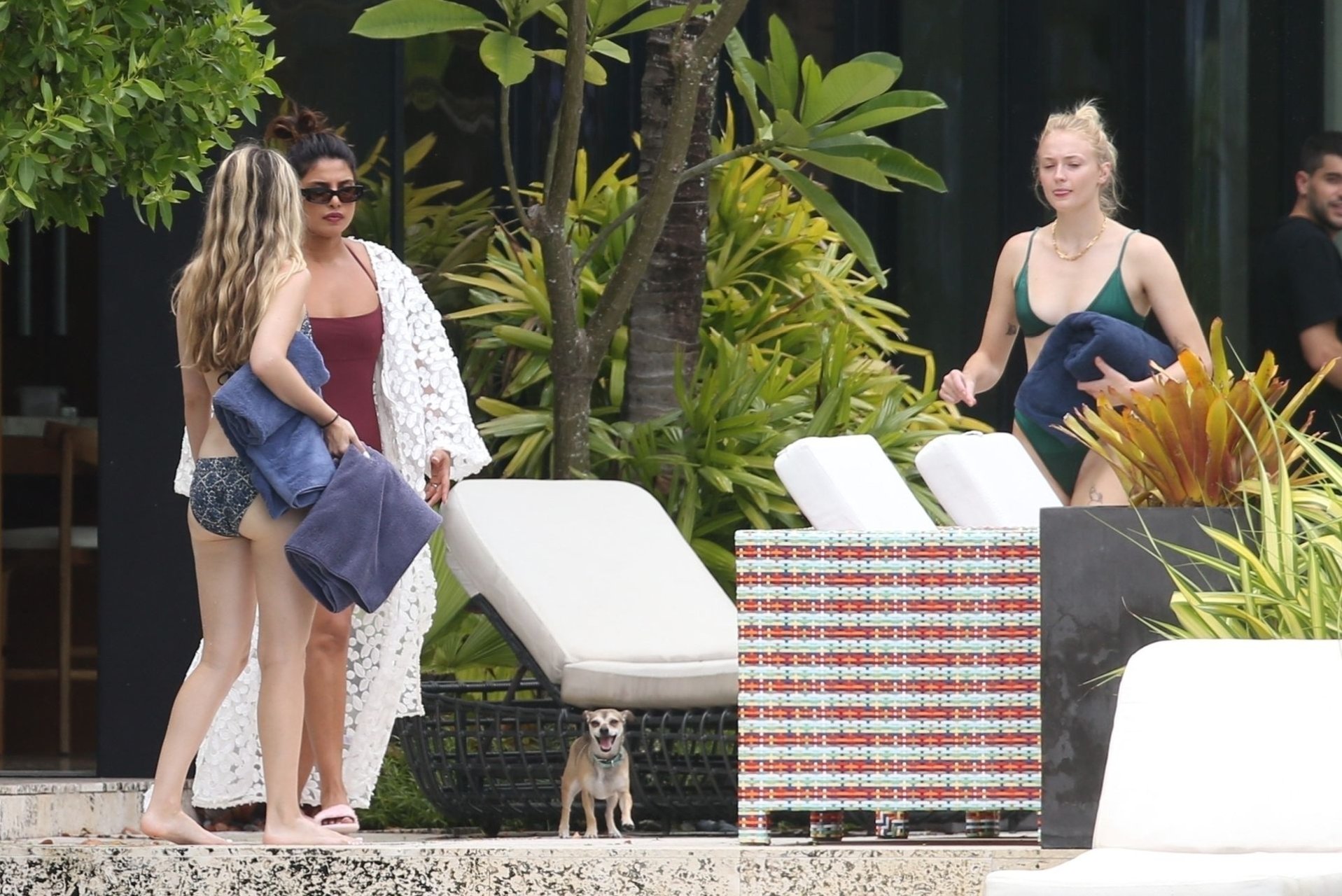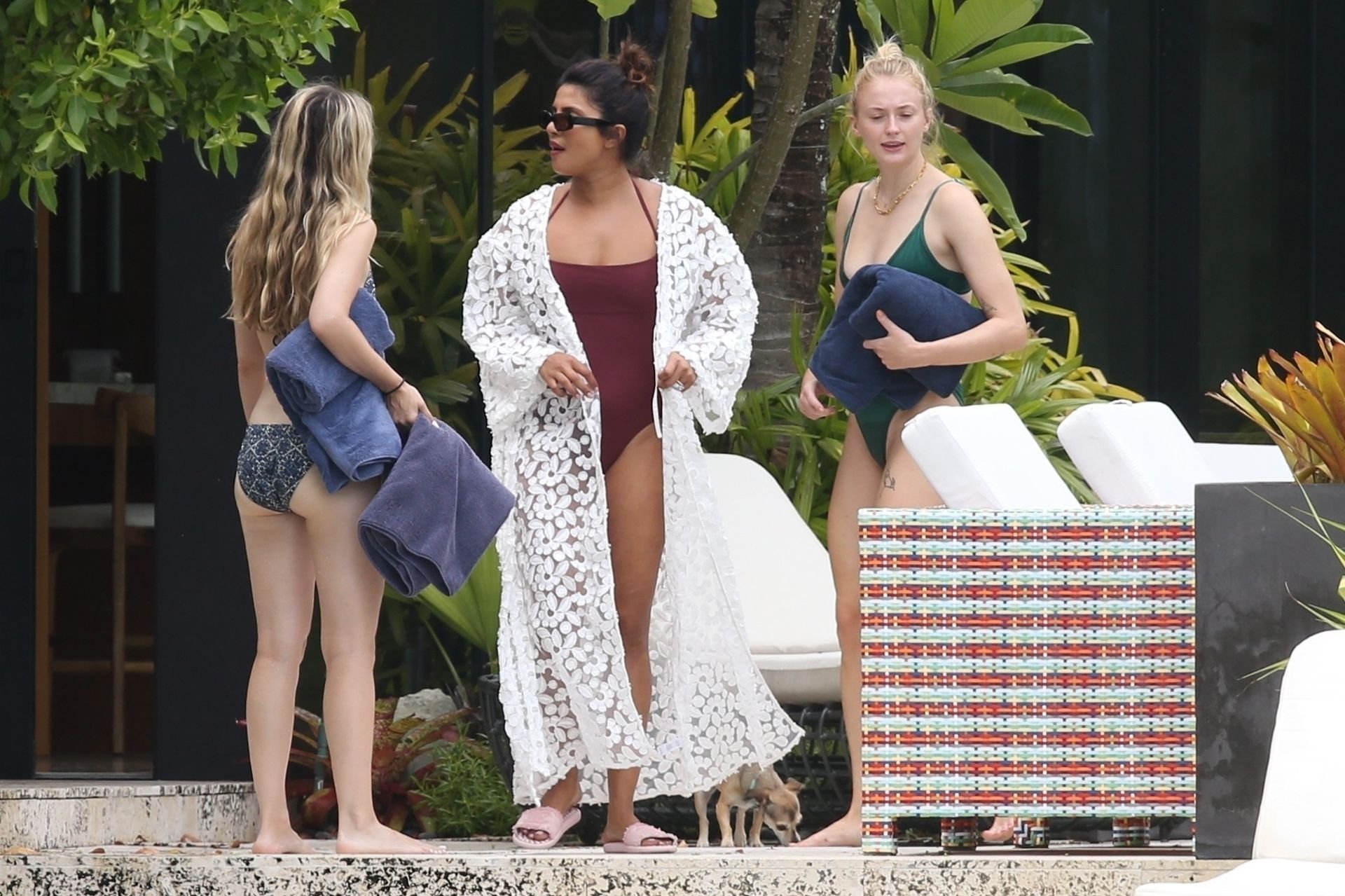 Sophie Turner est vue en bikini vert tandis que Priyanka Chopra en tant qu’amies rejoignent les Jonas pour leur prochaine tournée, 08/03/2019.