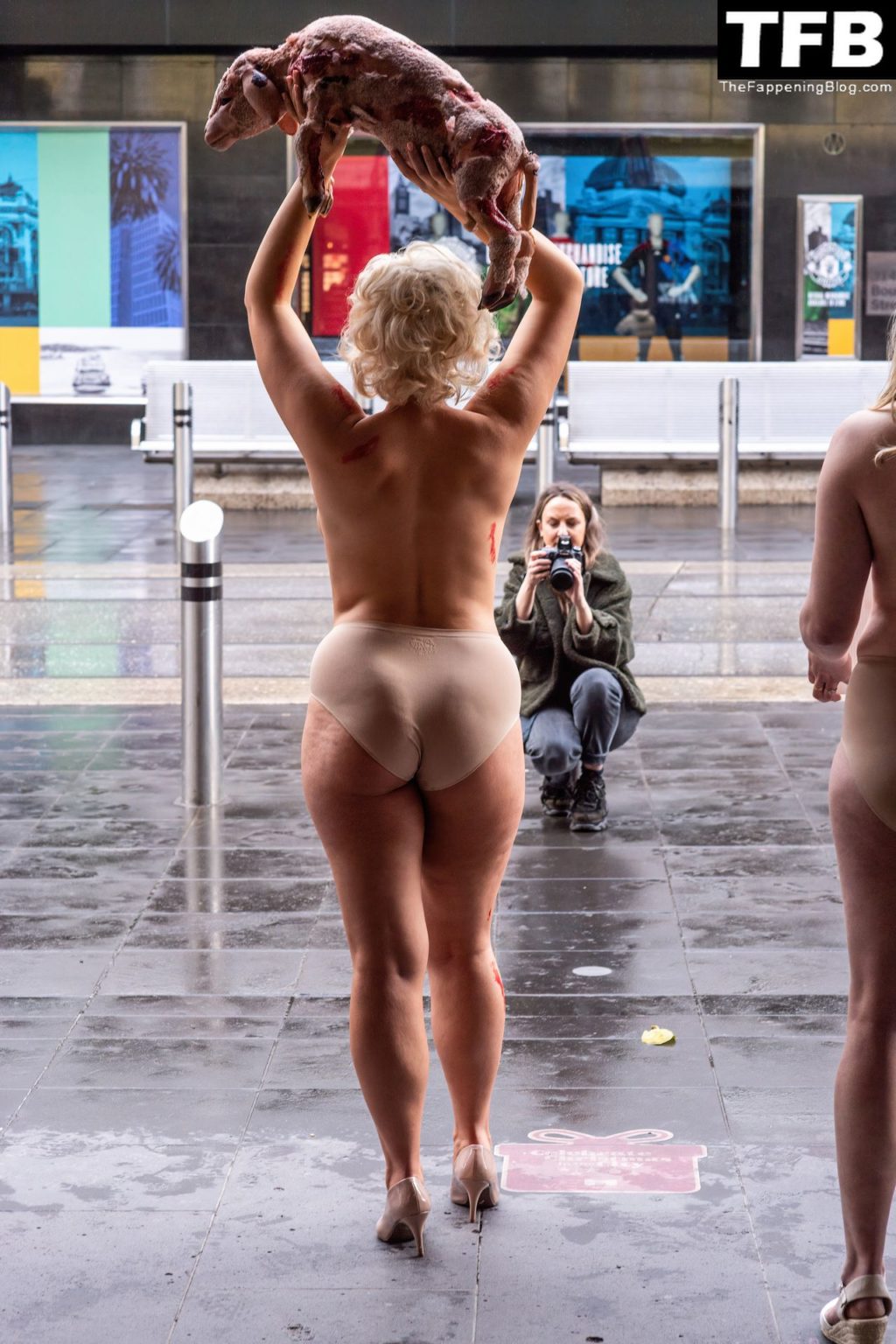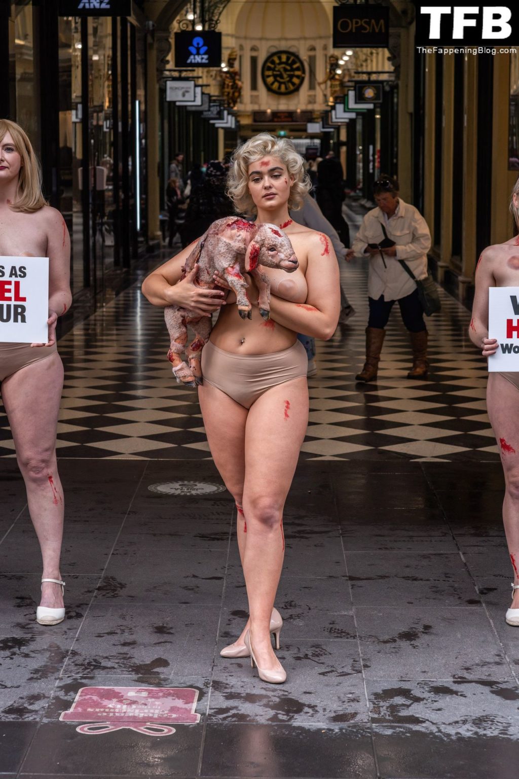 Stefania Ferrario éclipse l’activiste végane Tash Peterson lors de la manifestation PETA à Melbourne (6 Photos)
