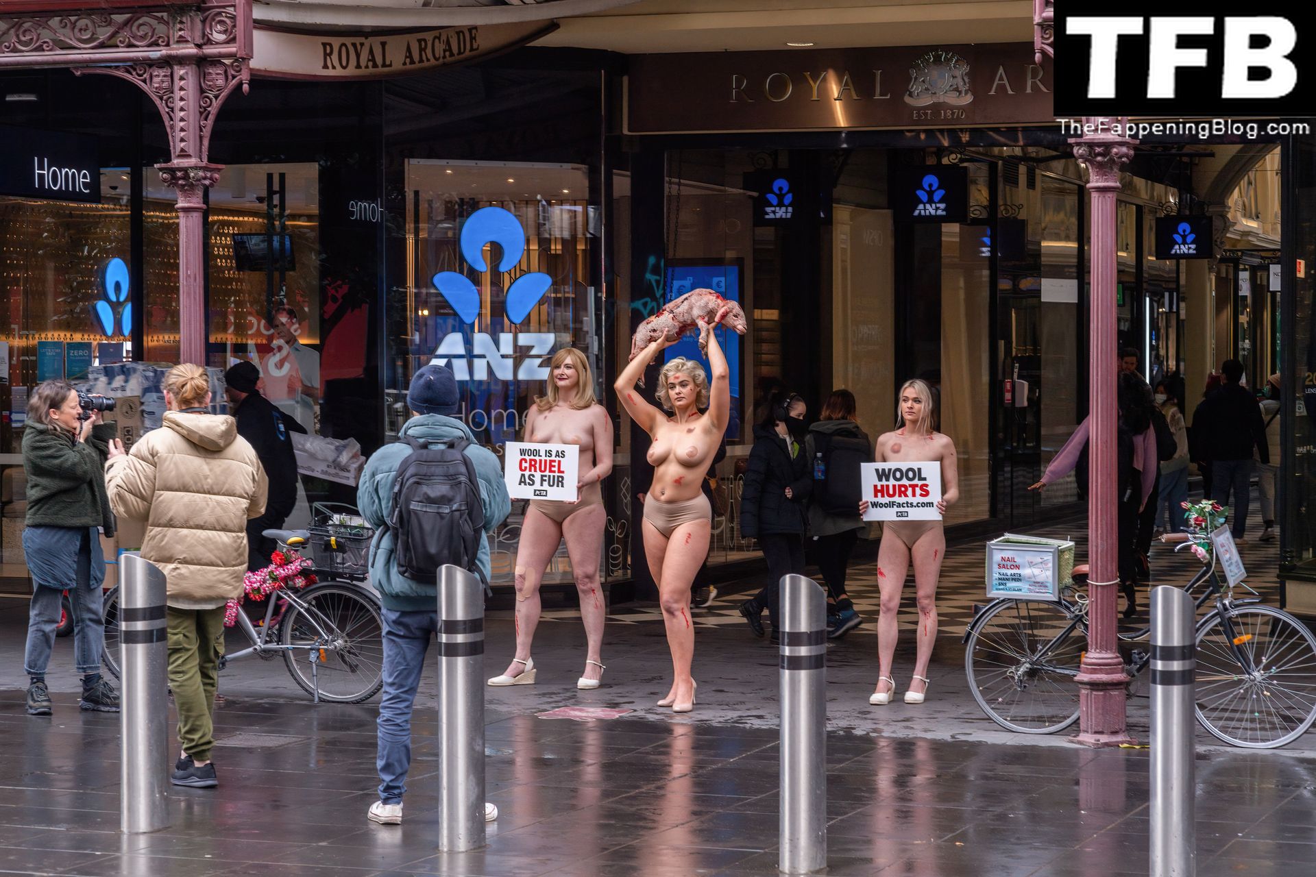 Stefania Ferrario éclipse l’activiste végane Tash Peterson lors de la manifestation PETA à Melbourne (6 Photos)