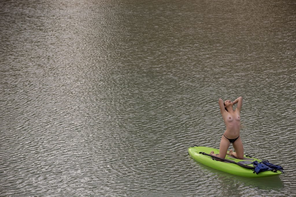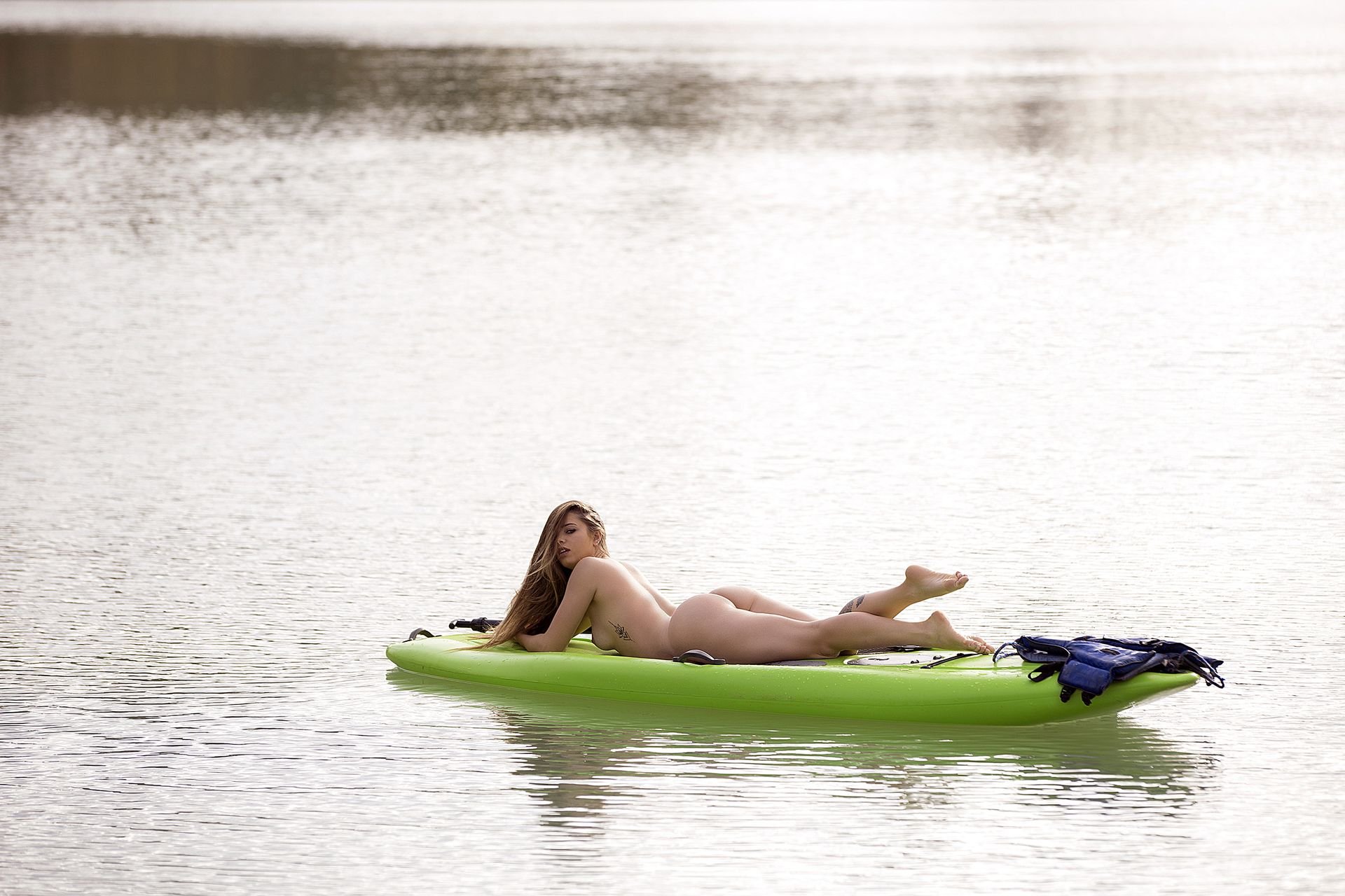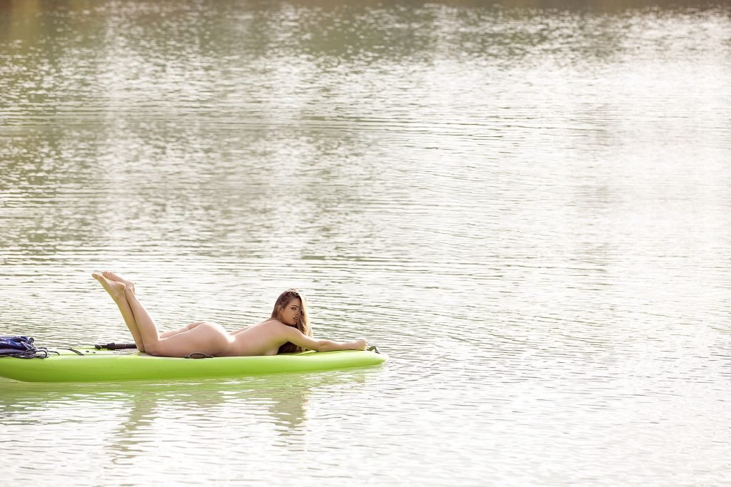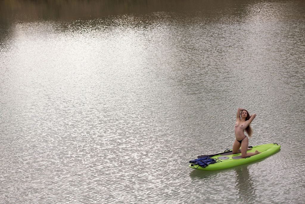 Le mannequin brésilien Stephany Carvalho a montré son beau corps nu lors d’une séance photo par Carlos Félix (2017). La superbe beauté a été photographiée nue sur un kayak vert.