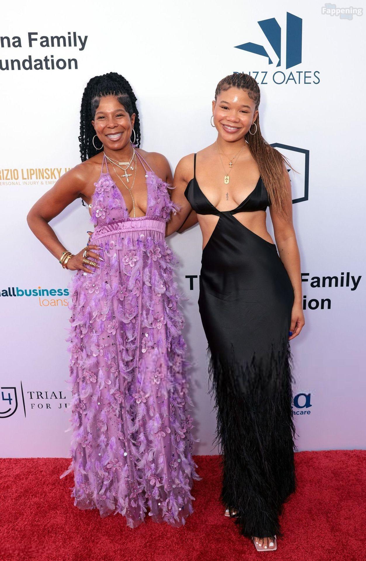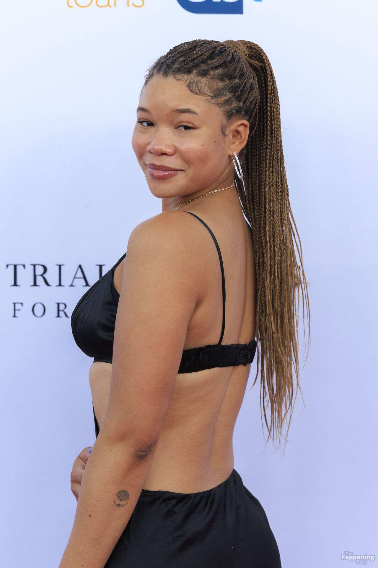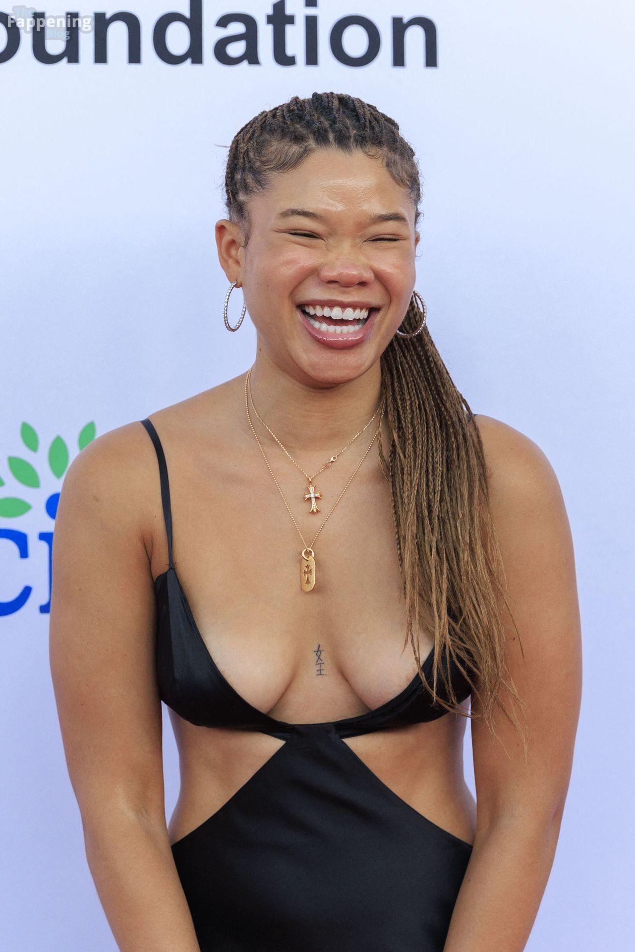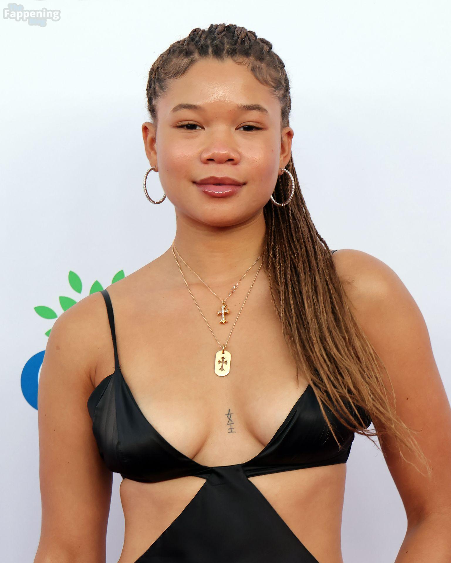 Storm Reid est vue à la Harold and Carole Pump Foundation lors de la fête au Beverly Hilton à Beverly Hills, portant une robe noire sauvage avec quelques découpes, montrant ses seins sexy.