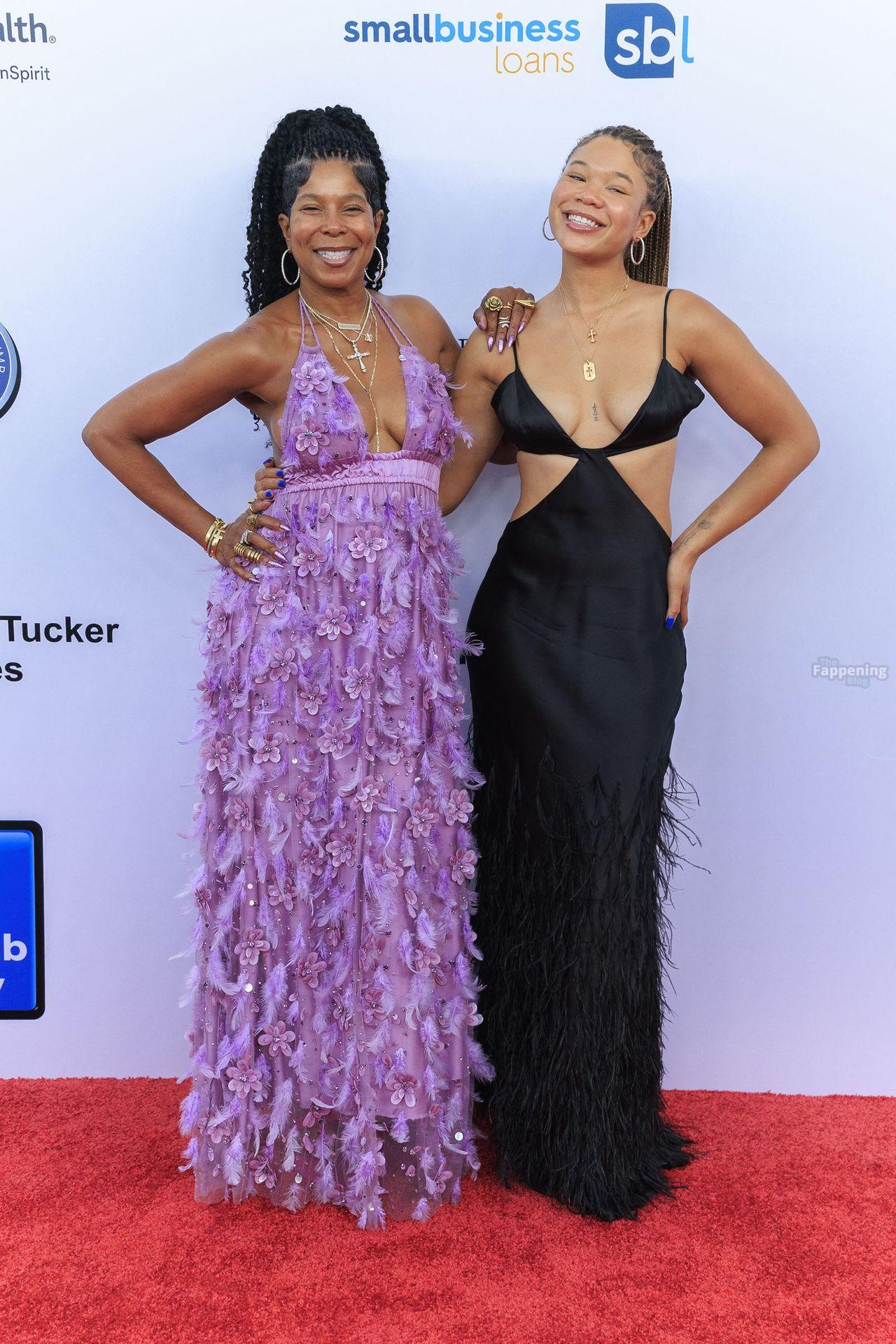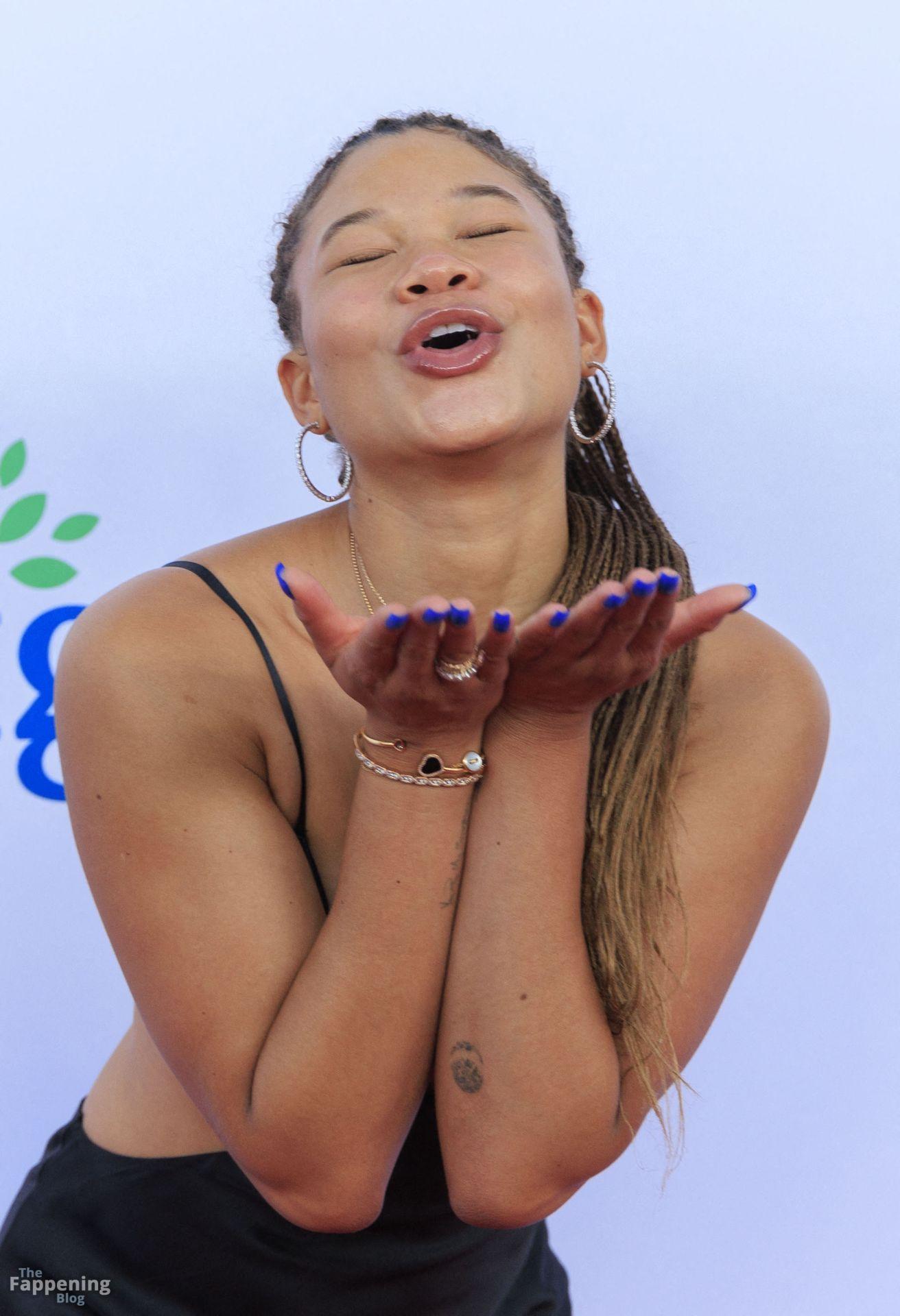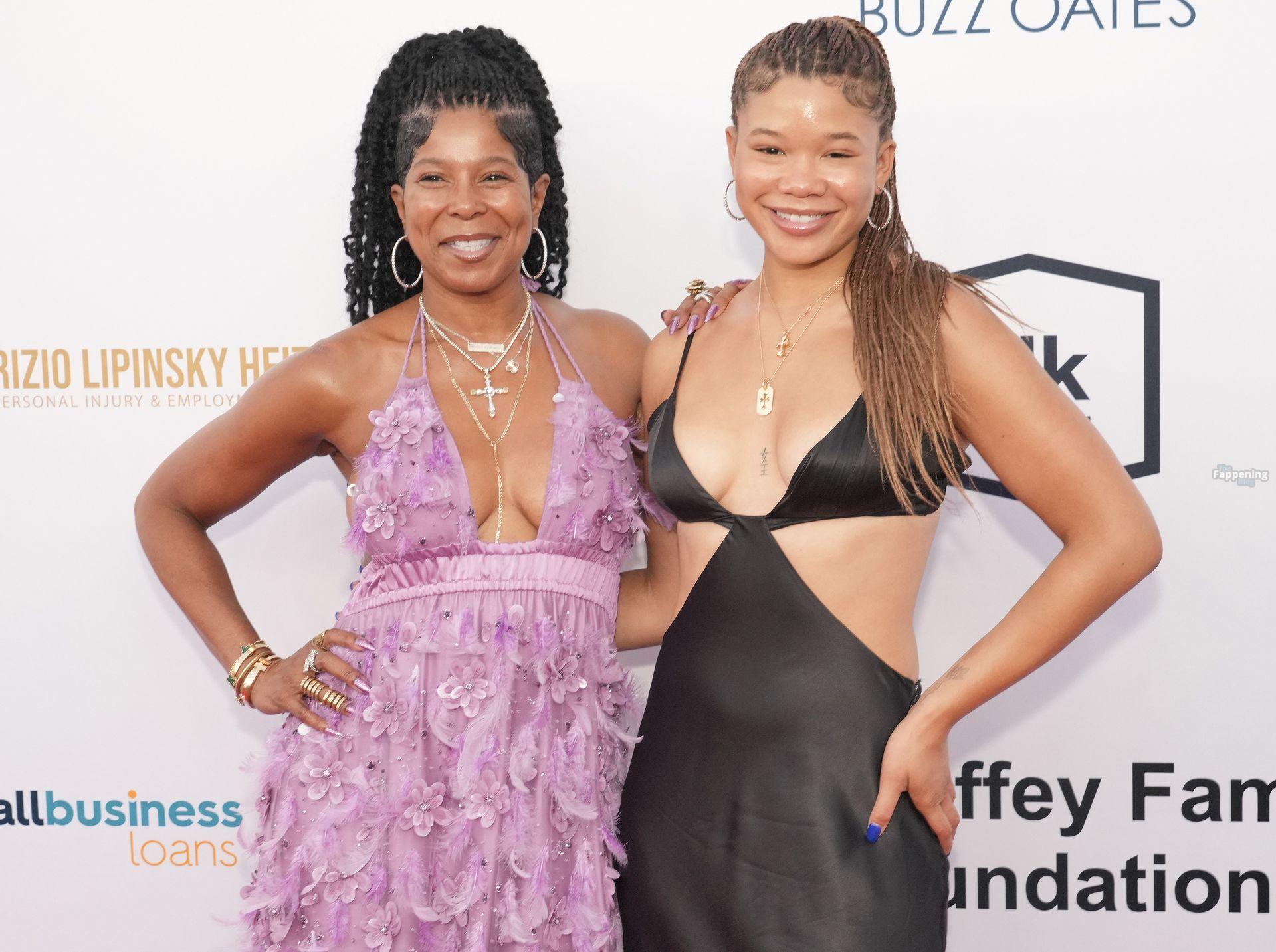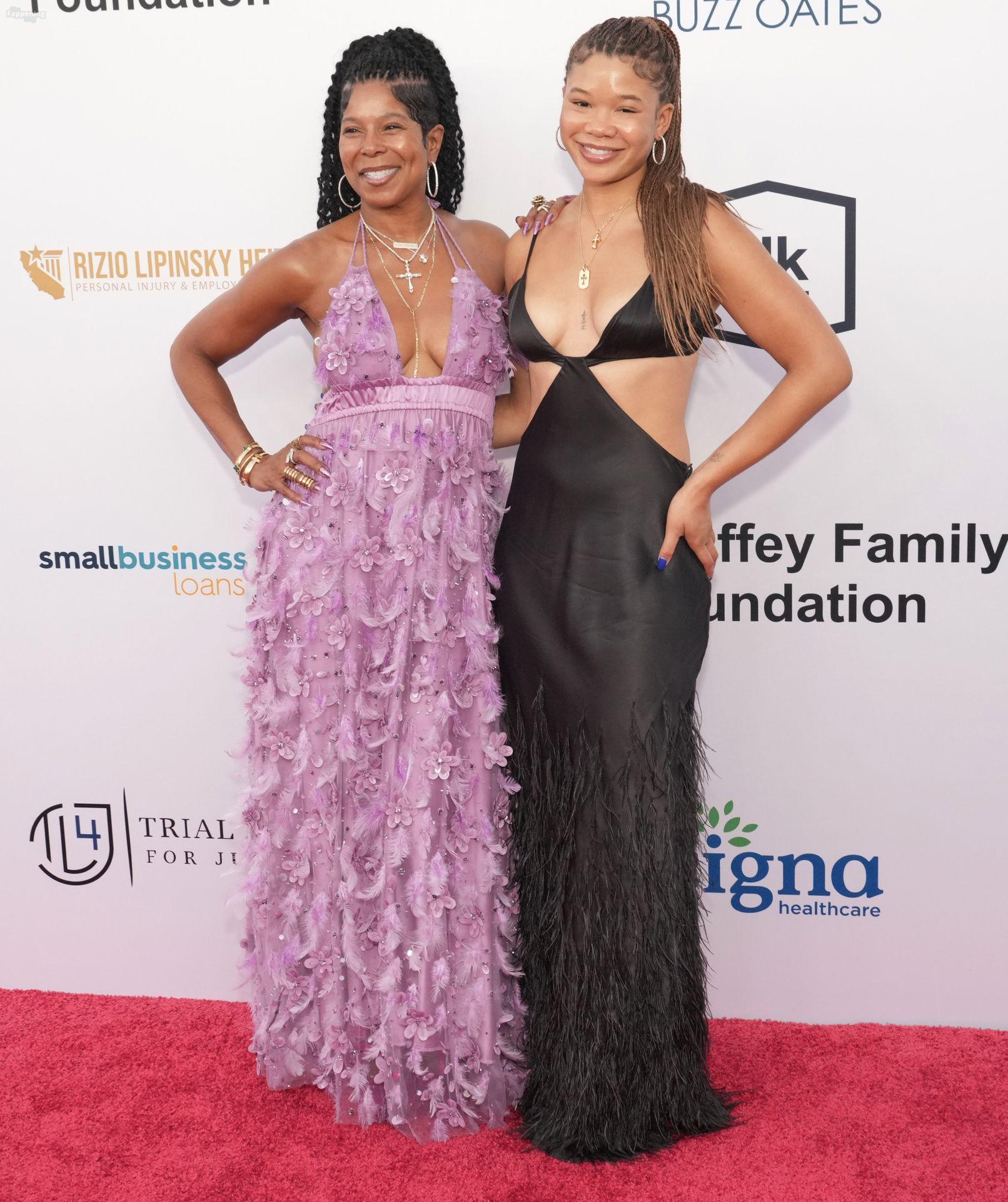 Storm Reid est vue à la Harold and Carole Pump Foundation lors de la fête au Beverly Hilton à Beverly Hills, portant une robe noire sauvage avec quelques découpes, montrant ses seins sexy.