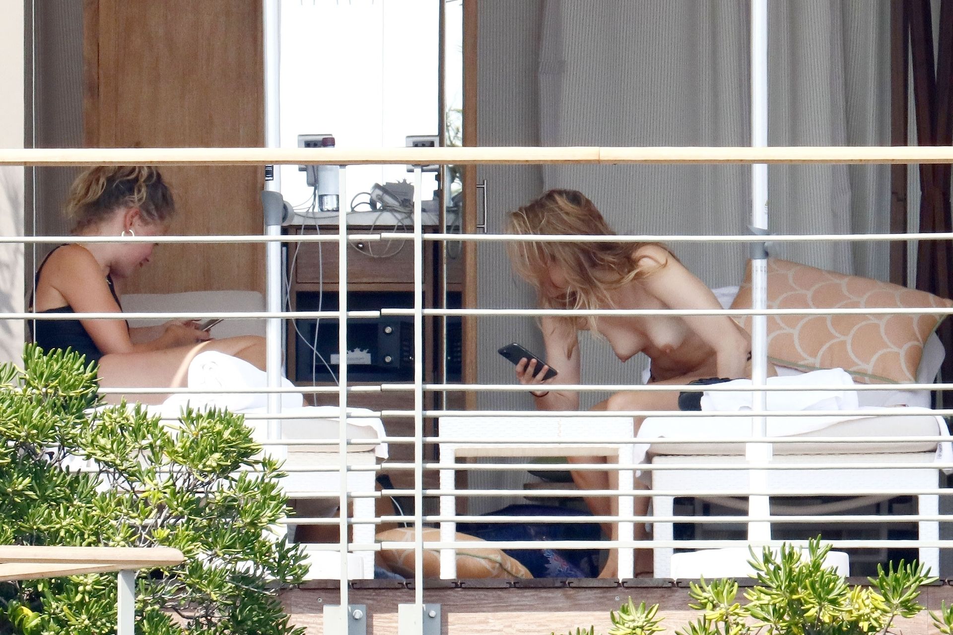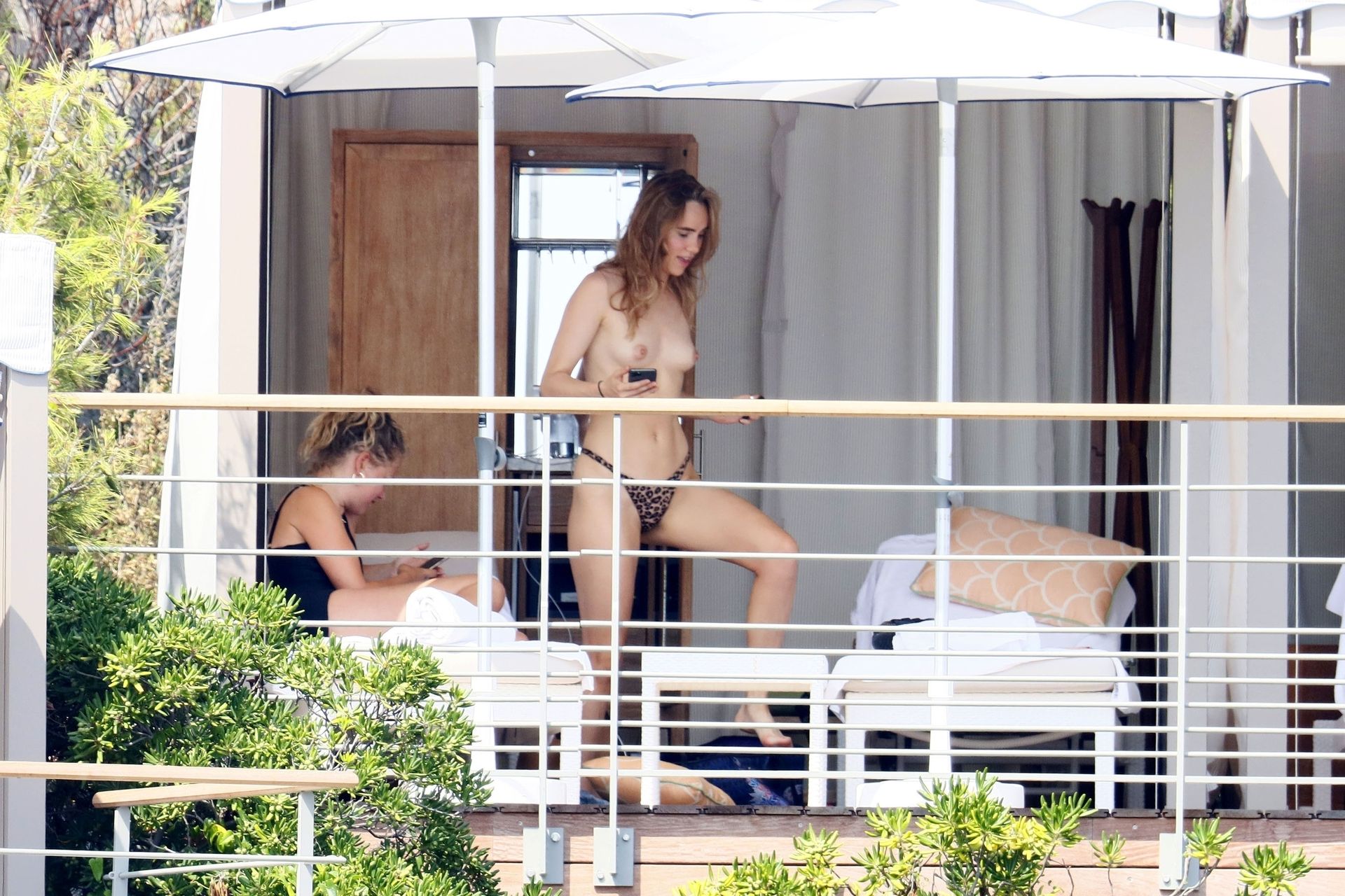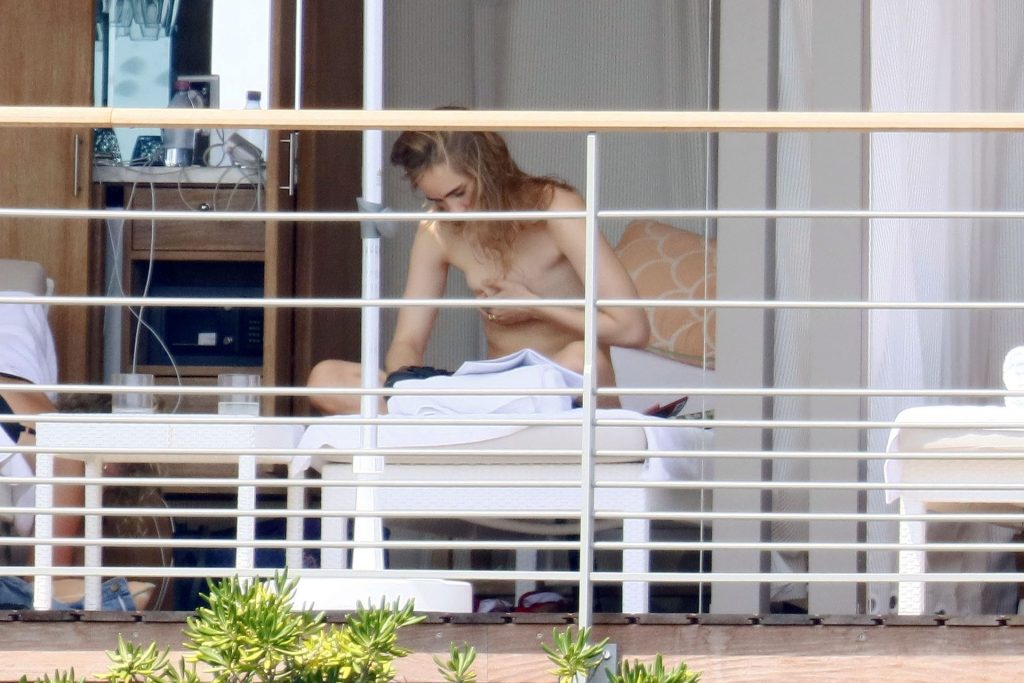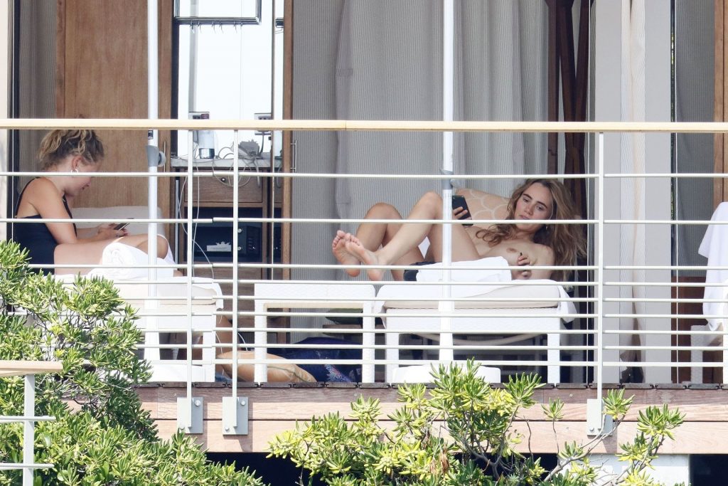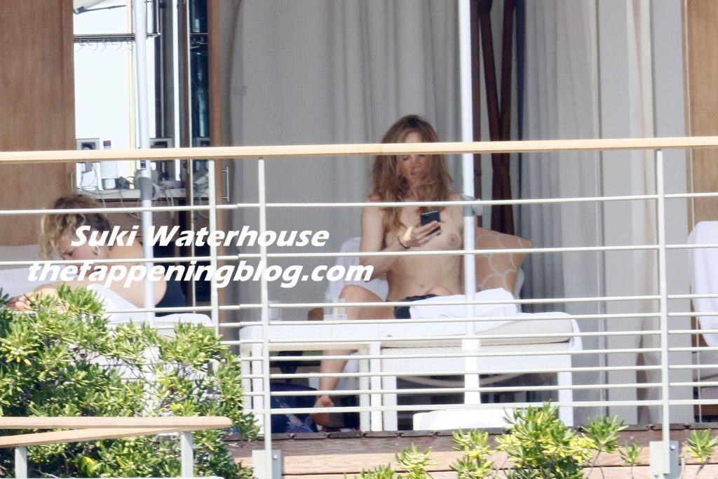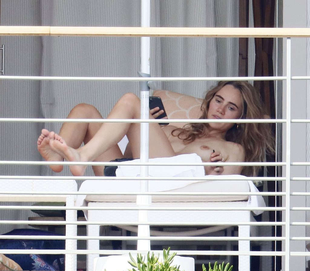 Le mannequin britannique Suki Waterhouse est photographiée en topless en train de prendre le soleil pendant ses vacances dans le Sud de la France, 31/07/2020.
