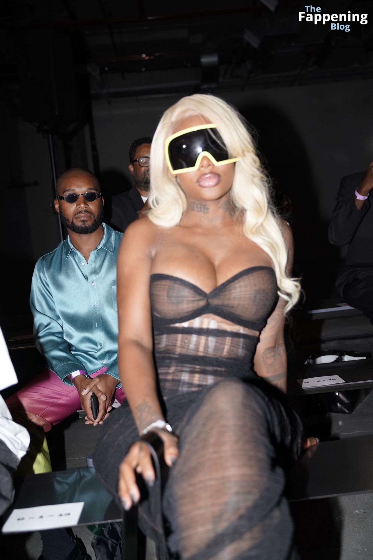 Les célébrités affluent au défilé de mode enflammé de Laquan Smith le 12/09/2023. La chanteuse américaine Summer Walker montre carrément ses seins nus en arborant une tenue transparente.
