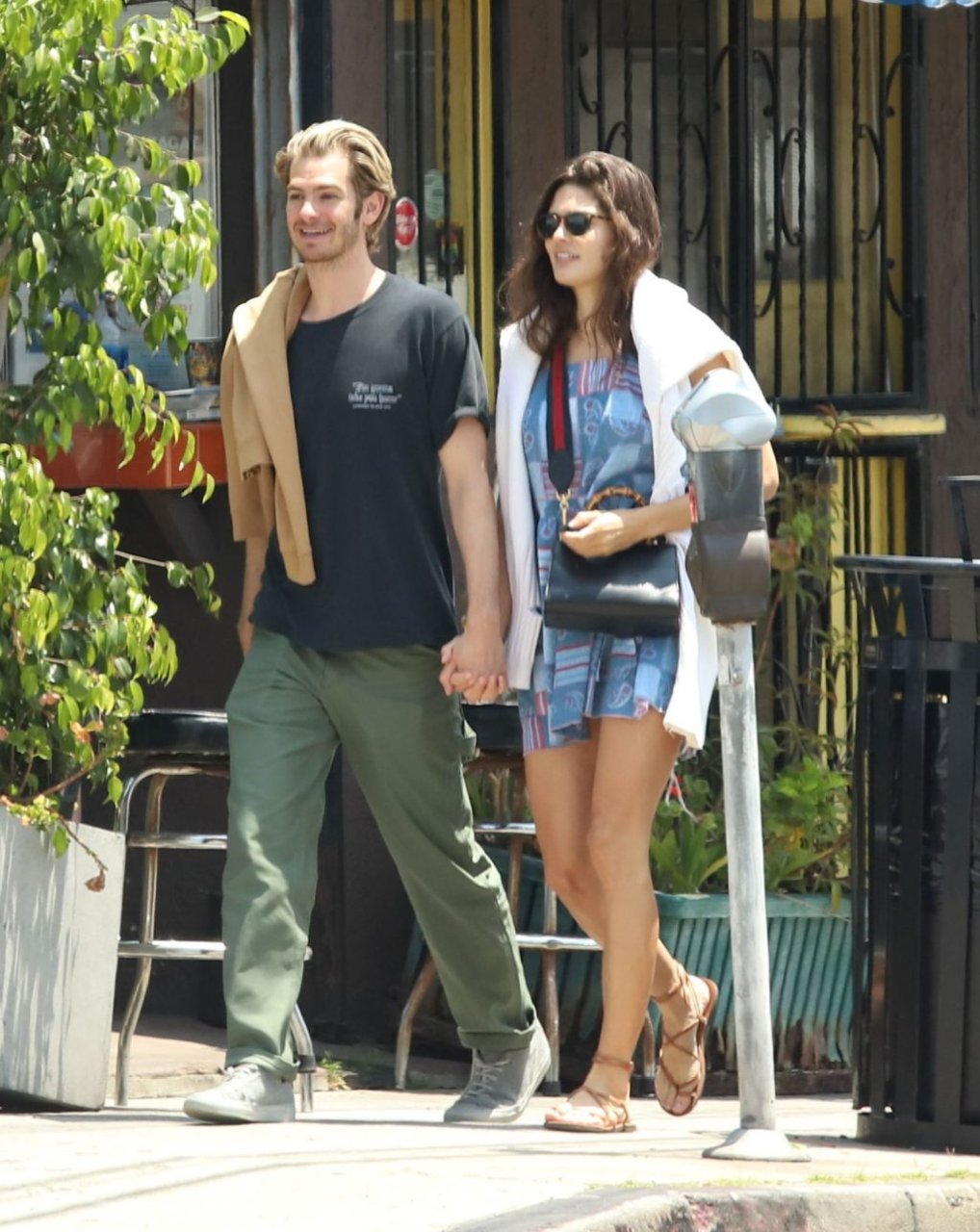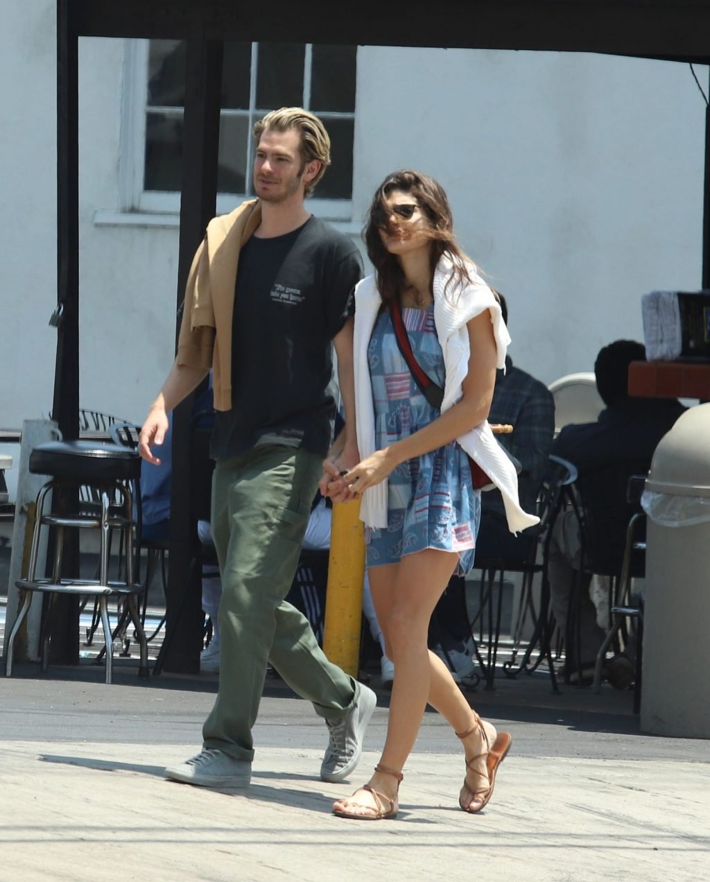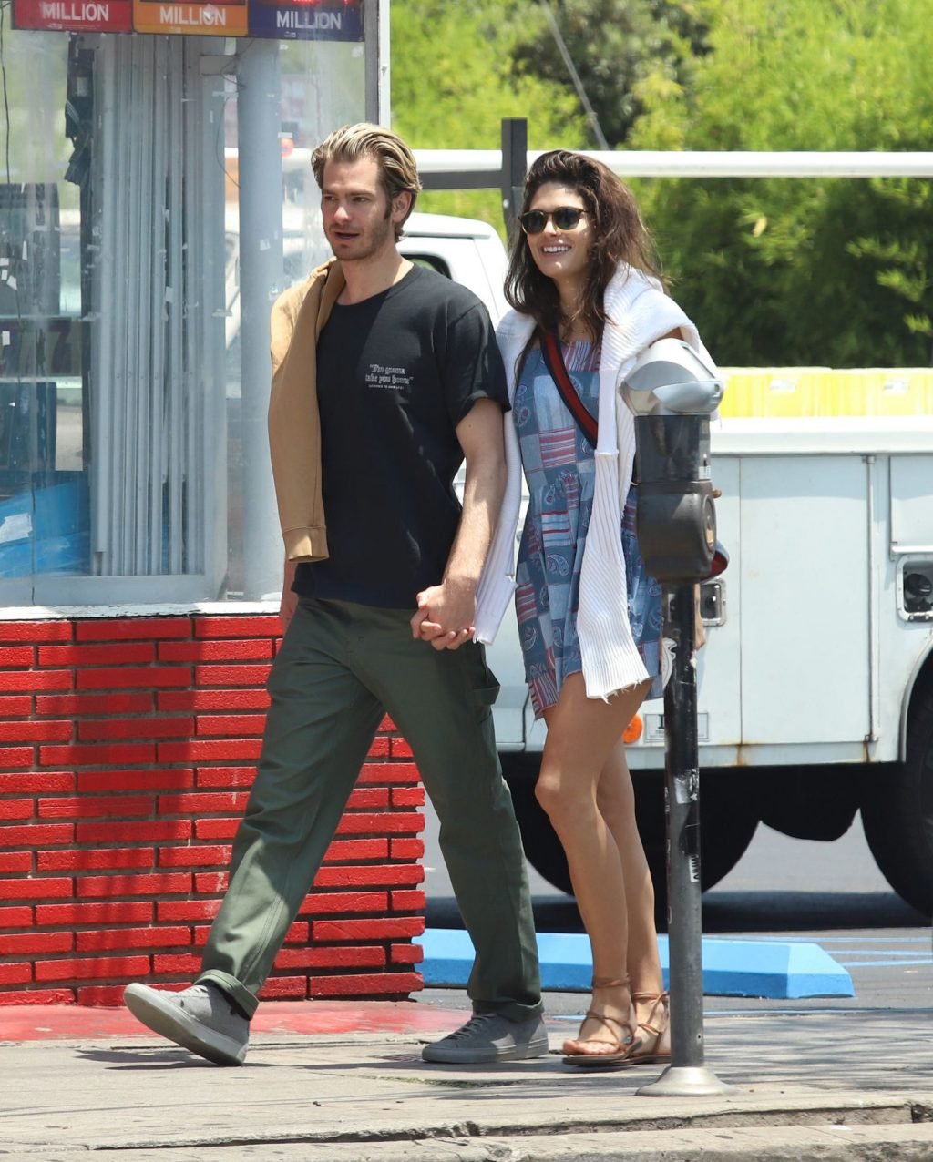 Andrew Garfield est photographié lors d’une promenade romantique avec sa petite amie, Susie Abromeit à Los Angeles, le 07/09/2019.