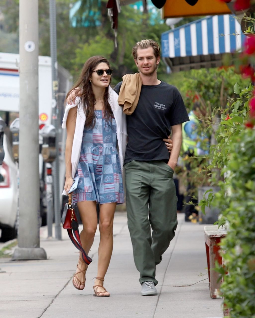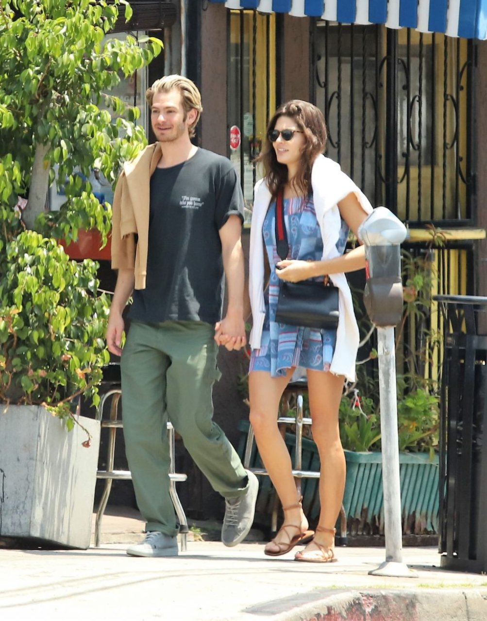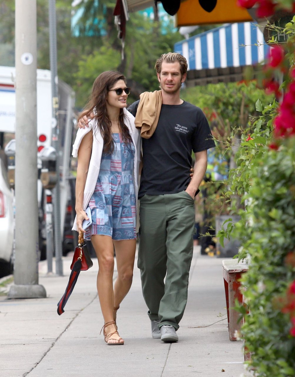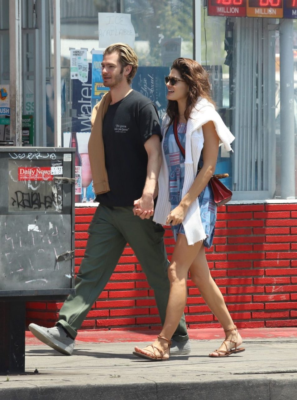 Andrew Garfield est photographié lors d’une promenade romantique avec sa petite amie, Susie Abromeit à Los Angeles, le 07/09/2019.