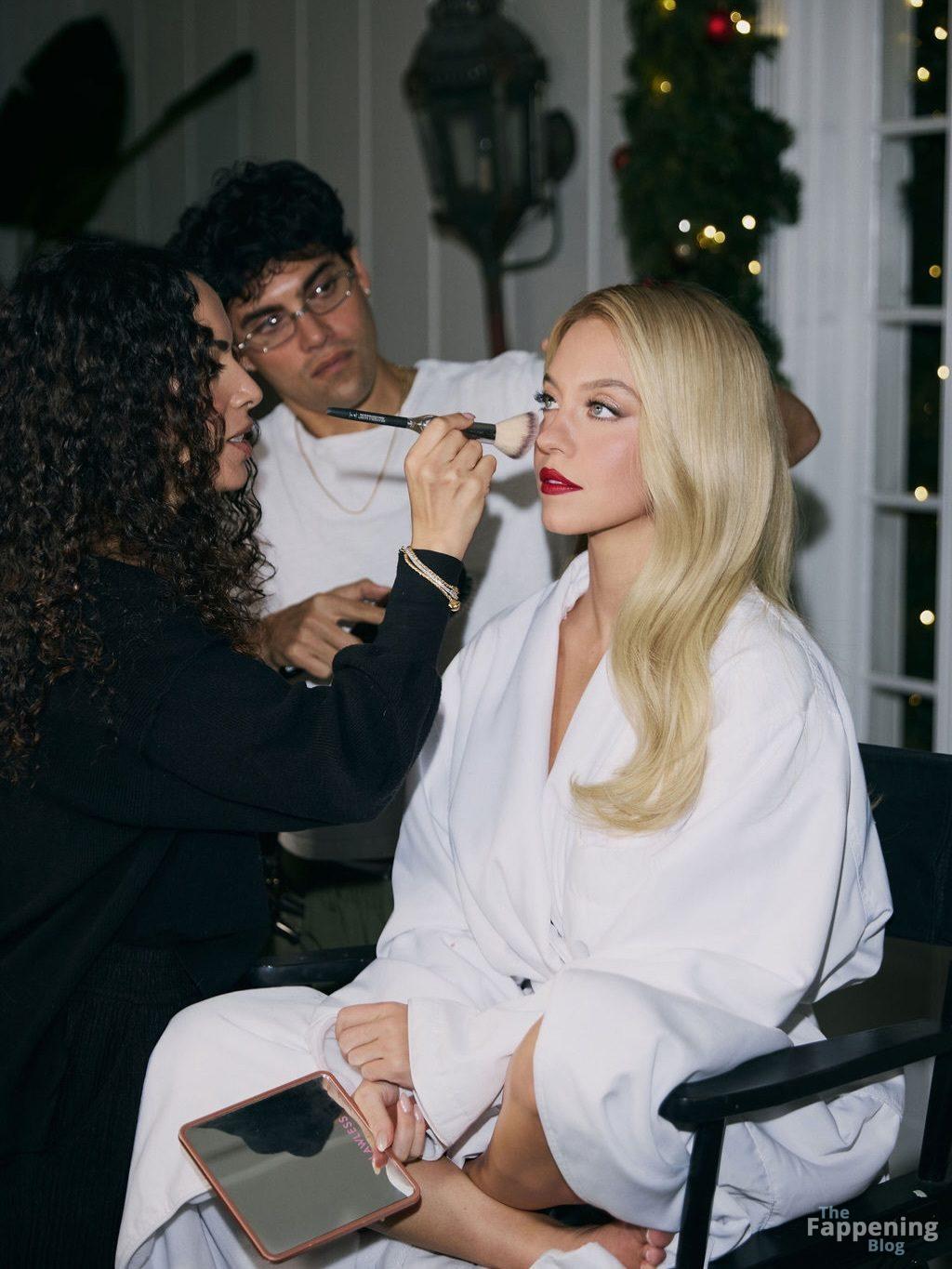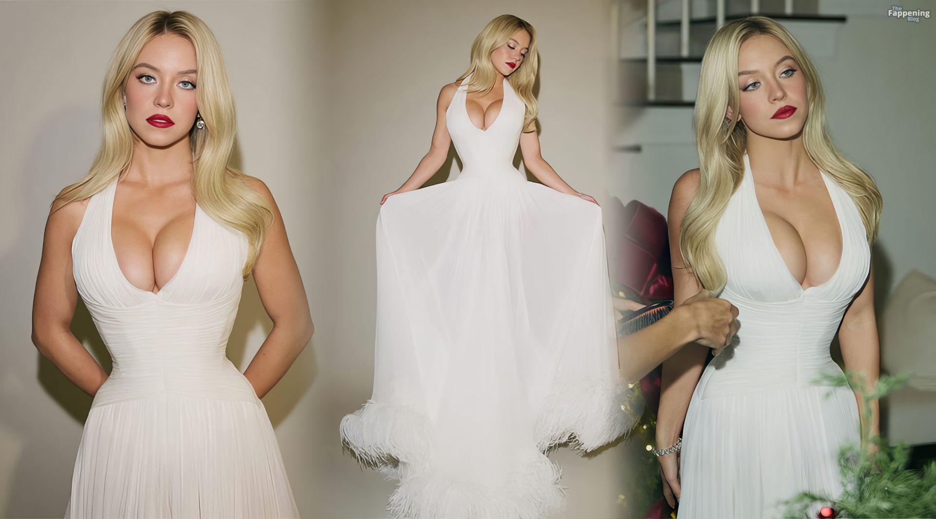 Sydney Sweeney montre ses seins, posant dans une robe blanche décolletée pour la séance de Sarah Krick avant le événement principal.