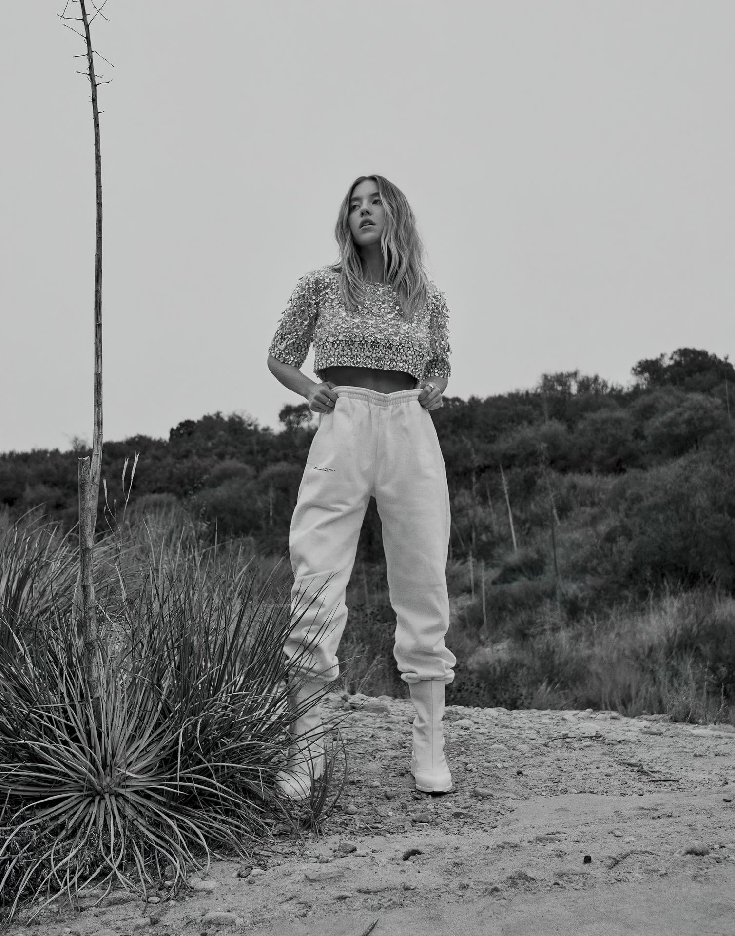 Le mannequin/actrice Sydney Sweeney exhibe ses beaux gros seins en portant un haut blanc révélateur lors d’une séance photo réalisée par Christian Högstedt pour le numéro de février 2021 du Sbjct Journal.