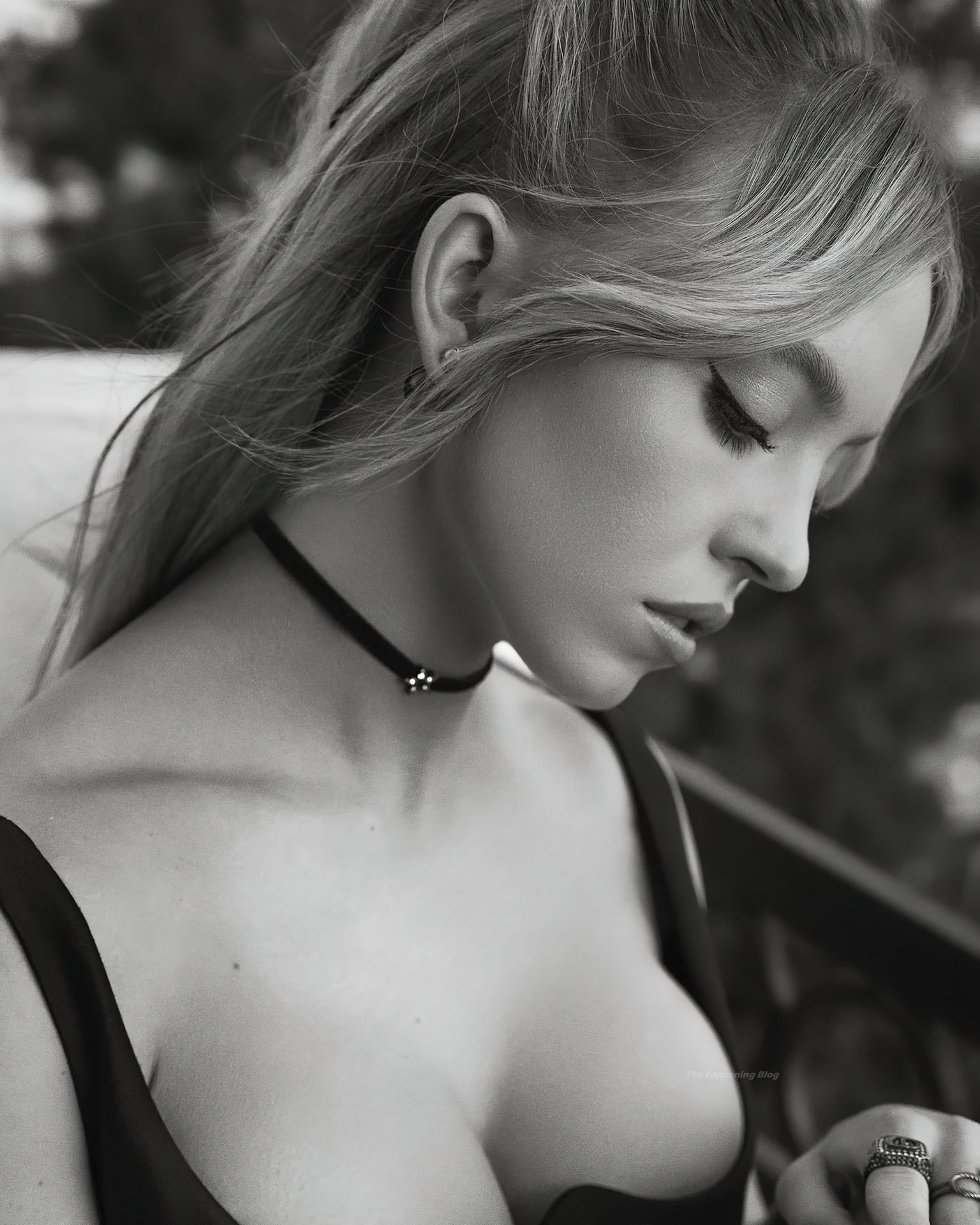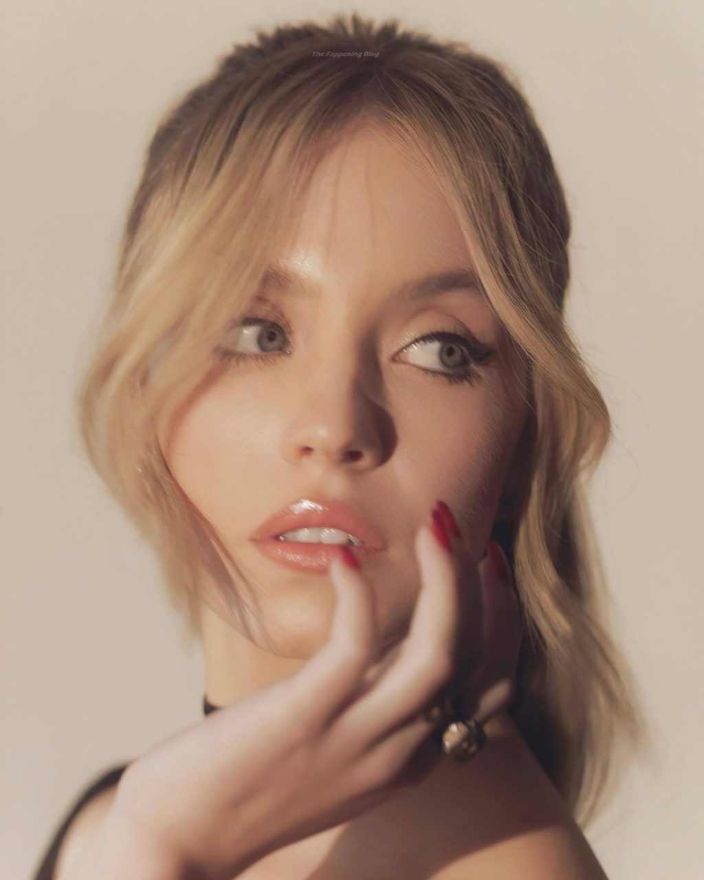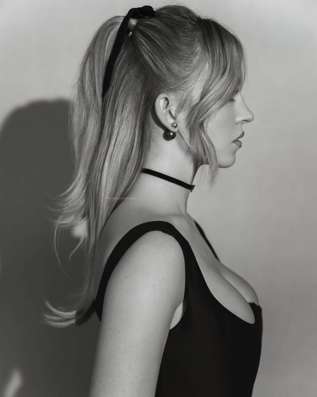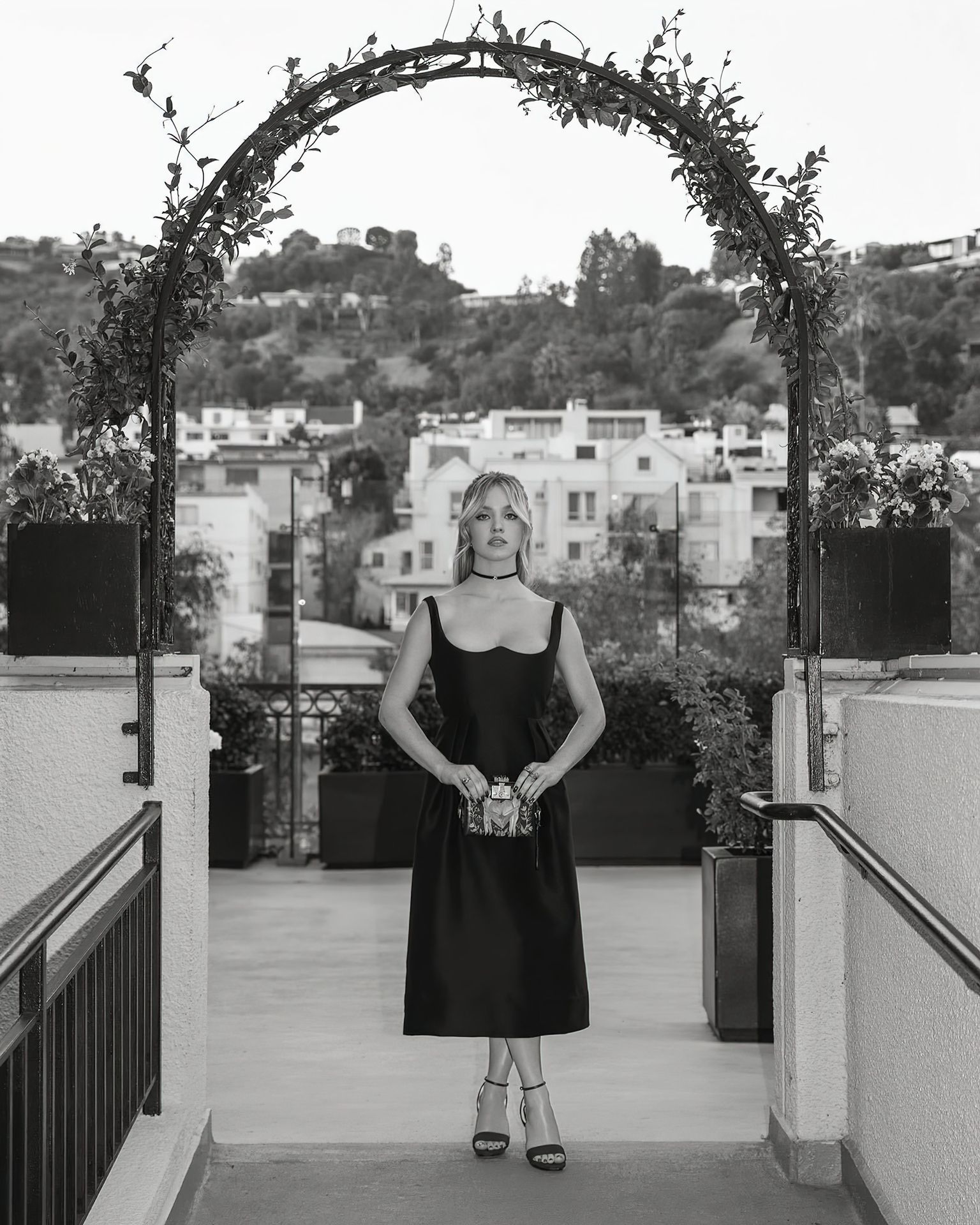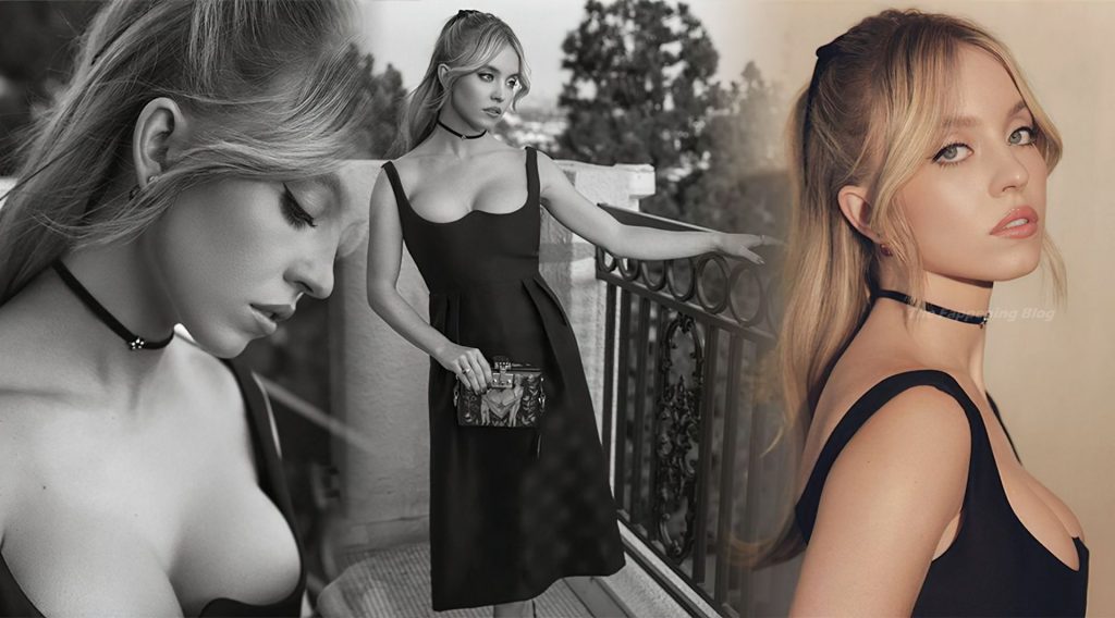L’actrice Sydney Sweeney affiche sa poitrine magnifique en posant dans une élégante robe noire lors d’une séance photo promotionnelle par Elias Tahan (août 2021).