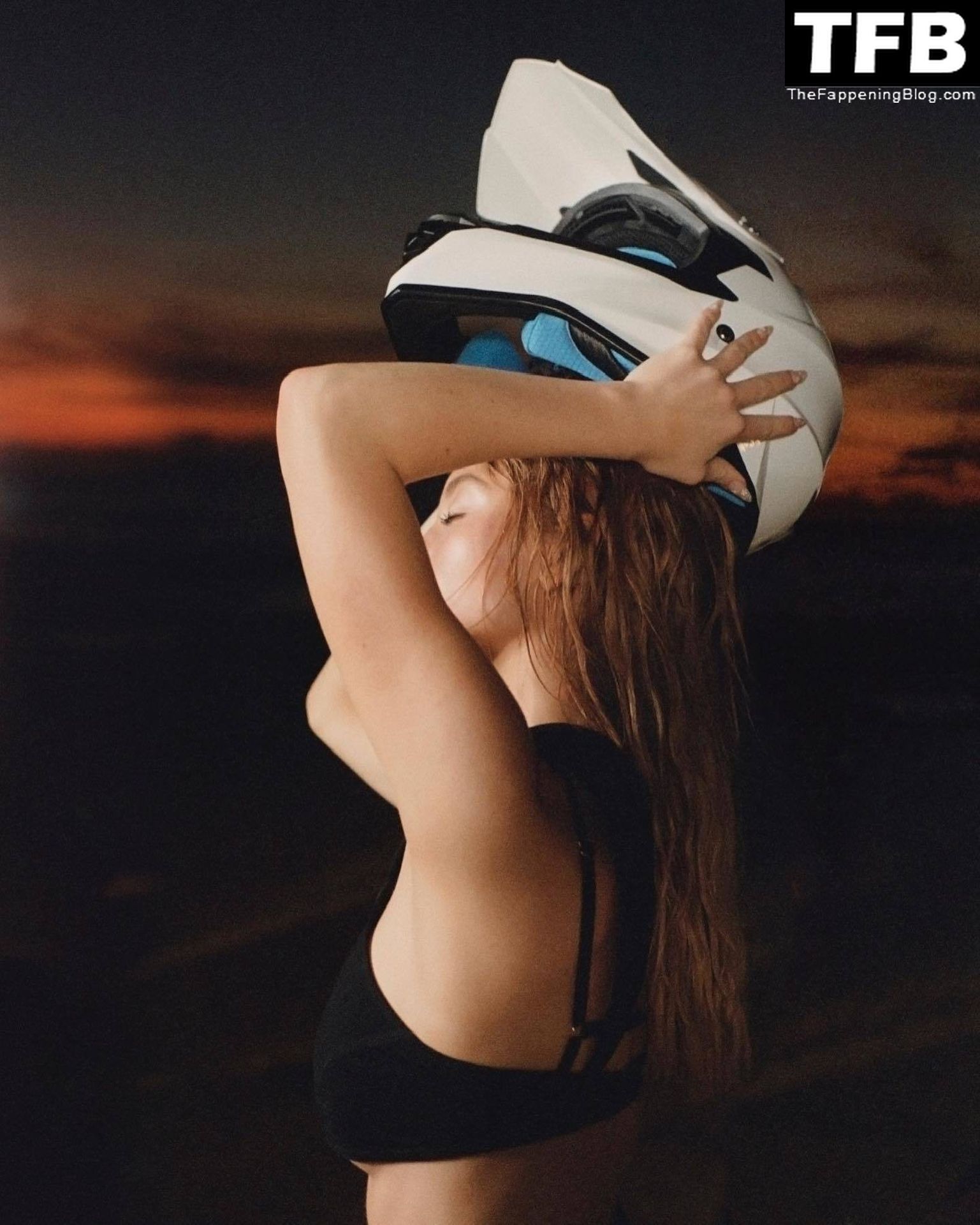La star de “Euphoria” pose pour des photos sur des plages à couper le souffle en portant une mini-jupe noire et un top bralette assorti. Sur une image, Sydney porte une paire de Nike.