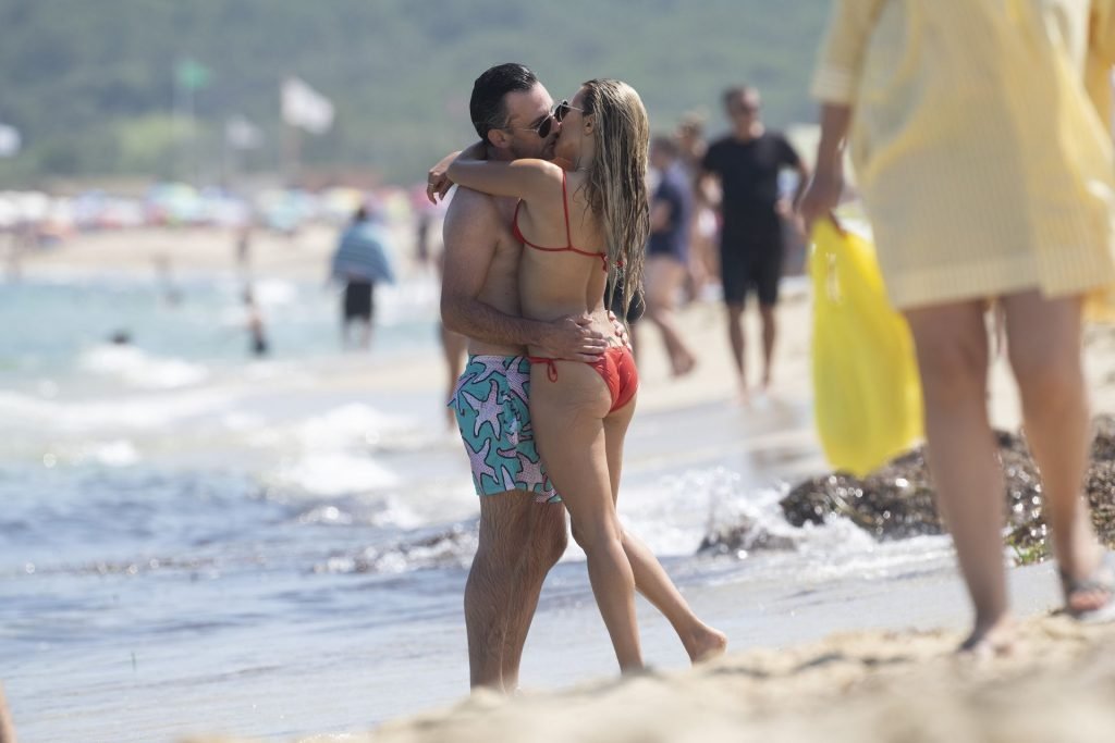 Sylvie Meis et son nouveau petit ami (nom sur demande) ont été vus lors de vacances à St Tropez, le 19/07/2019. L’actrice/modèle et star de la télévision néerlandaise de 41 ans a exhibé son corps sexy dans un bikini rouge.
