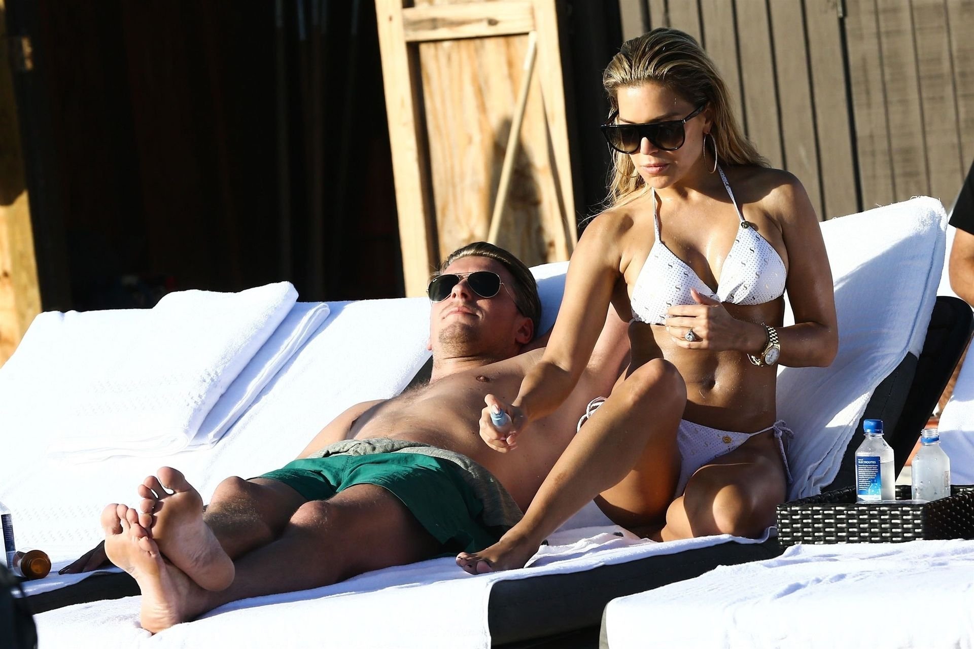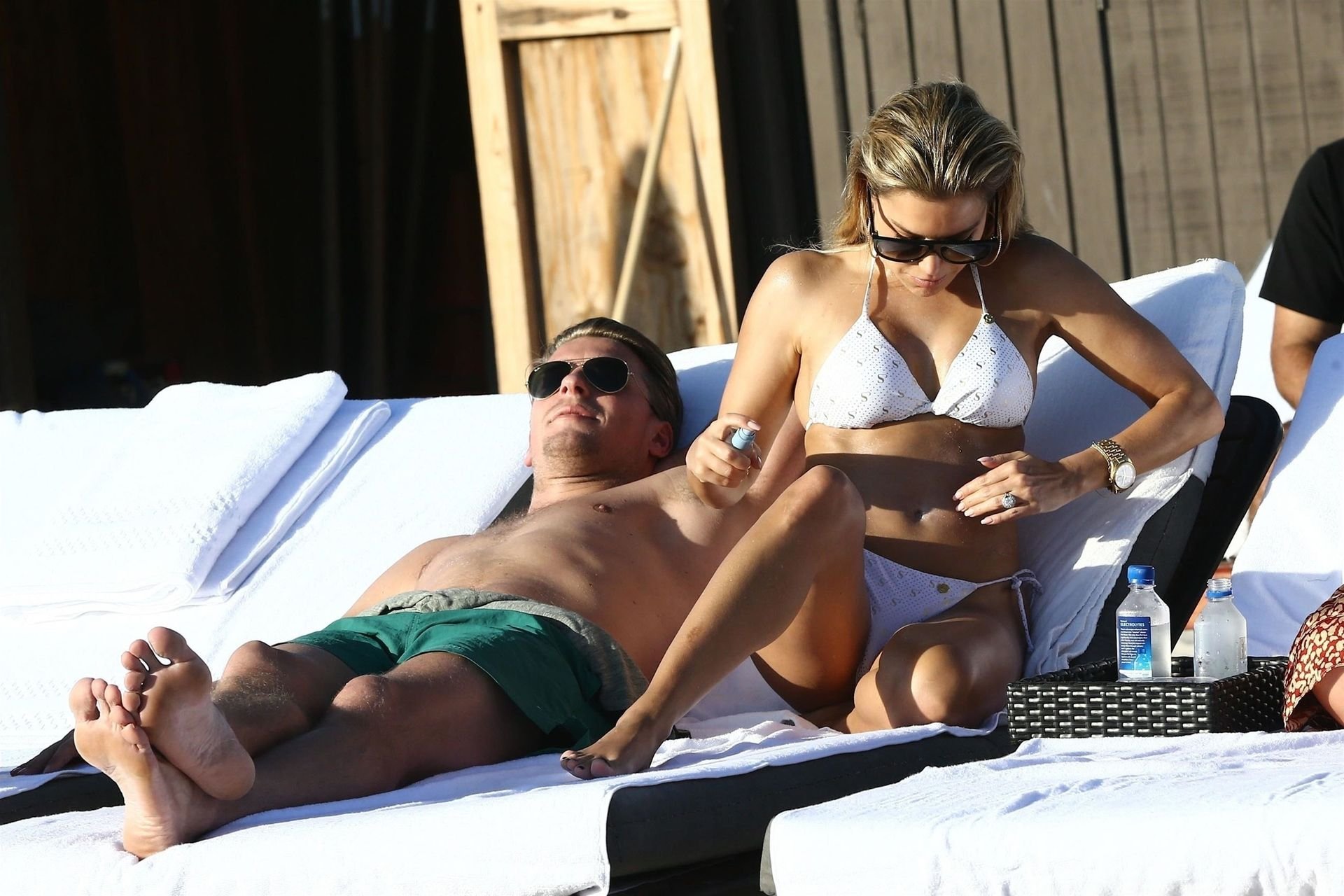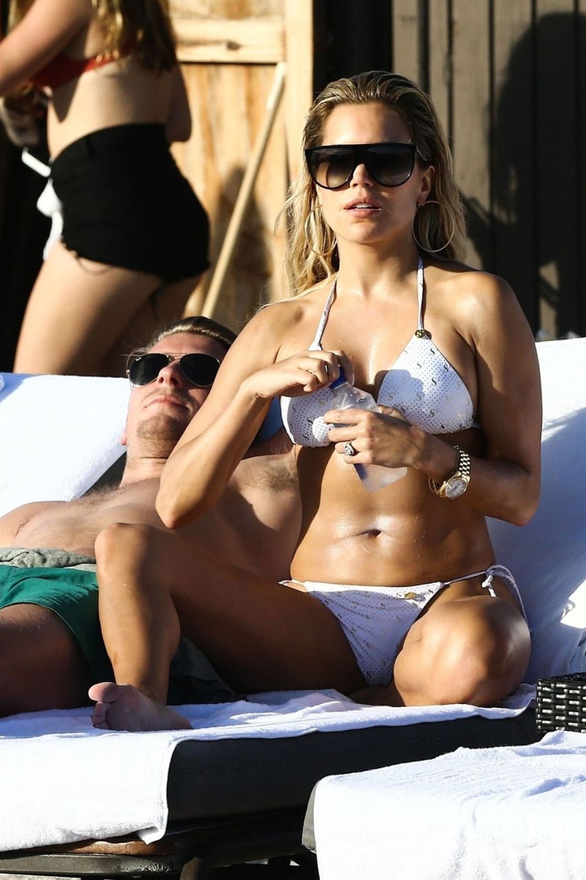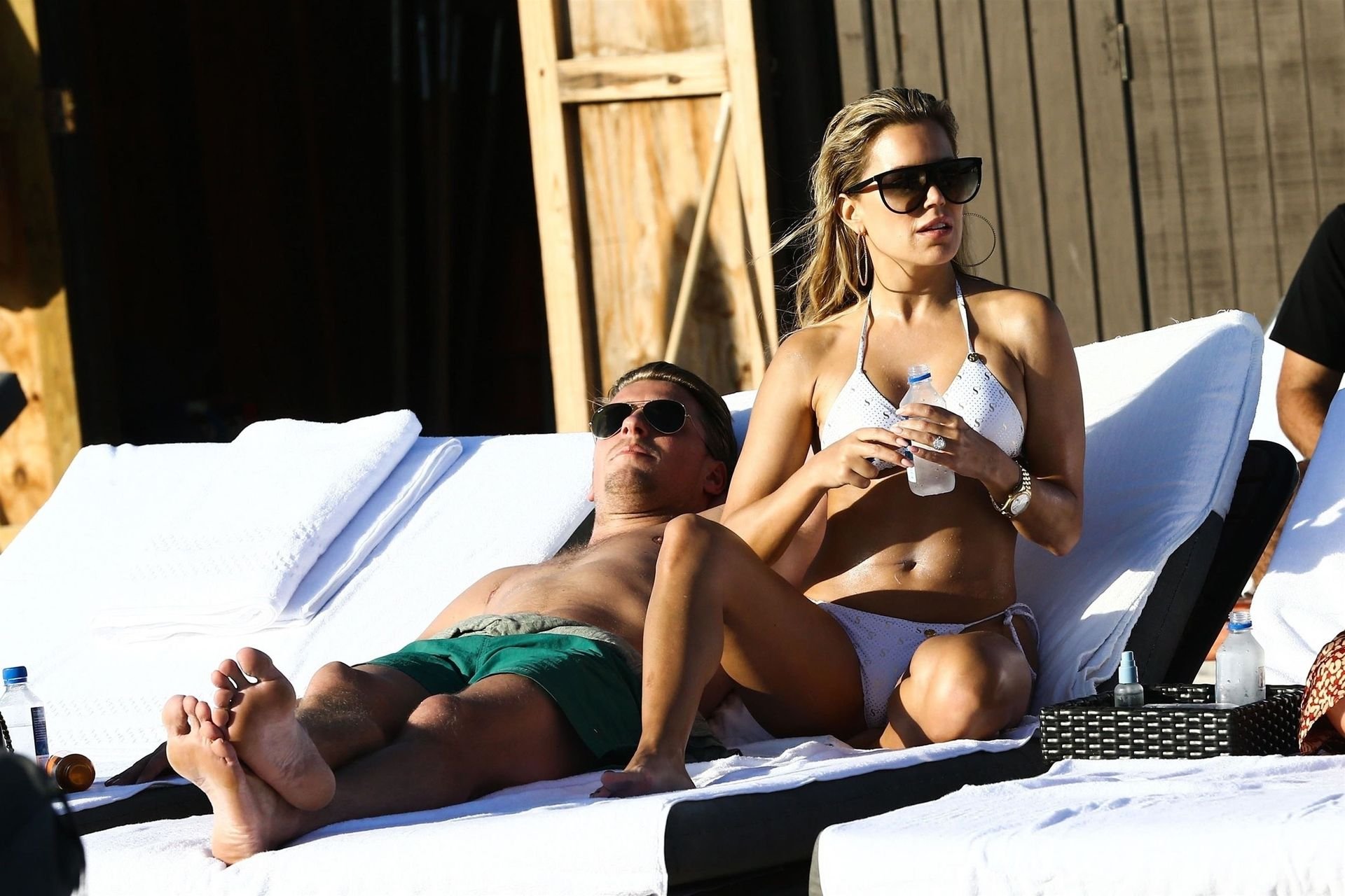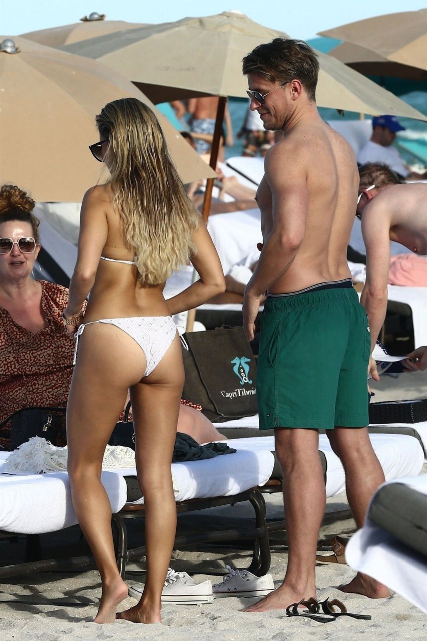 Sylvie Meis porte un bikini blanc révélateur alors qu’elle enlace ses jambes autour de son petit ami Bart Willemsen lors d’une séance de maquillage torride sur la plage de Miami le jour de l’An, 01/01/2019.